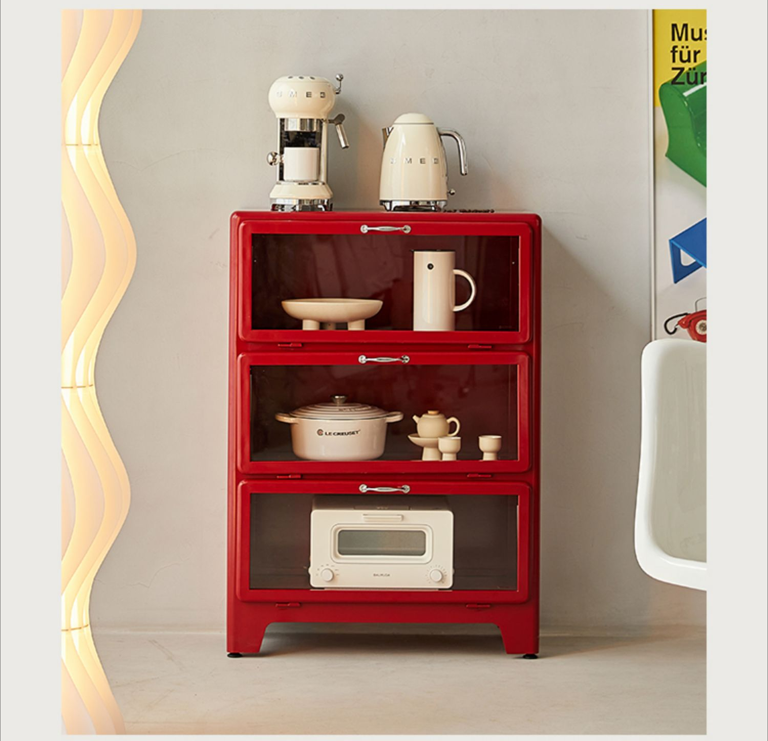 Eco-friendly Glass Japanese Iron Cabinet Retro Ins Popular Nordic Home Wrought Iron Metal Dining Side Cabinet Figure Locker