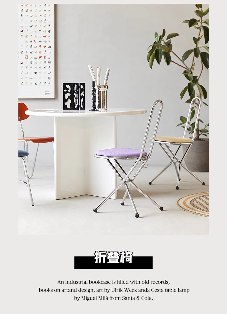 Folding Chair Minimalist Artistic Dining Chair Small Apartment Wrought Iron Portable Backrest Stool Ins Popular