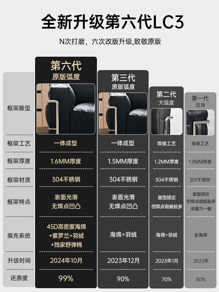 Italian Minimalist LC3 Sofa Corbusier Medieval Bauhaus Stainless Steel Down Single Sofa