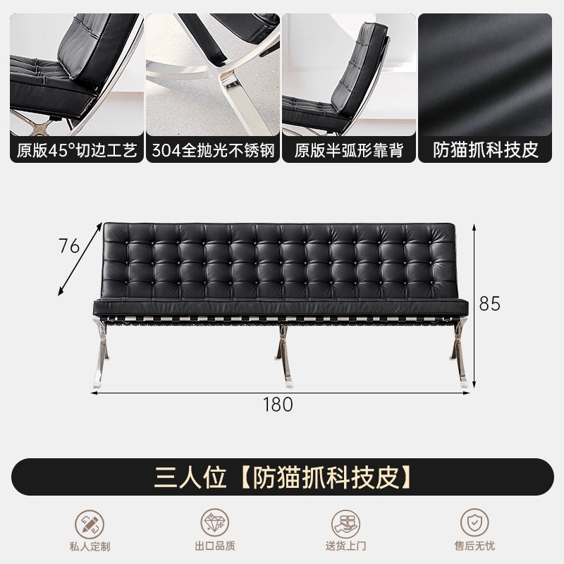 Home Furnishing Barcelona Chair Italian Minimalist Leather Single Designer Sofa Chair Living Room Leisure Lounge Chair