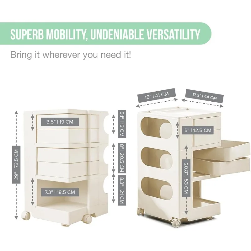 Mehrzweck-Aufbewahrungswagen – MCM-Aufbewahrung mit Rädern und ausziehbaren Schubladen – Professioneller Trolley-Wagen – Tragbarer Caddy für Salonbedarf, Schiebe-Organizer für Küche und Bad – Cremeweiß