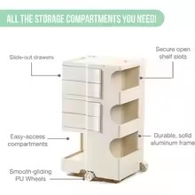 Moderner und farbenfroher Aufbewahrungswagen für Zuhause und Büro – Mit unserem Allzweckwagen sind Ihre Werkzeuge, Vorräte und Zubehörteile ordentlich verstaut und Sie arbeiten effizienter und produktiver. Nehmen Sie diesen mobilen Wagen einfach mit, wohin Sie auch gehen, und Sie haben alles, was Sie brauchen, immer griffbereit.
