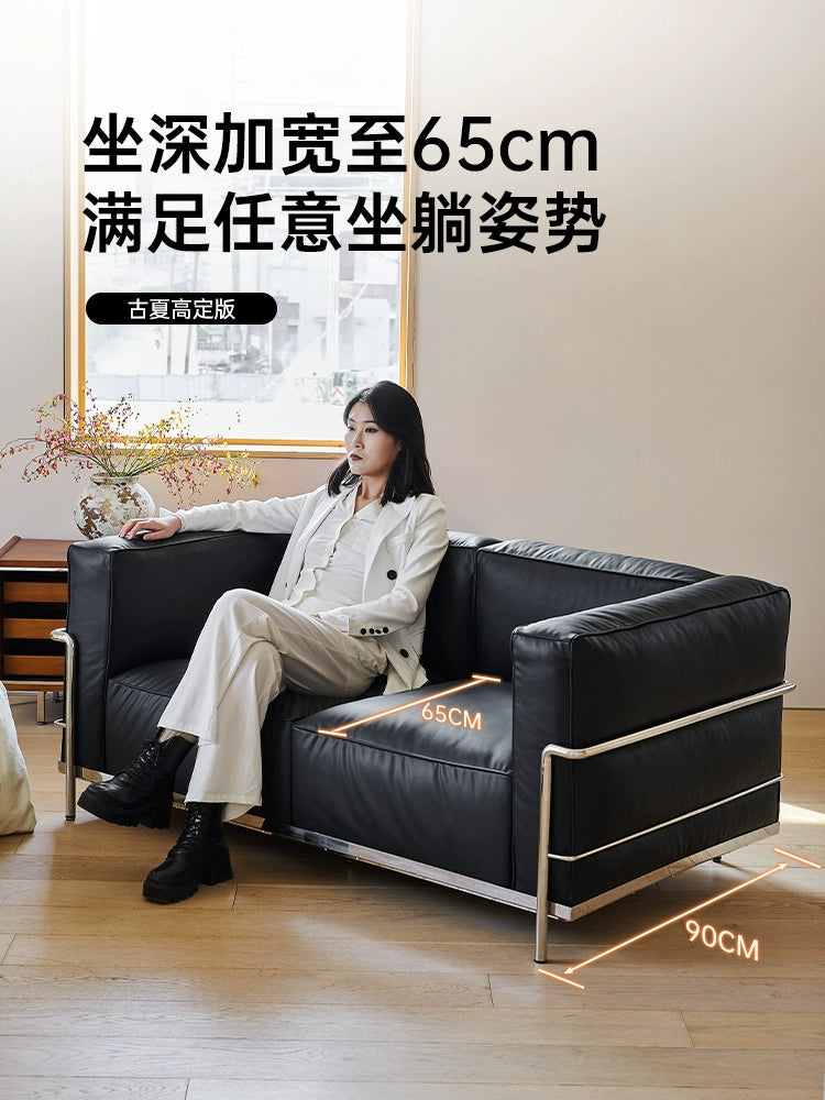 Corbusier LC3 Sofa Medieval Bauhaus Living Room Balcony High Backrest Sofa Minimalist Leather Single Sofa