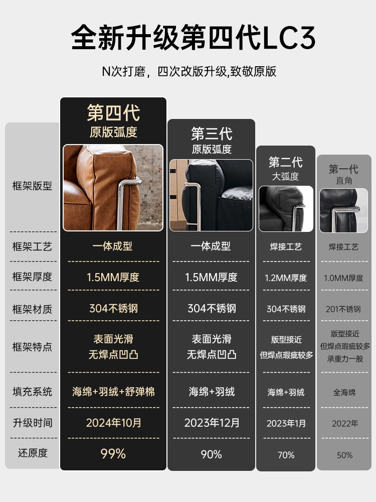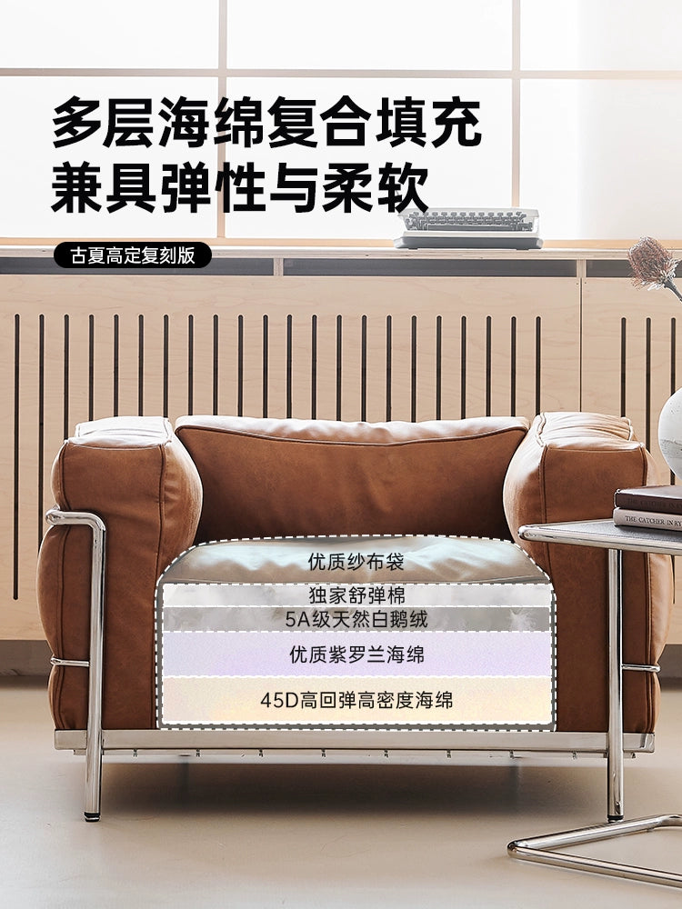 Corbusier LC3 Stainless Steel Leather Single Sofa Living Room Balcony Medieval Oil Wax Leather Single Chair