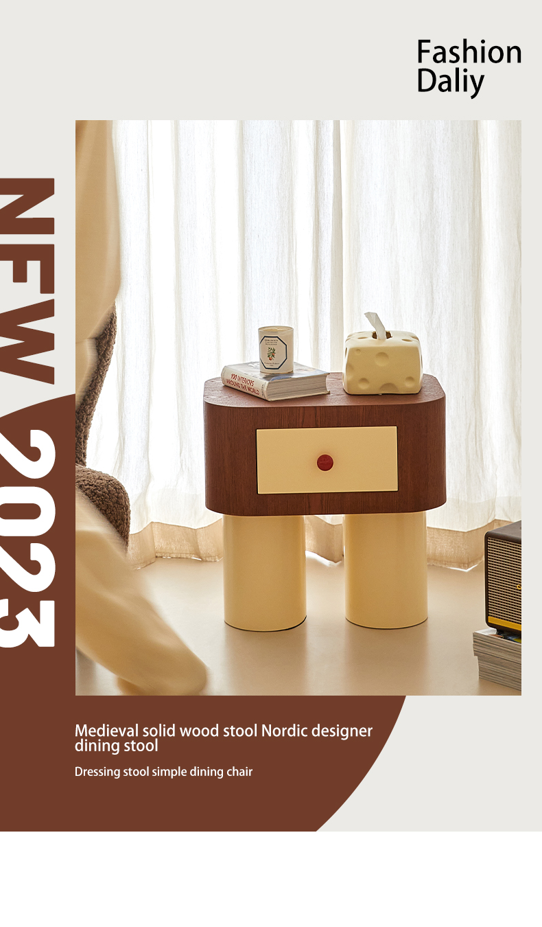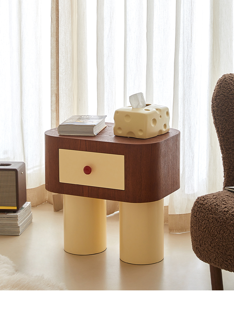 Cremefarbener Wind-Nachttisch, kreativer Nachttisch für Kinderzimmer, mittelalterlicher kleiner schmaler Schrank, niedlicher Lagerschrank