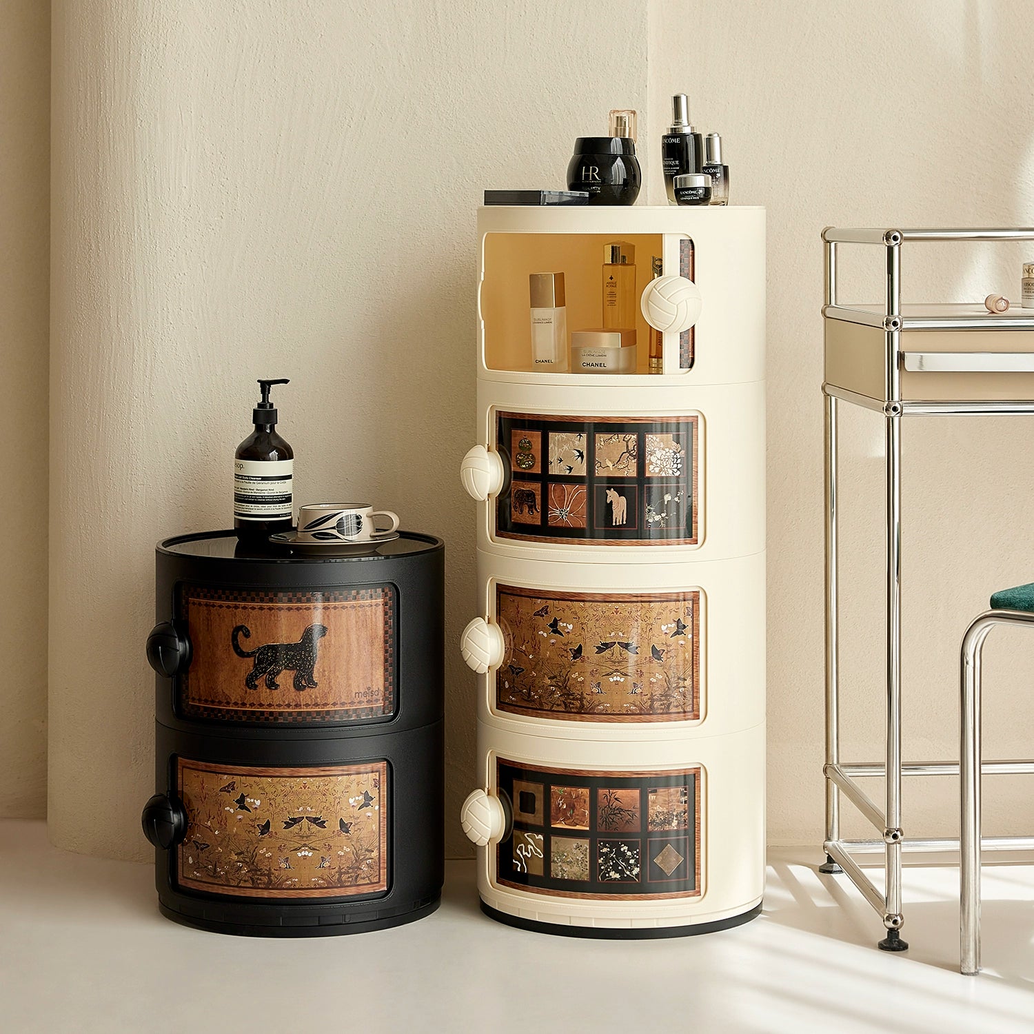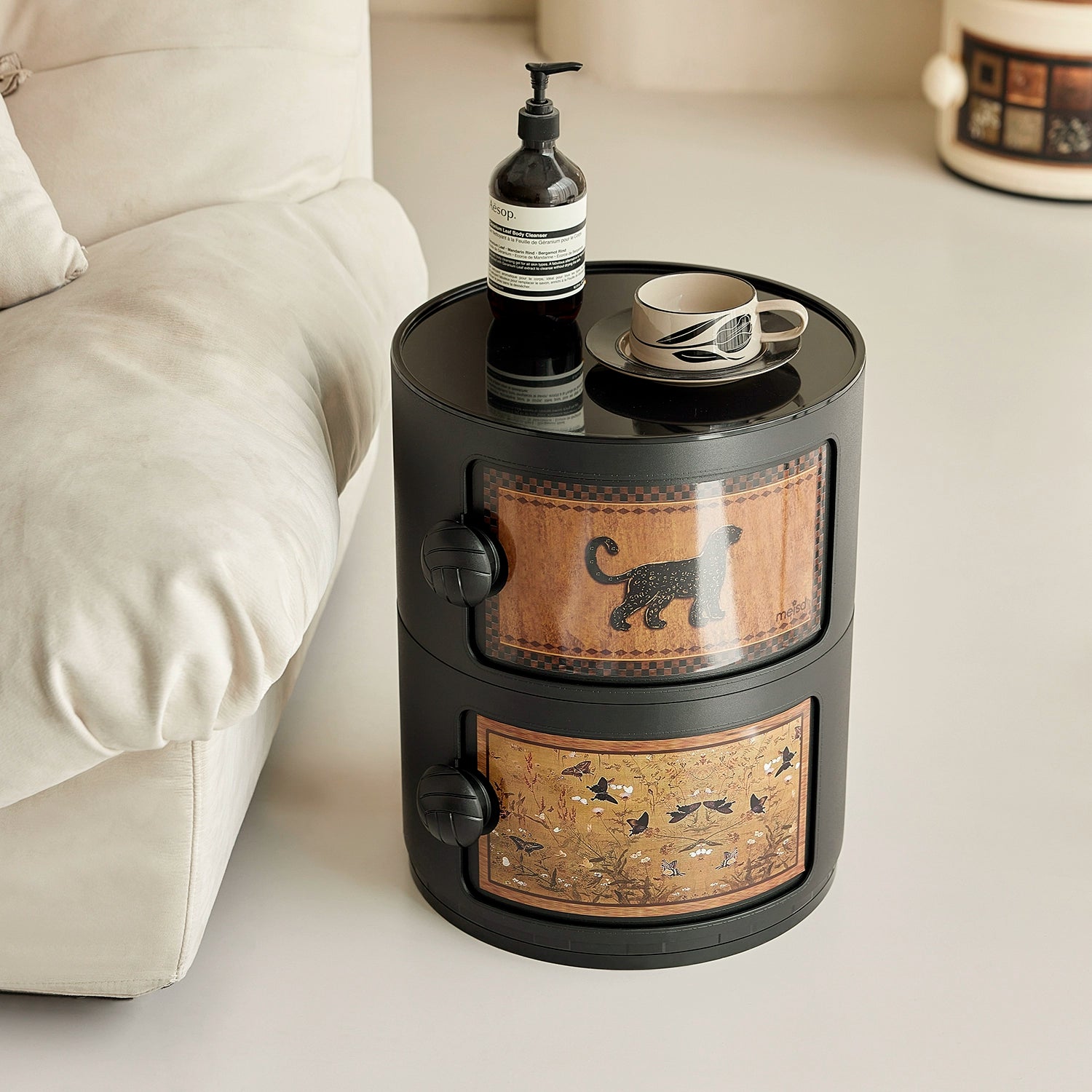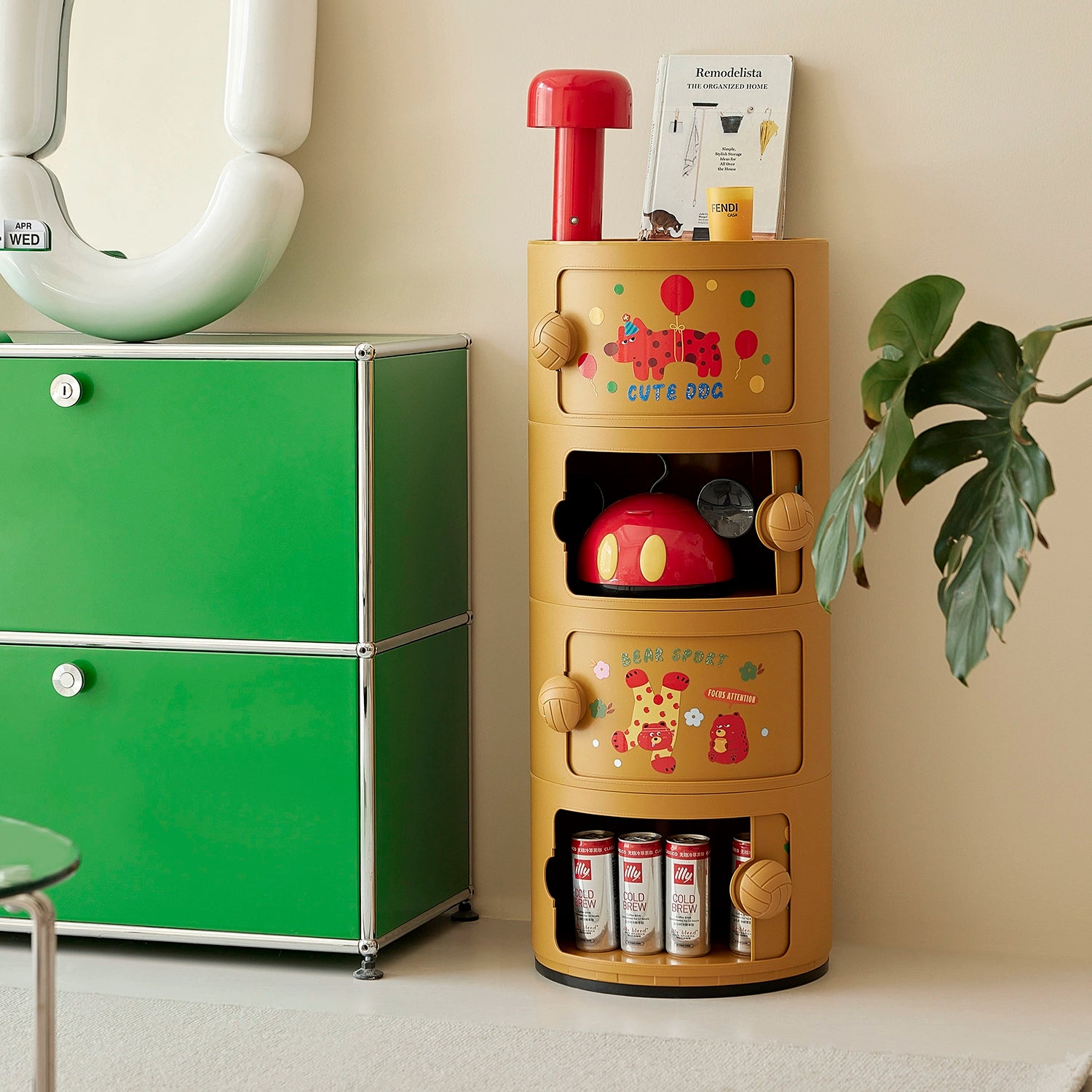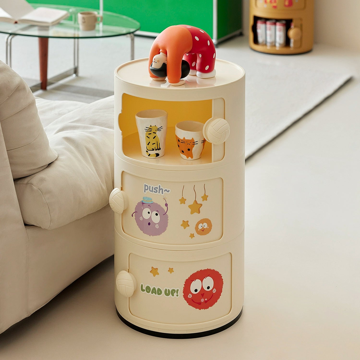 Cremefarbener Wind-Nachttisch, mittelalterlicher nordischer kleiner Wohnungsschrank, Ins-Wind-Schlafzimmer, Kinderschließfach