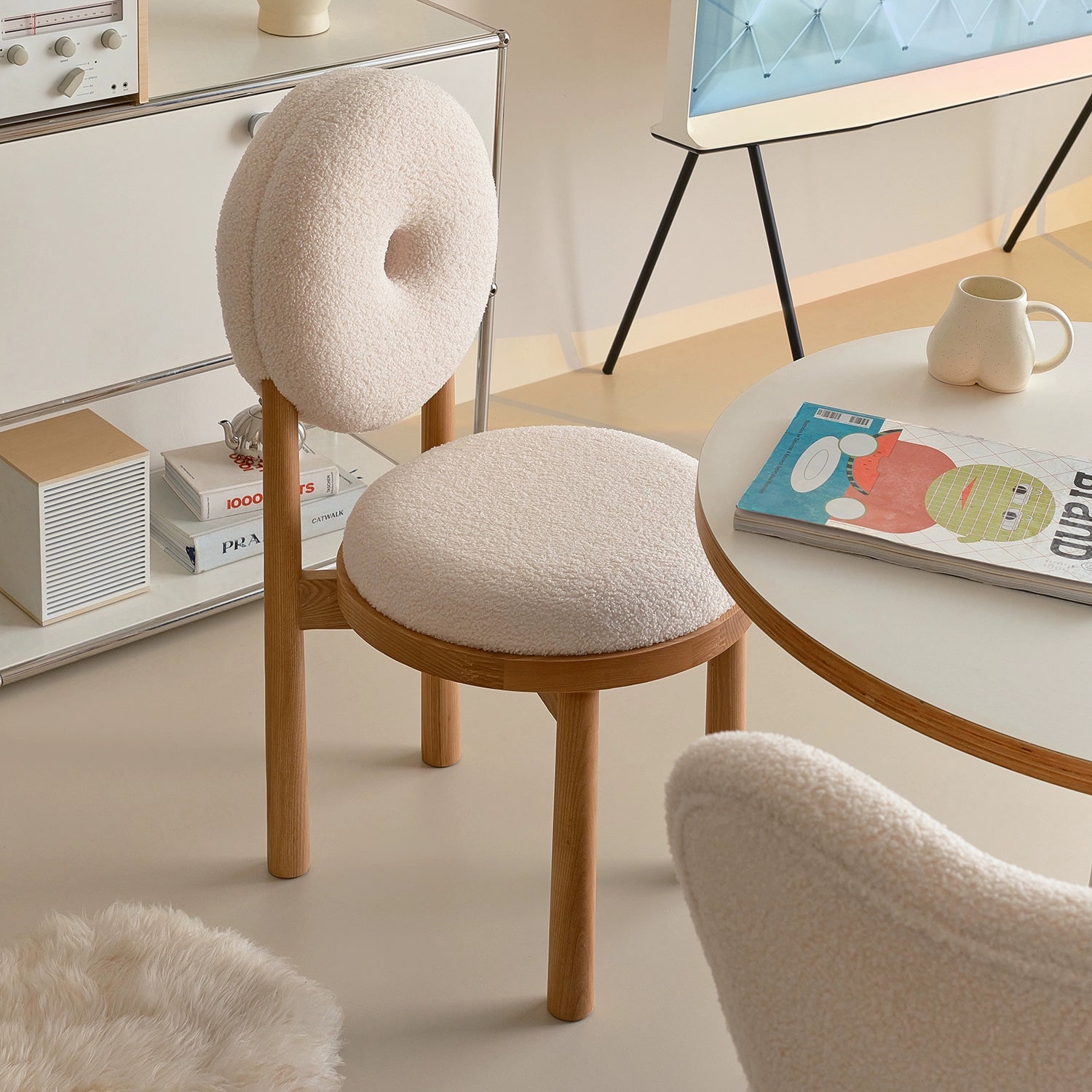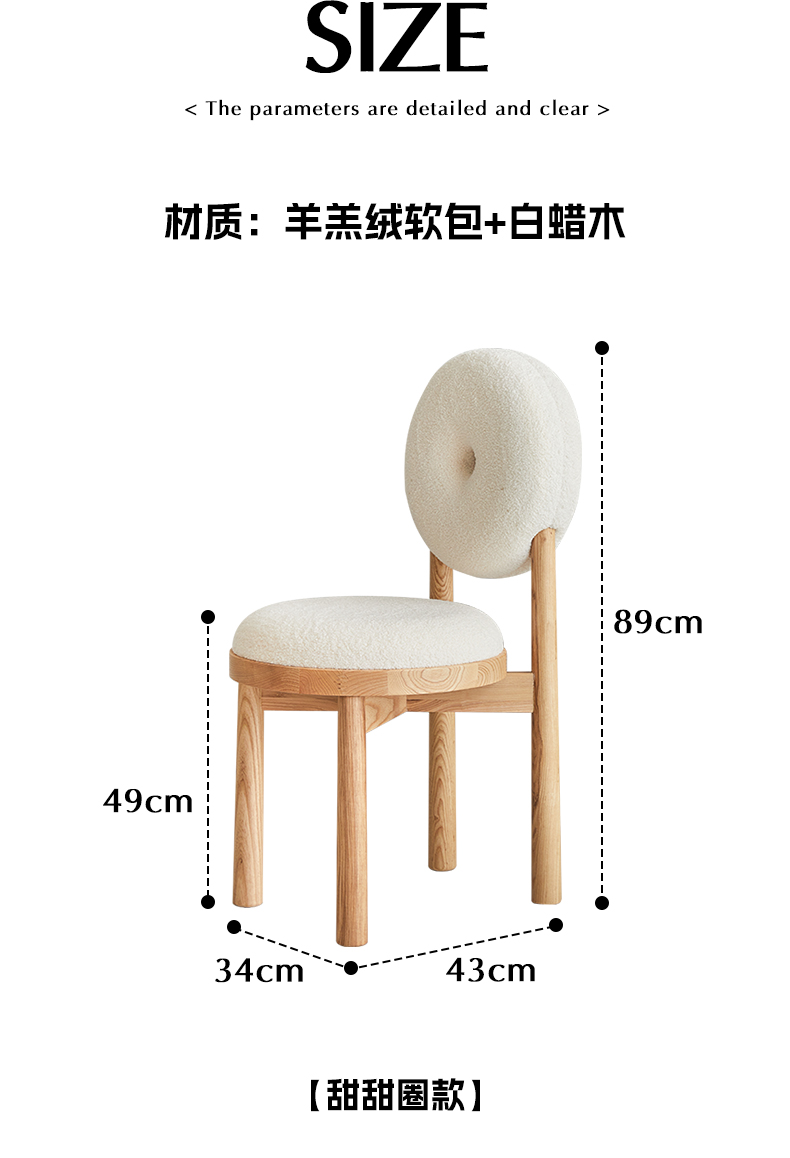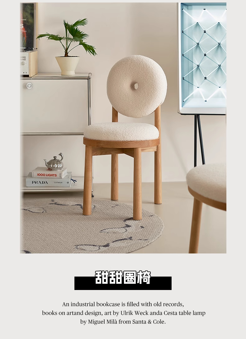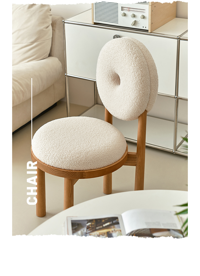 Kreative lamm wolle esszimmer stuhl haushalt massivholz dressing stuhl creme stil Ins Popularchair zurück freizeit stuhl