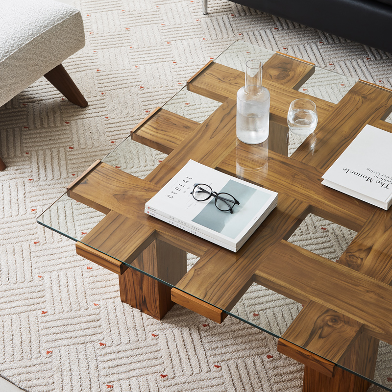 Dänischer mittelalterlicher südamerikanischer Teakholz-ultraweißer Glas-Massivholz-quadratischer Couchtisch Retro-Heim-Großwohnungs-Designer