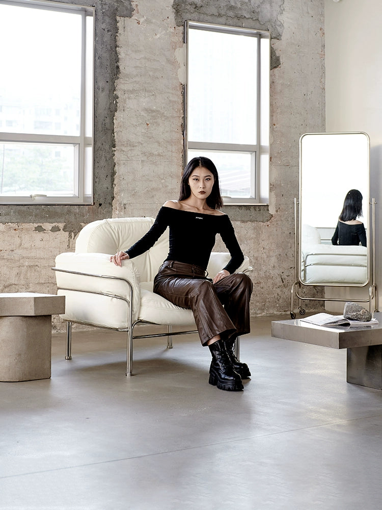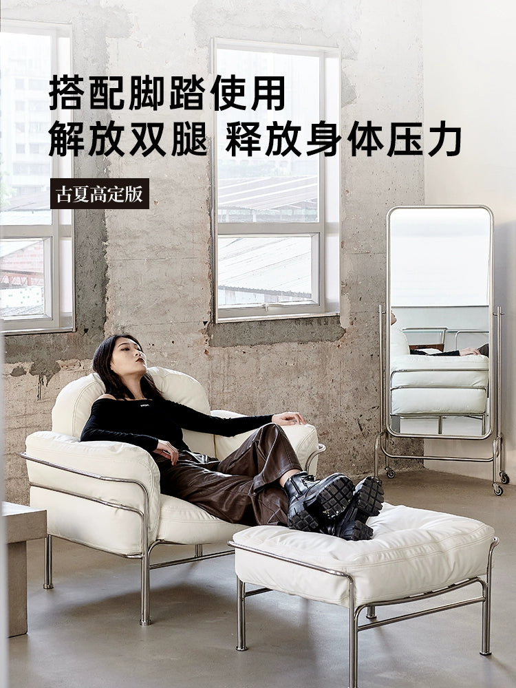 Designer Sofa Steel Armchair Medieval Single Sofa Living Room Balcony Light Luxury Leather Leisure Chair