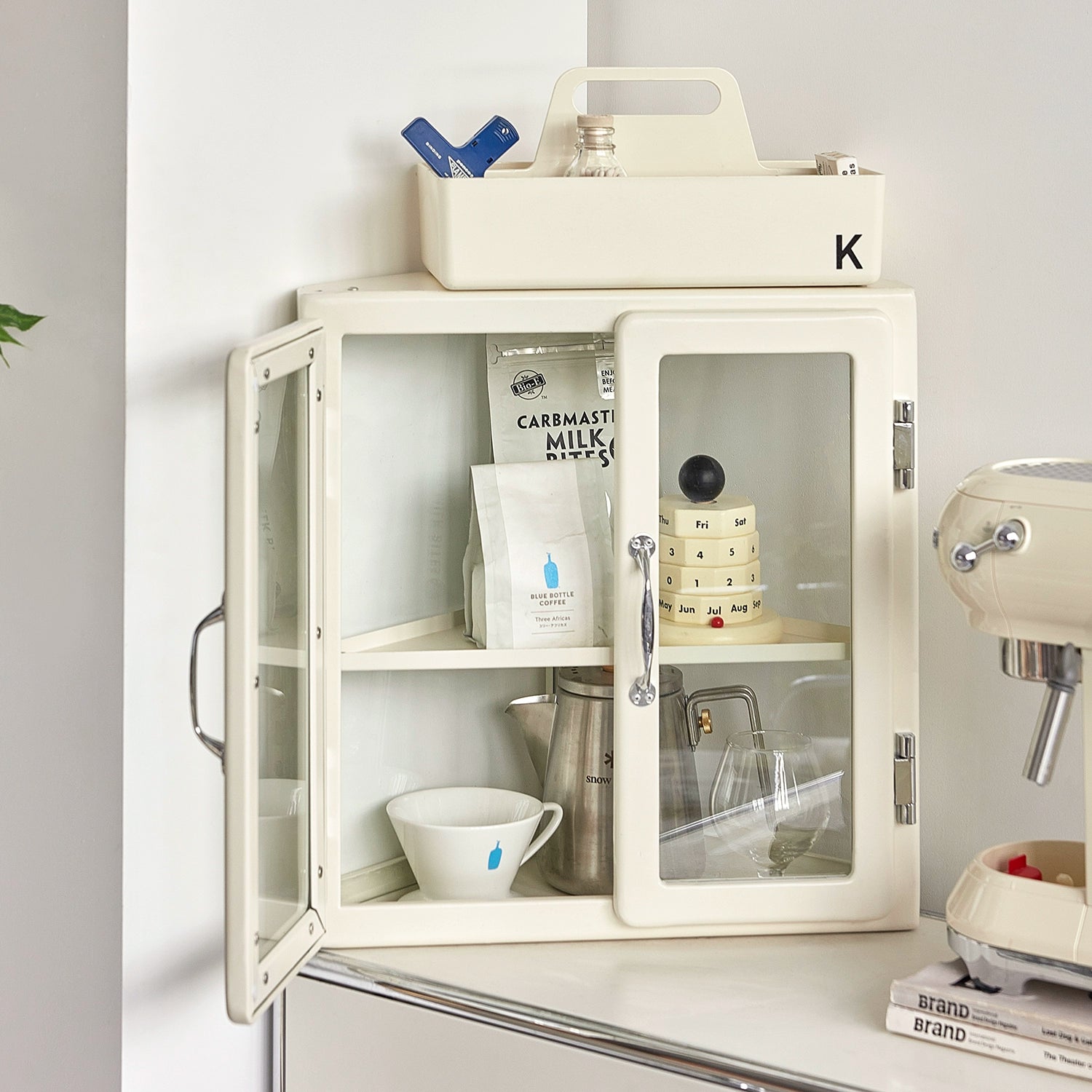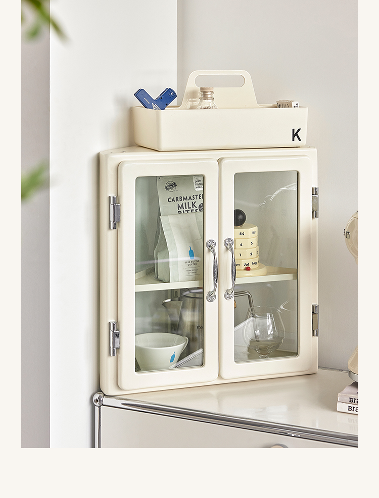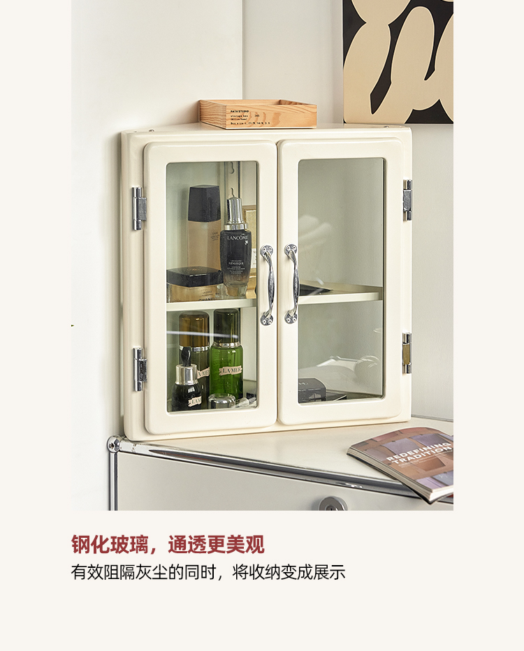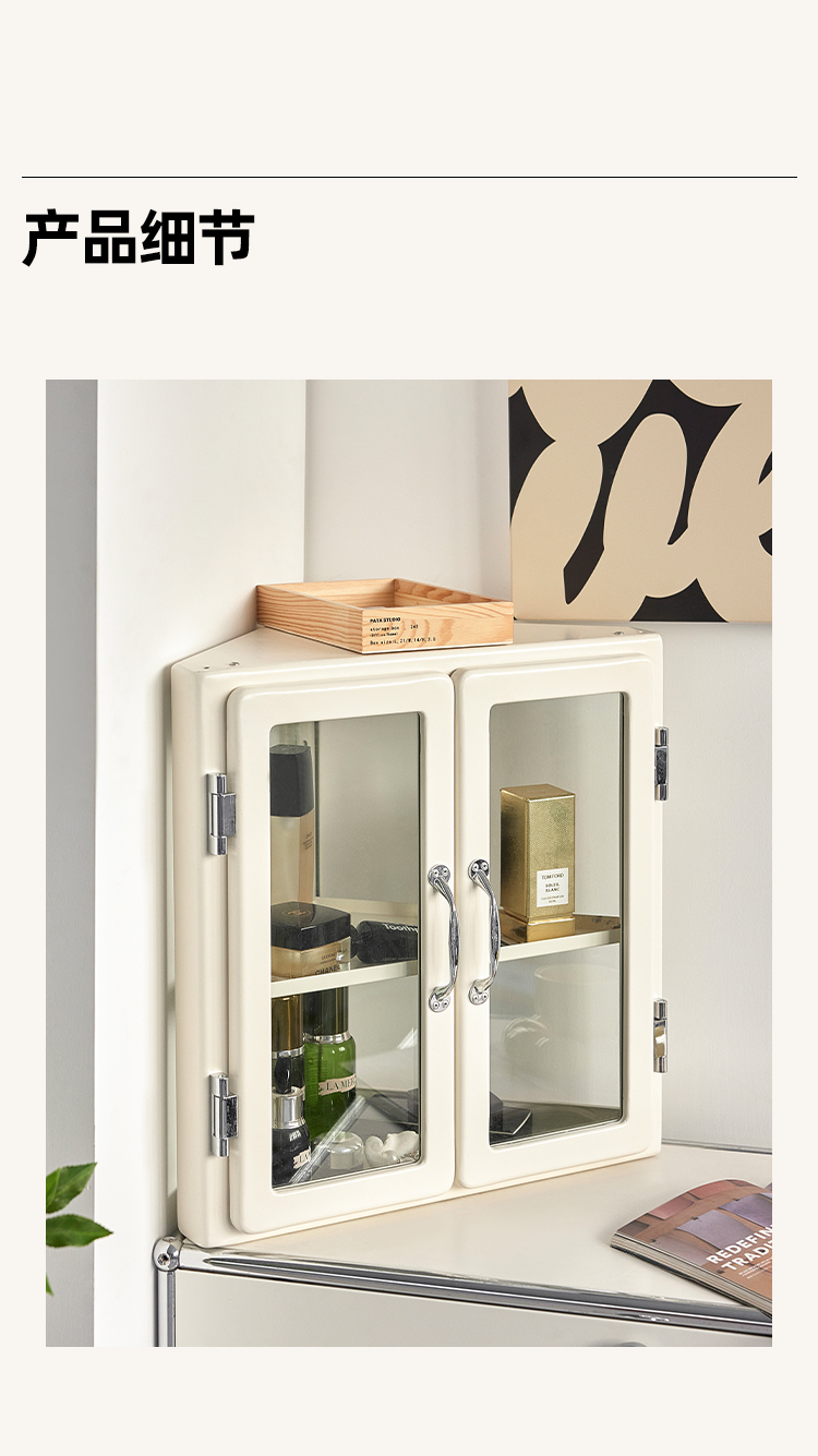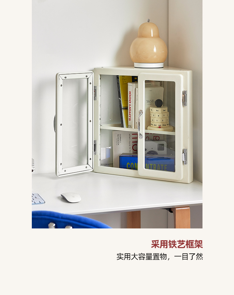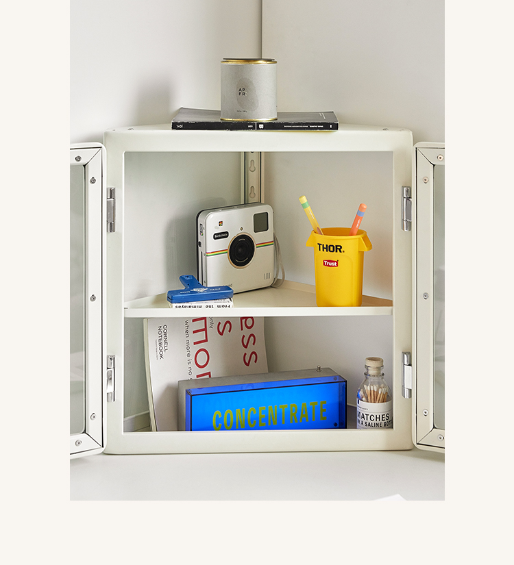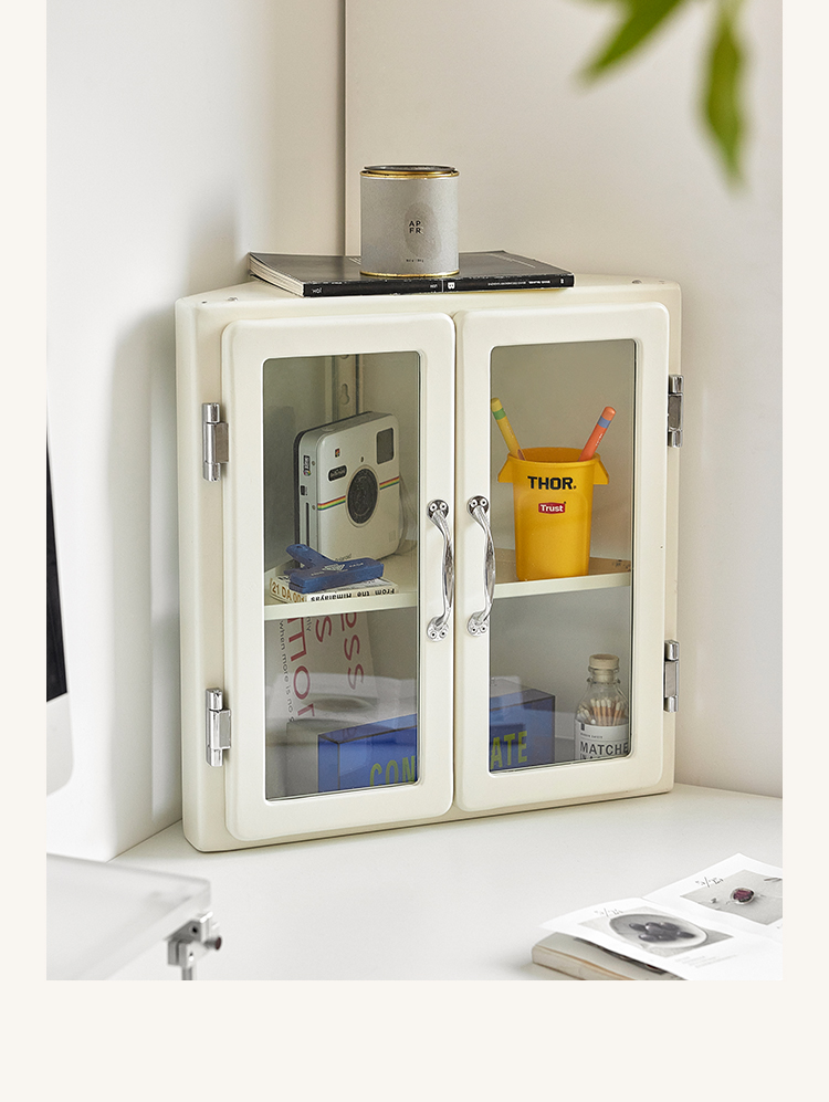 Desktop-Aufbewahrungsschrank Japanischer Retro-Metall-Dreiecksschrank Eckfigur Glas-Präsentationsständer