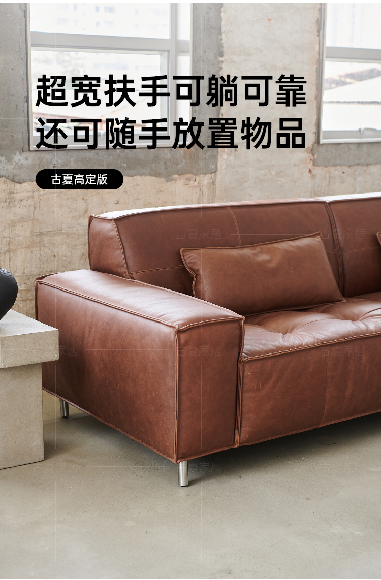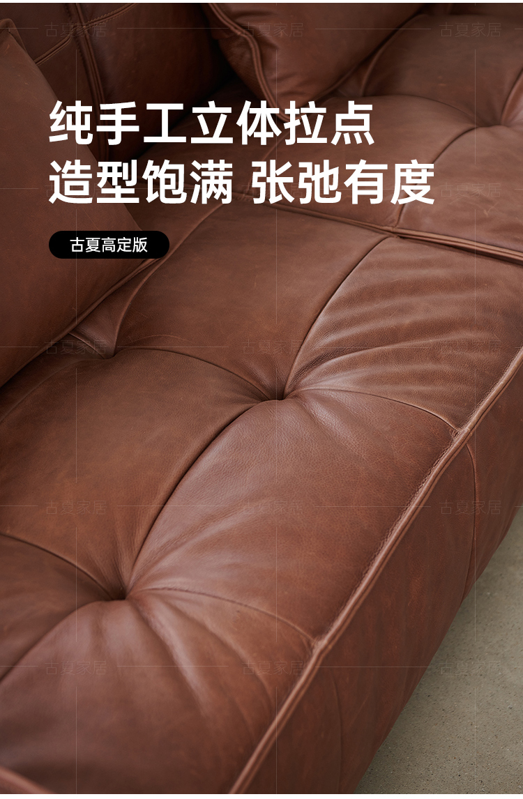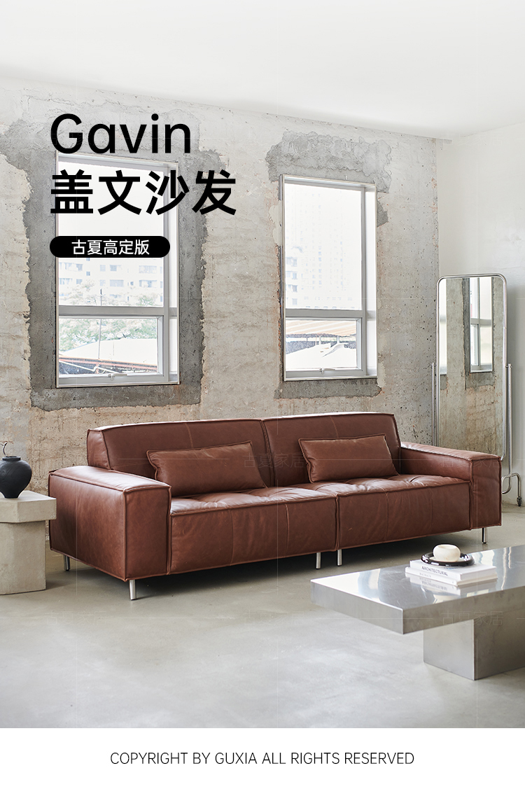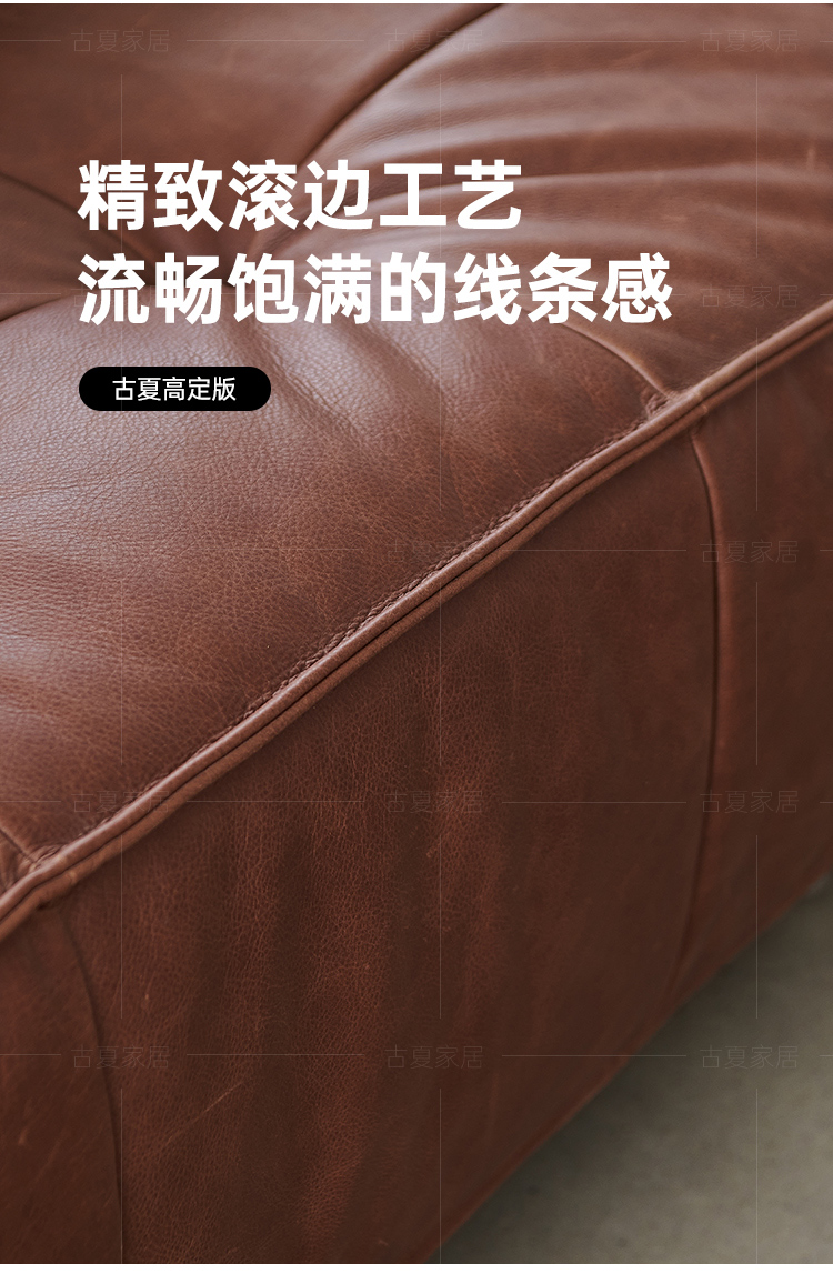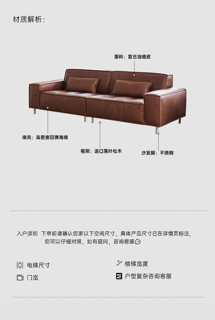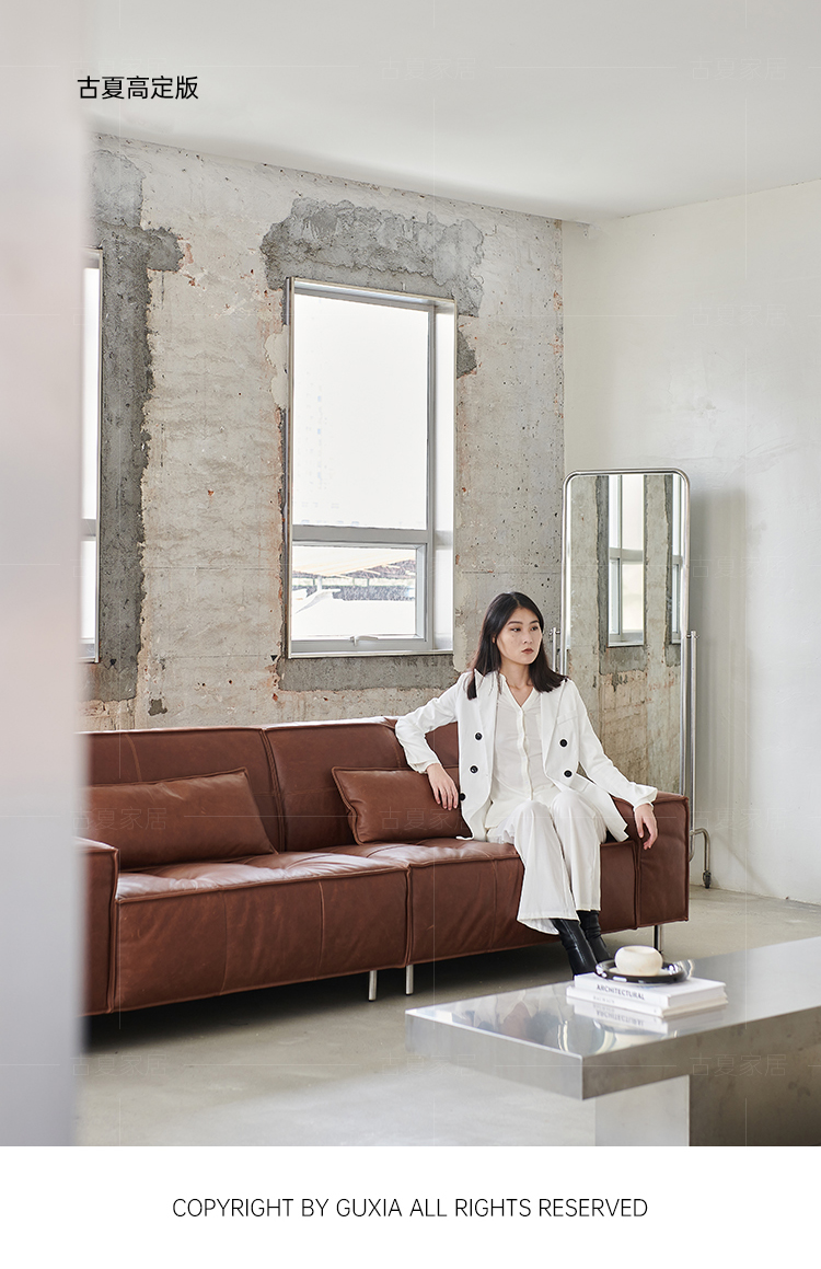 French Retro Oil Wax Leather Sofa Minimalist Tofu Block Straight Row Three-person Small Apartment Living Room Medieval Sofa