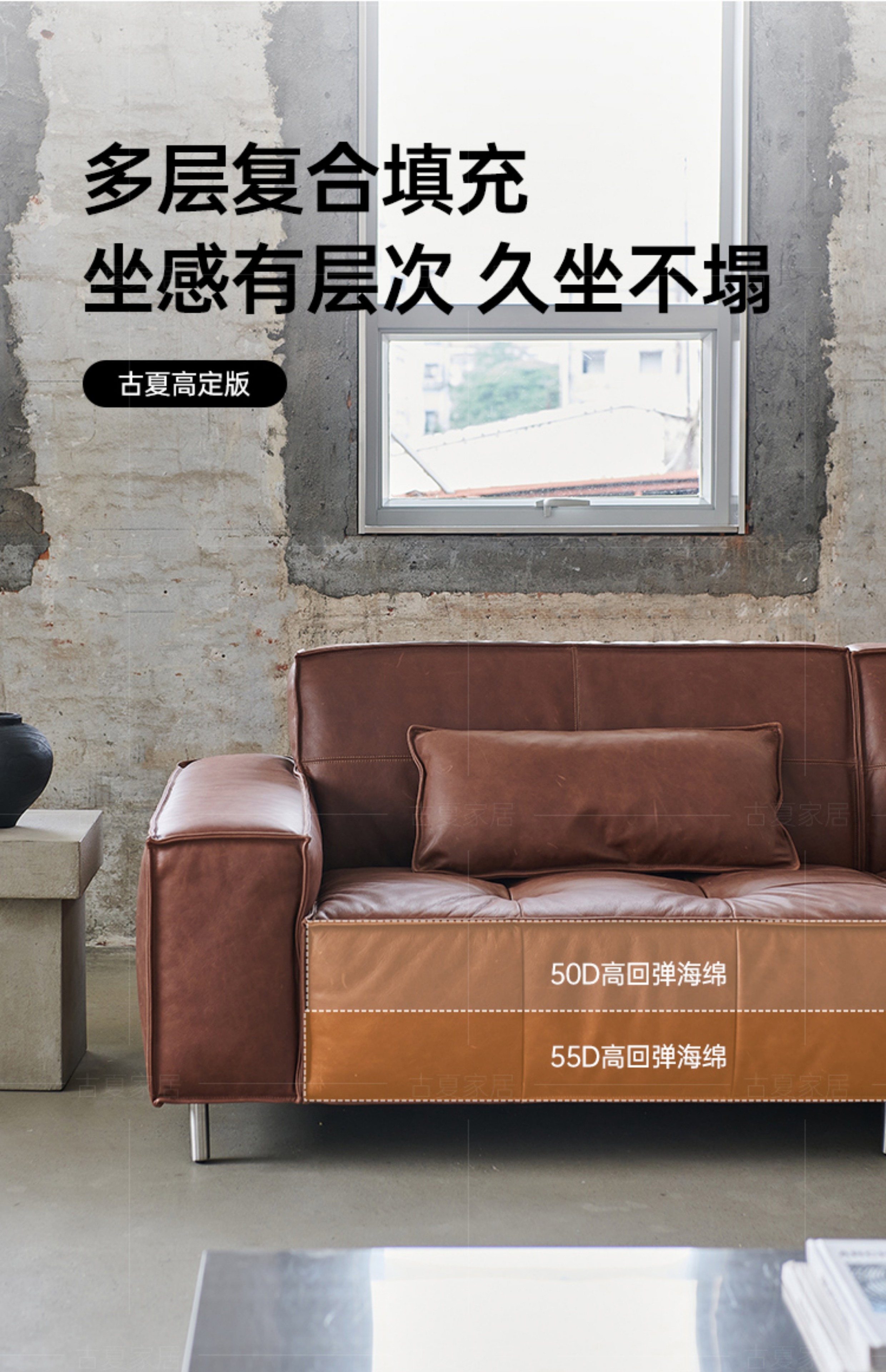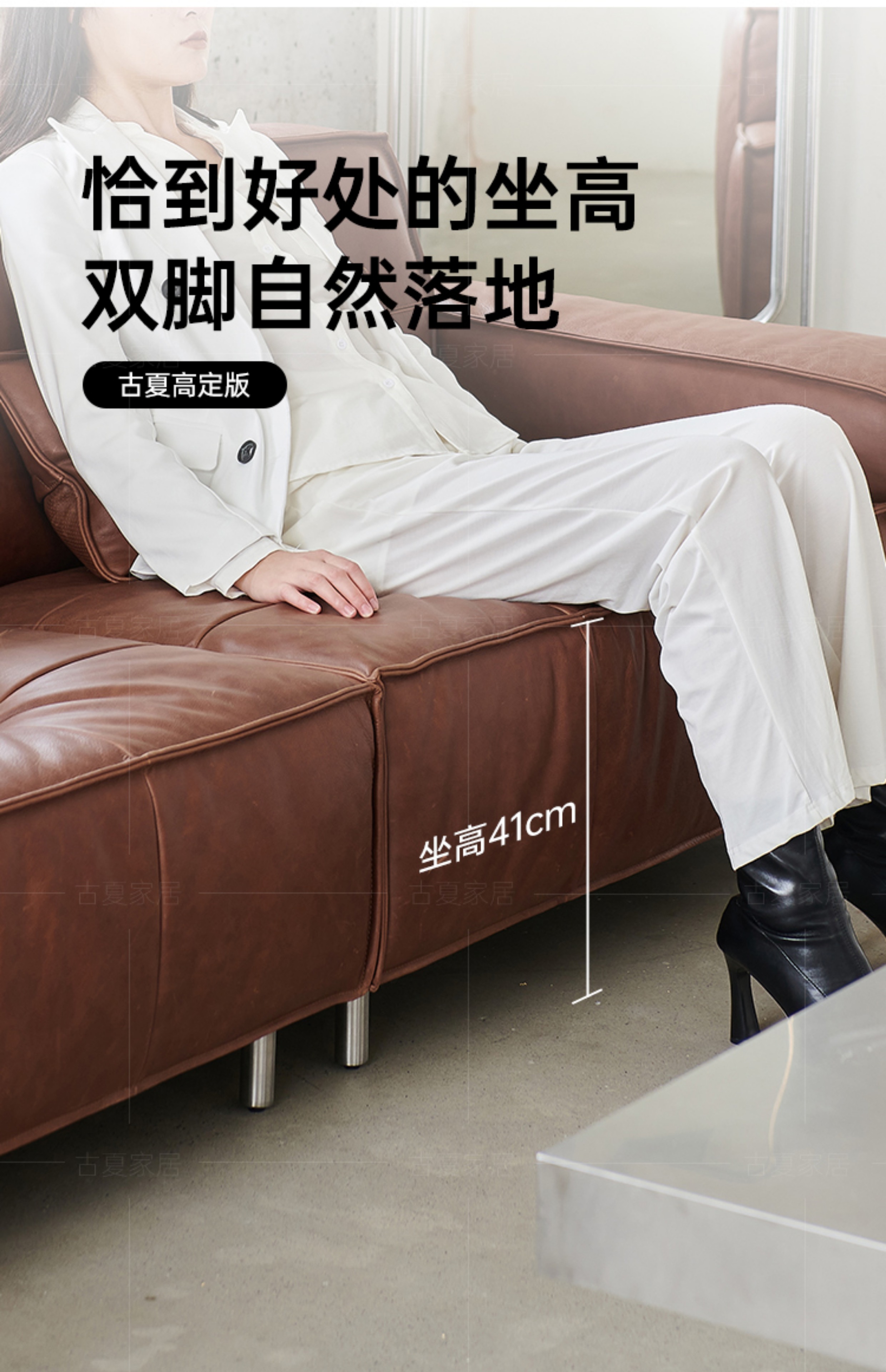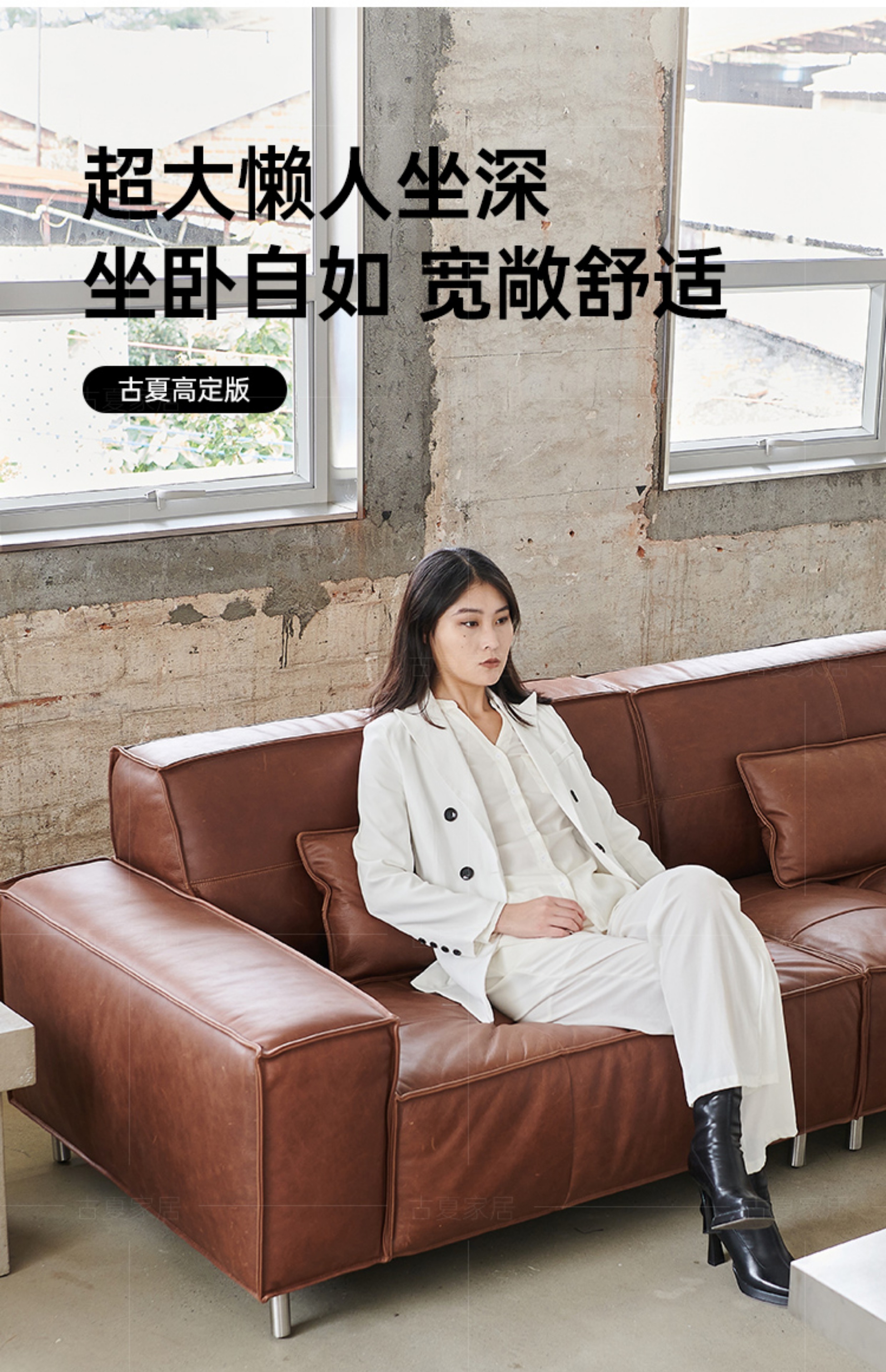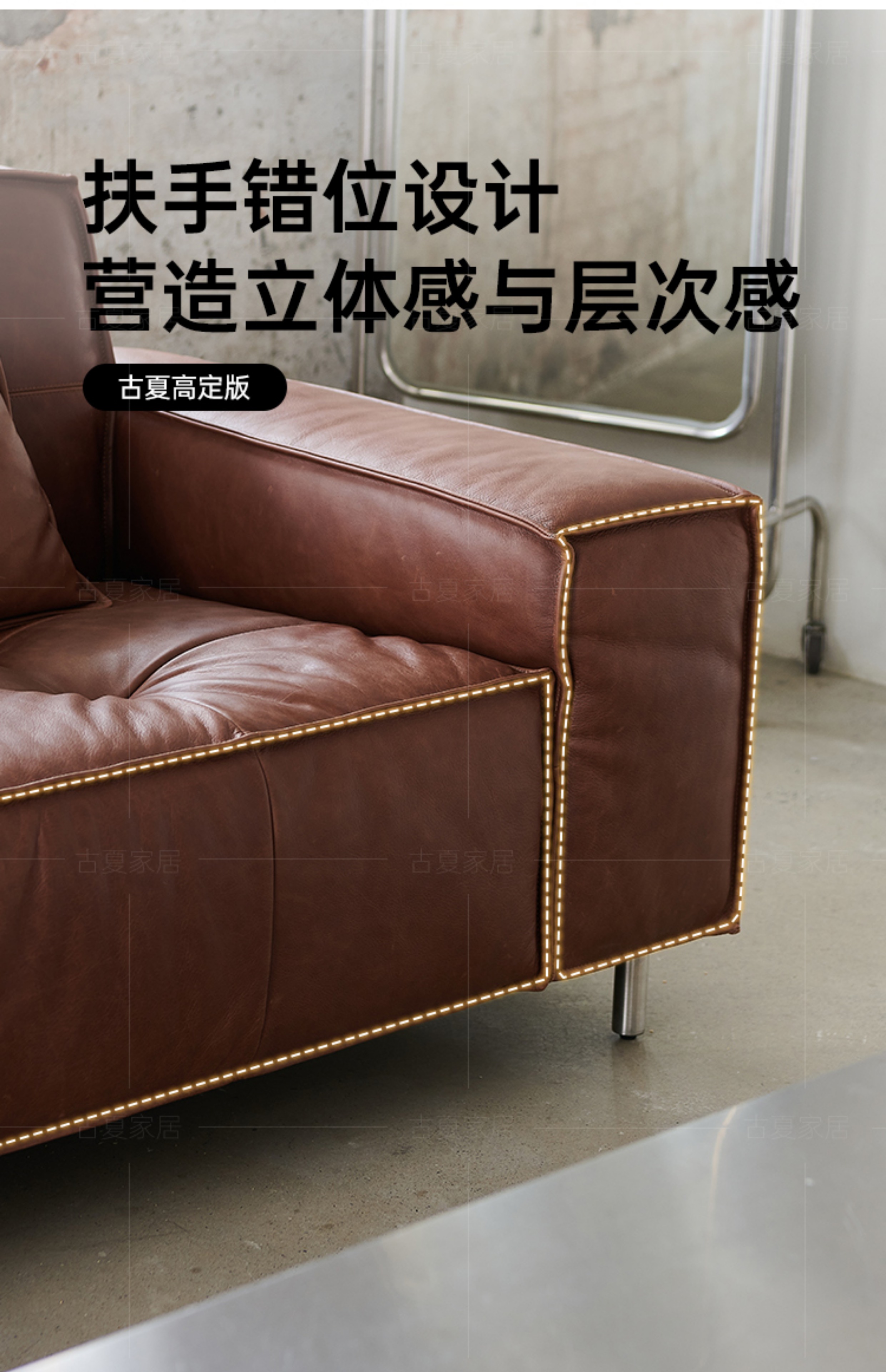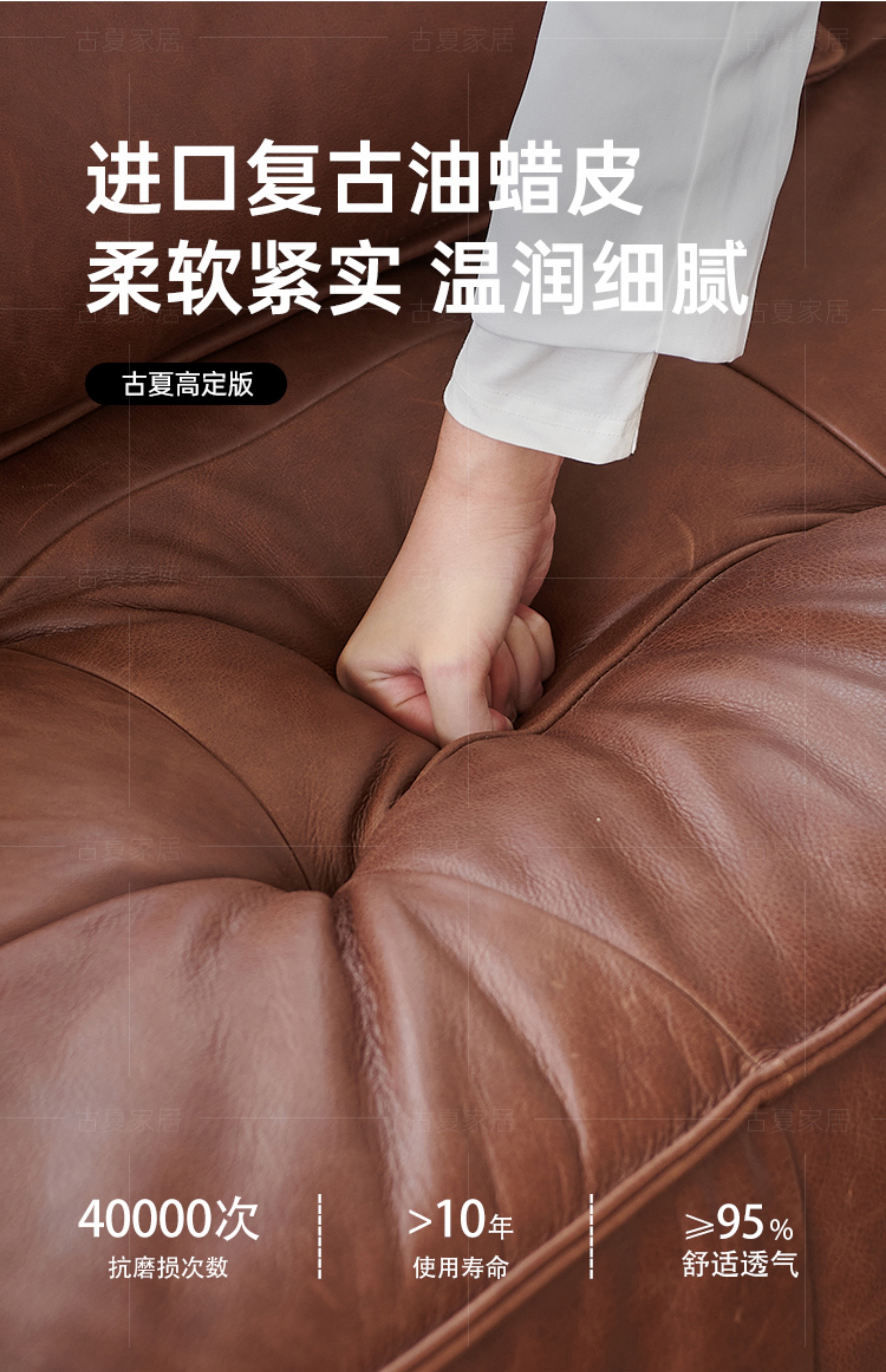 French Retro Oil Wax Leather Sofa Minimalist Tofu Block Straight Row Three-person Small Apartment Living Room Medieval Sofa