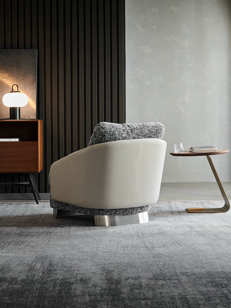 Home Furnishing High-end Cotton and Linen Leisure Chair True Italian Minimalist Leather Chair Designer Living Room Negotiation Chair Single Sofa
