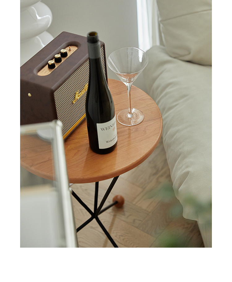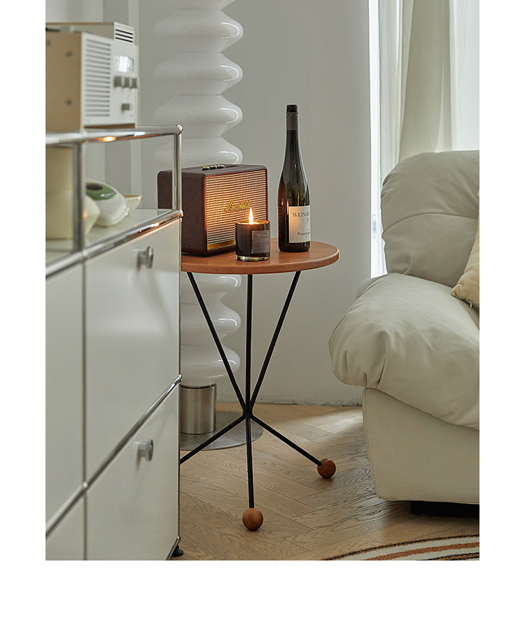 Kreativer Couchtisch aus Massivholz, kleiner Balkontisch für Wohnungen, kleiner runder Tisch, leichter Luxus, minimalistischer Designer-Beistelltisch im Ins-Stil