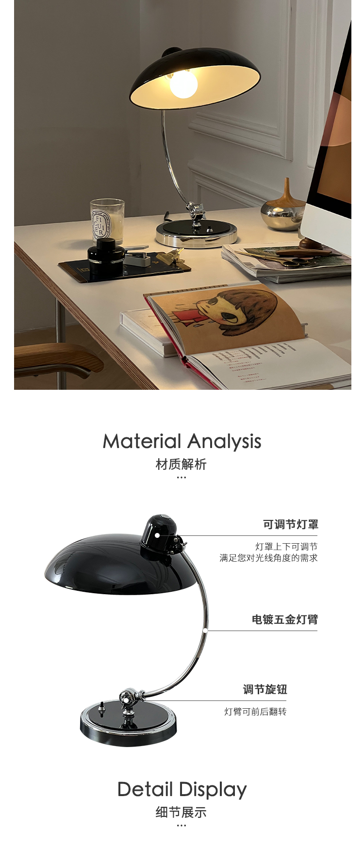 Dänische mittelalterliche Replik Tischlampe Nordische klassische dekorative Lampe Schlafzimmer Nachttischlampe Bauhaus Lampe
