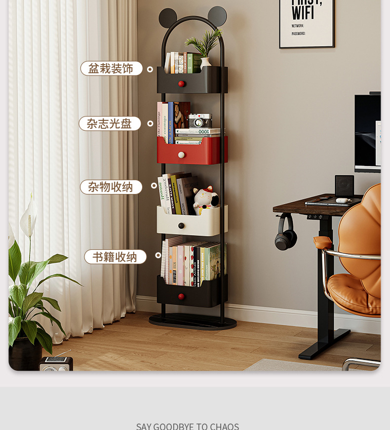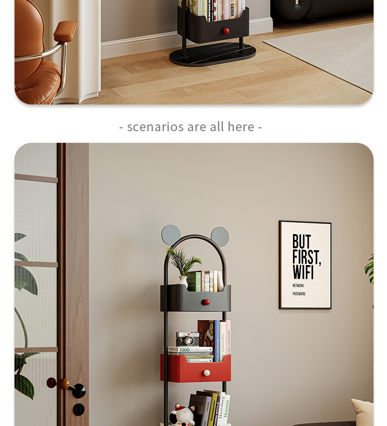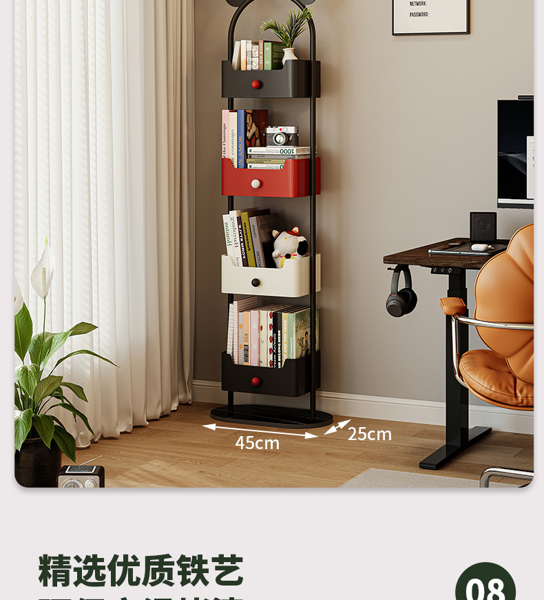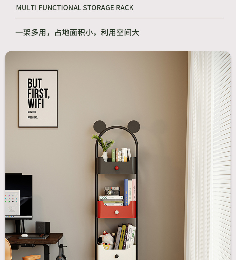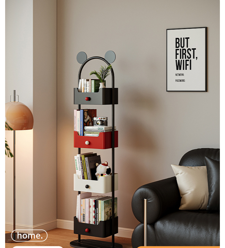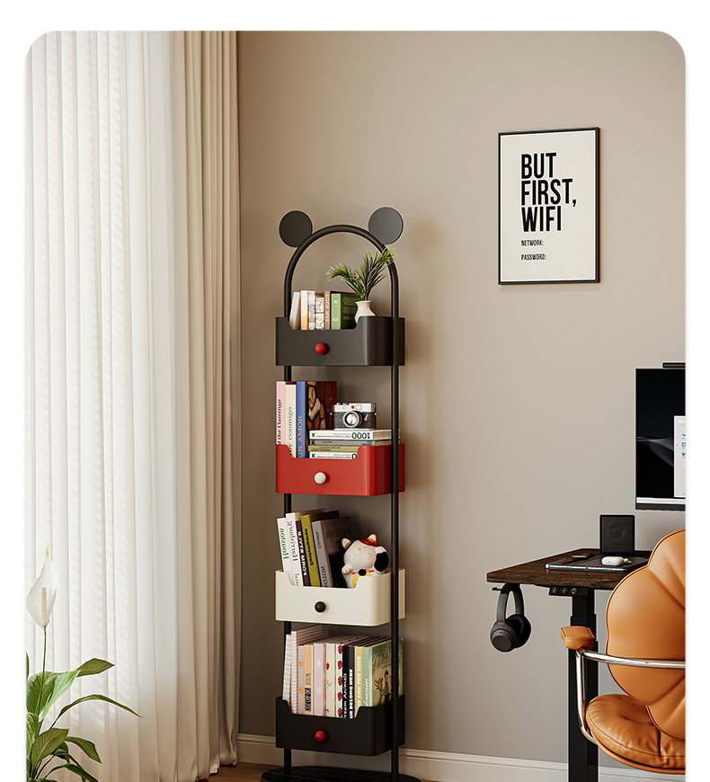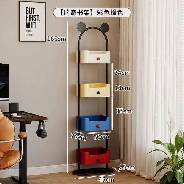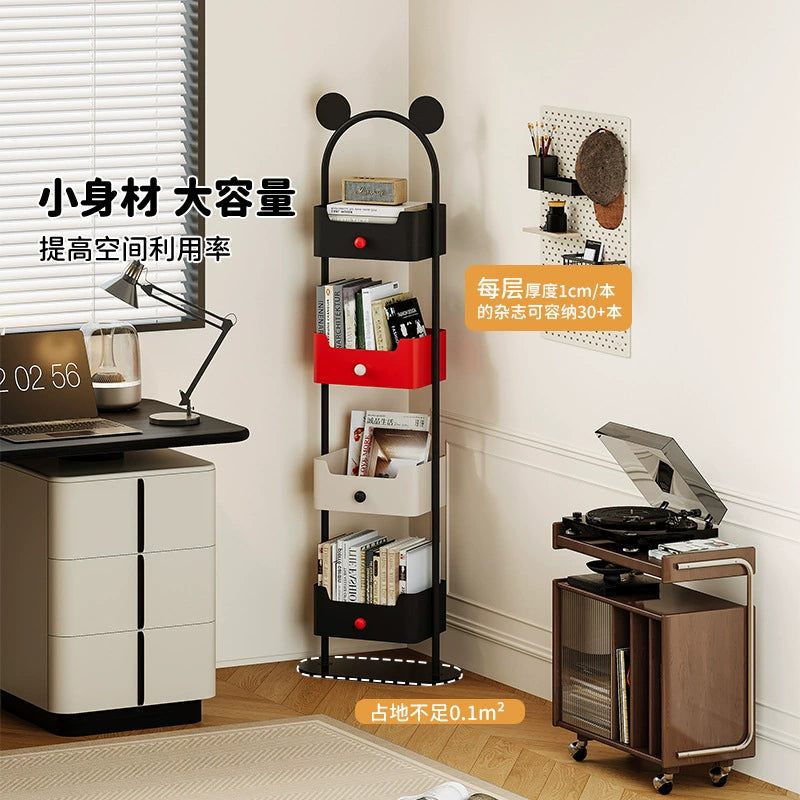 Bodenhohes Bücherregal Wohnzimmer Zuhause Mehrschichtiges Schmiedeeisenregal an der Wand Kreativer Kinder-Eckschrank
