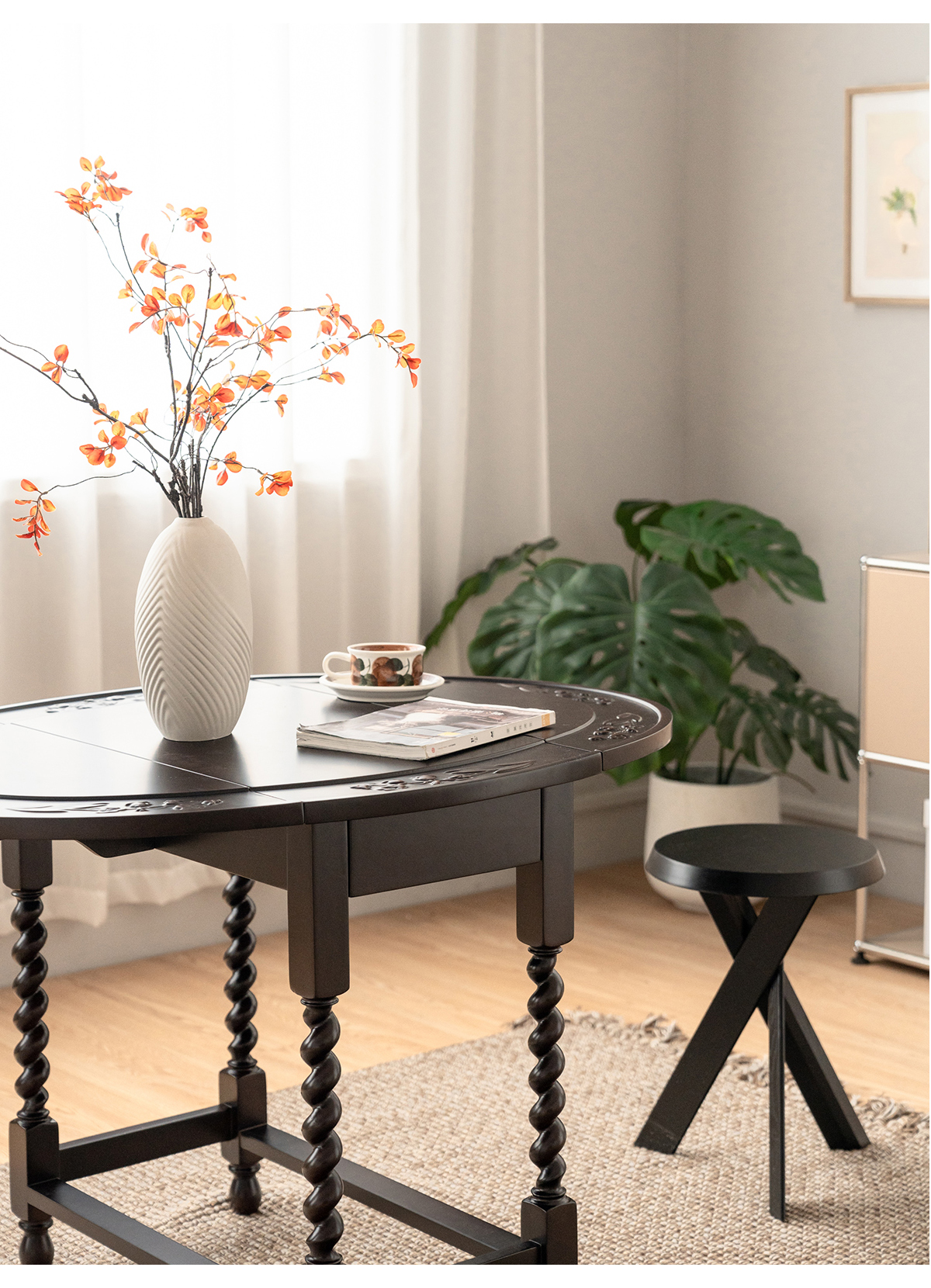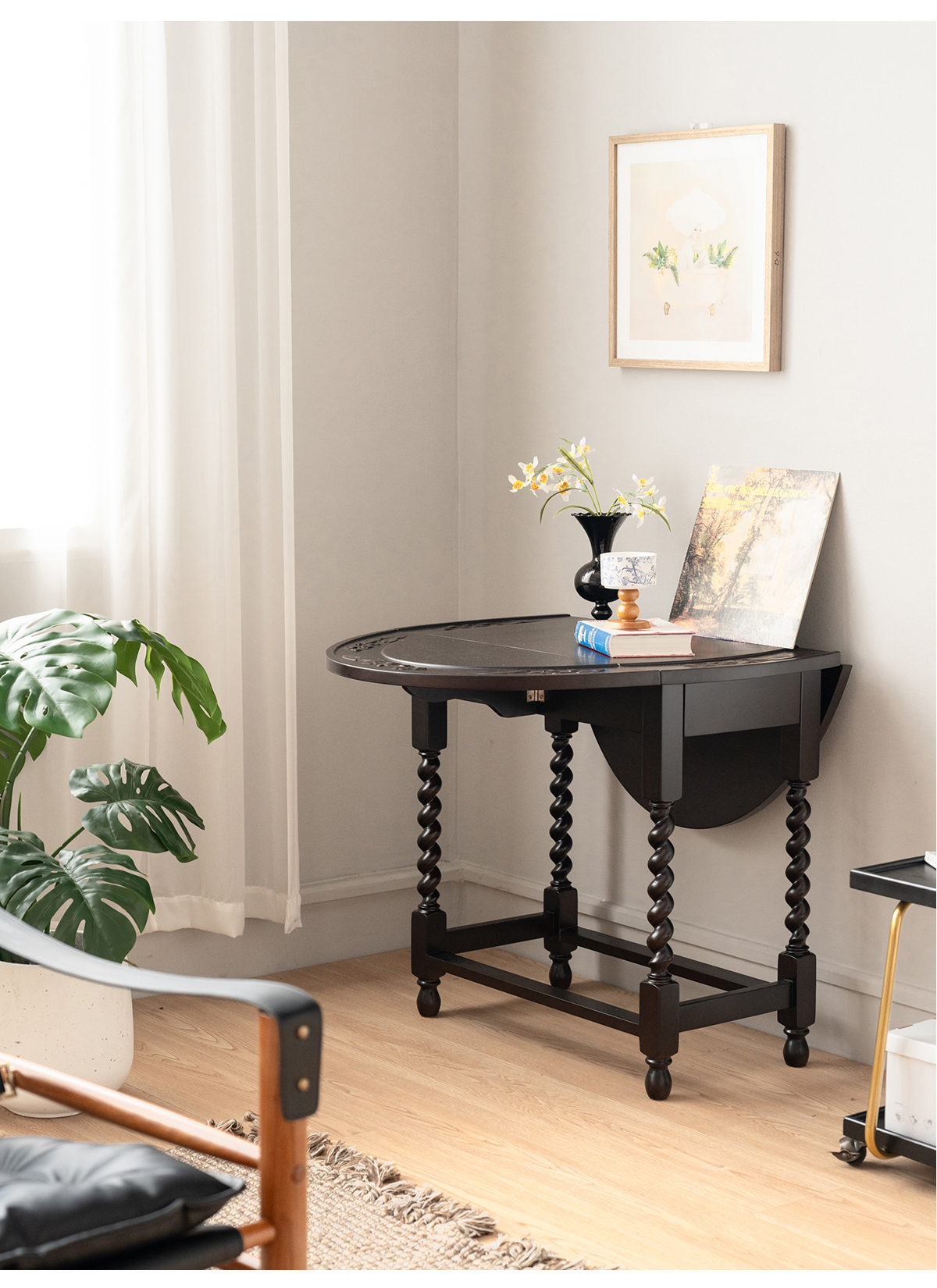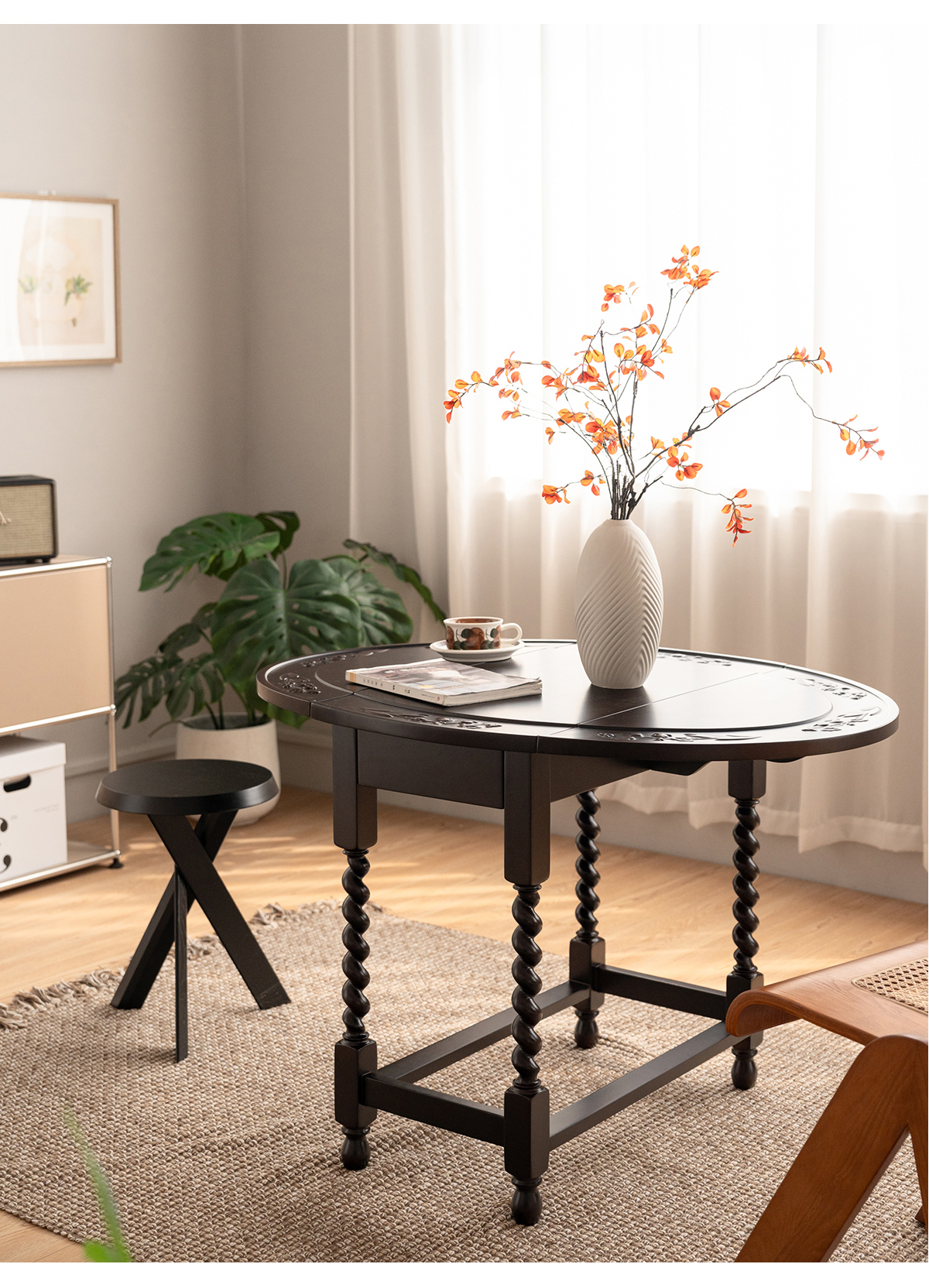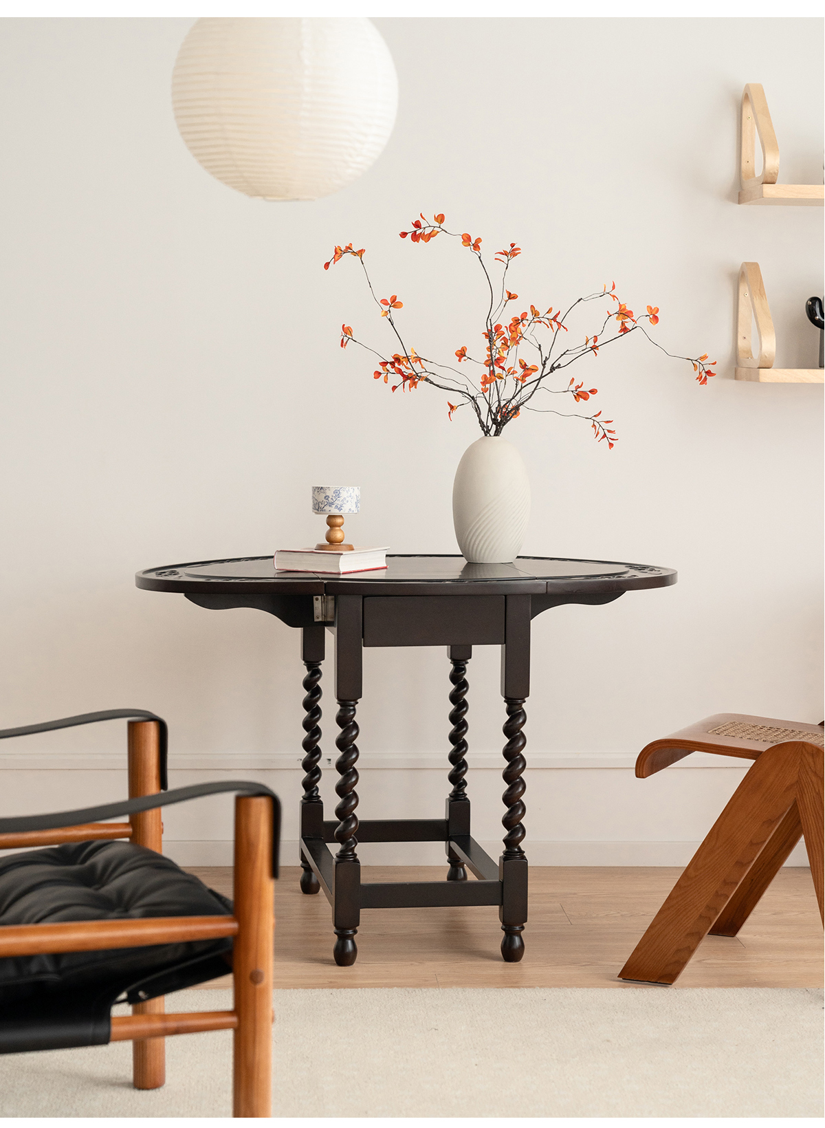 Klappbarer Esstisch Französischer mittelalterlicher Designer Massivholztisch Wohnzimmer Home Balkon Kaffee runder Tisch