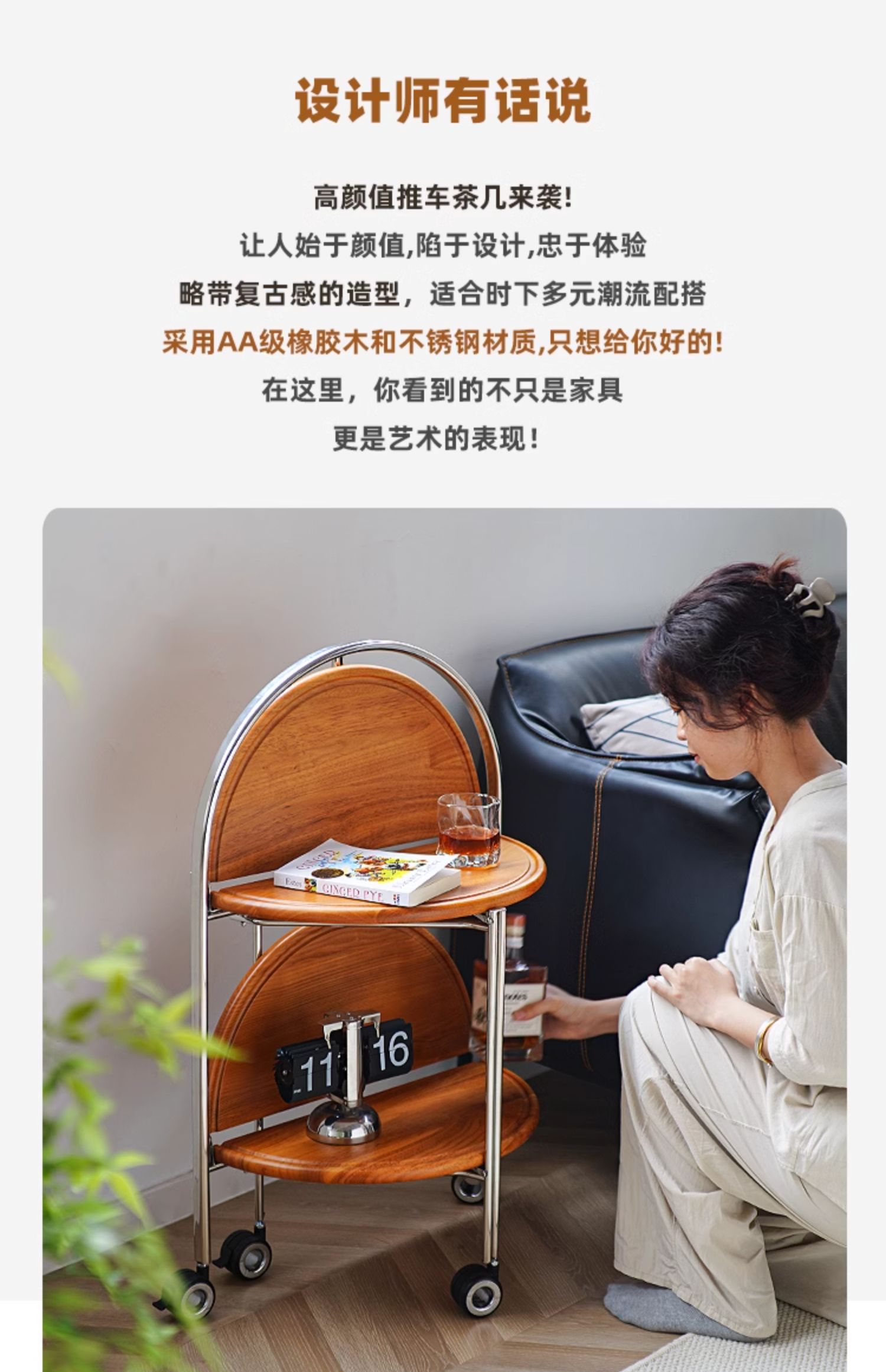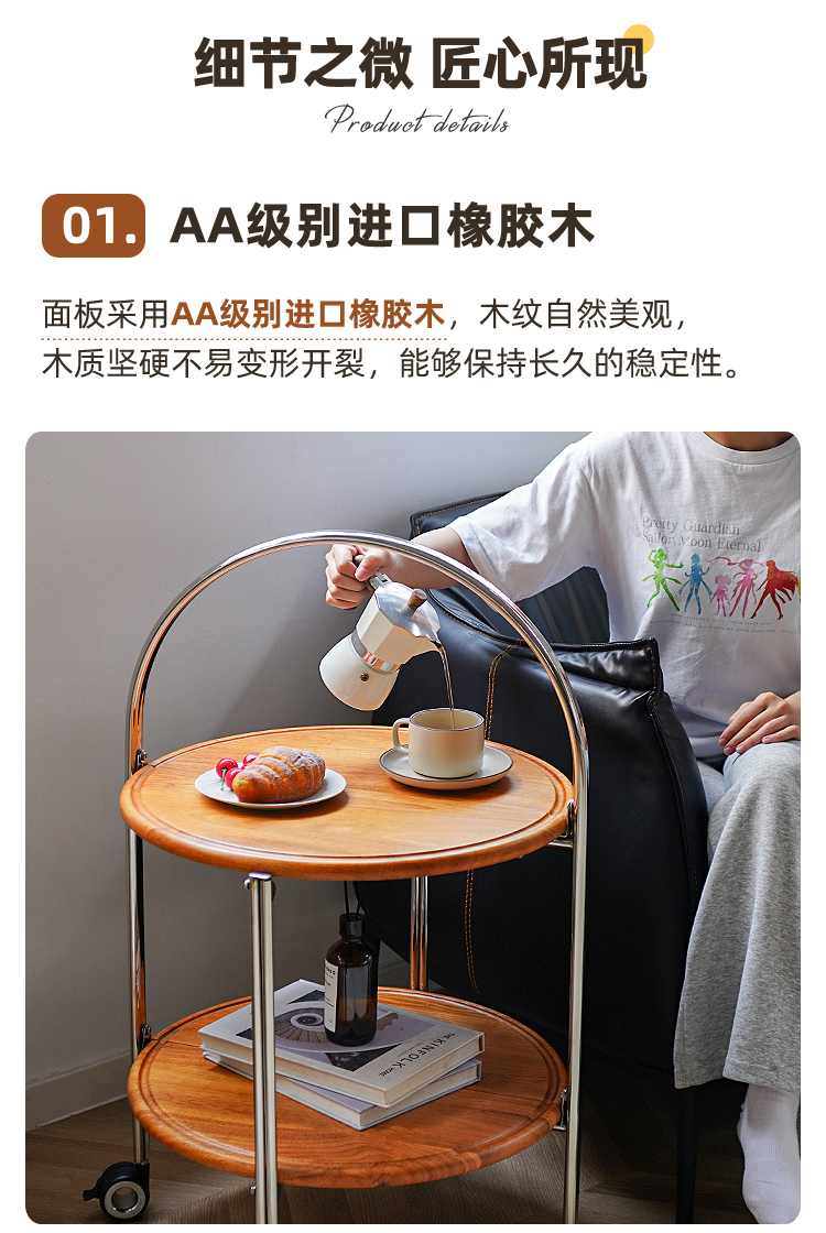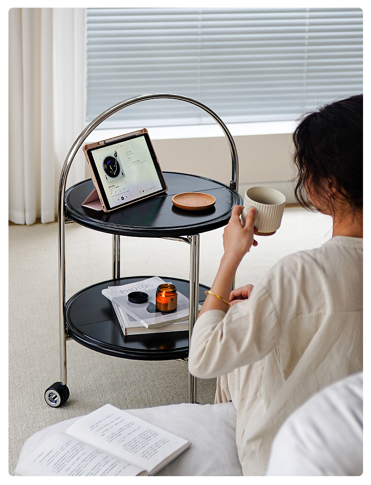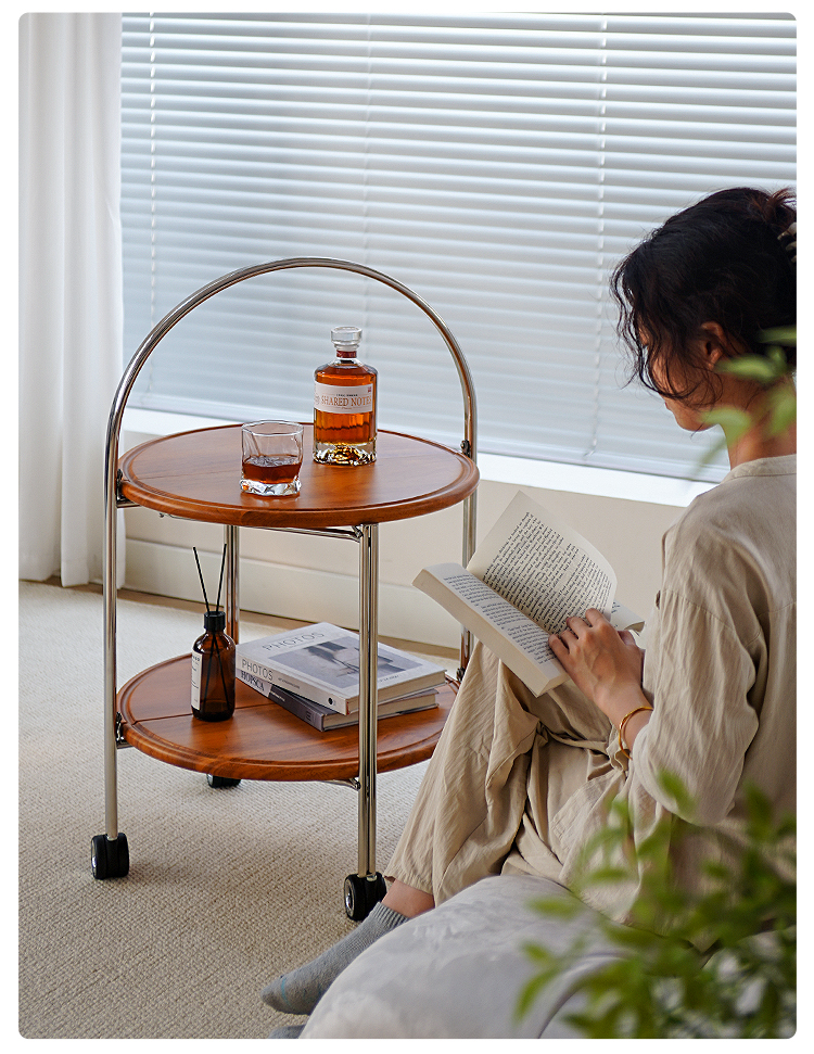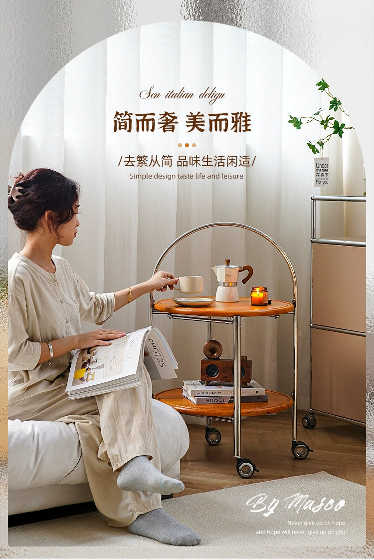 Klappbarer Couchtisch, beweglicher mittelalterlicher Sofa-Seitentisch, paar Massivholzwagen, kleine Wohnung, Nachttisch-Rack