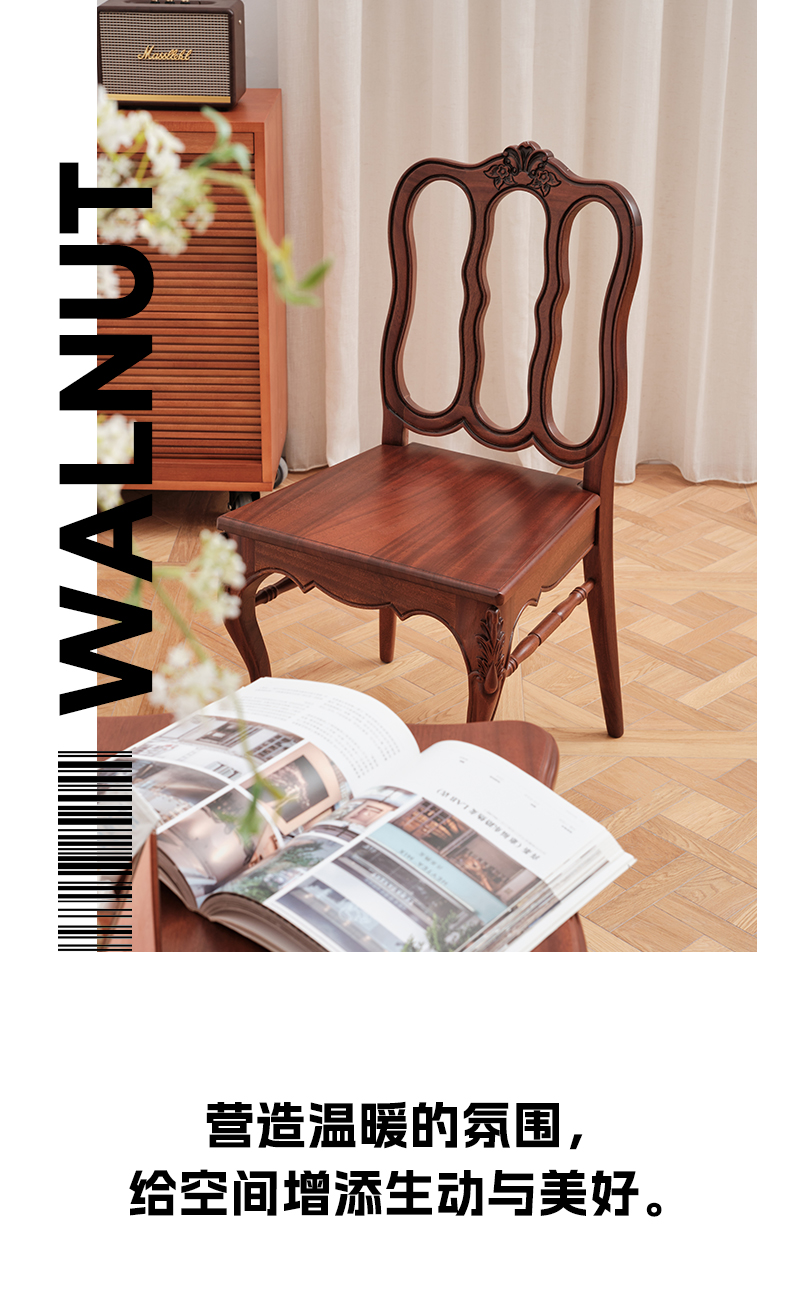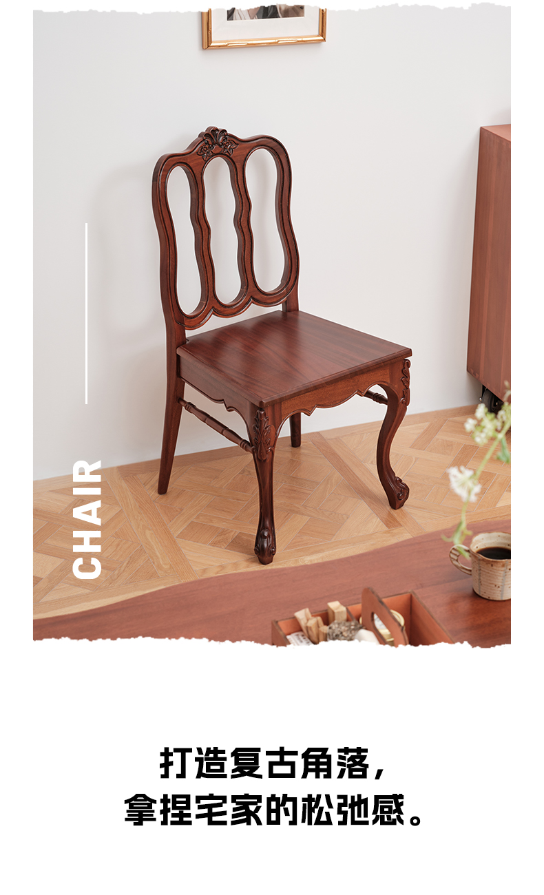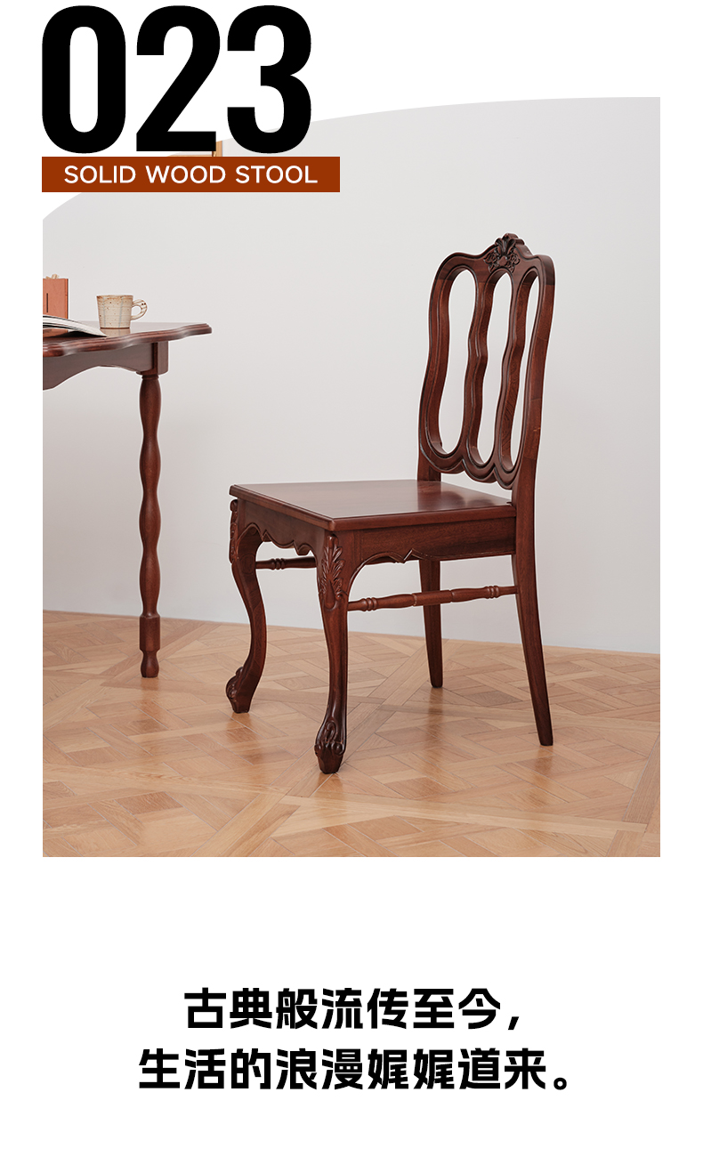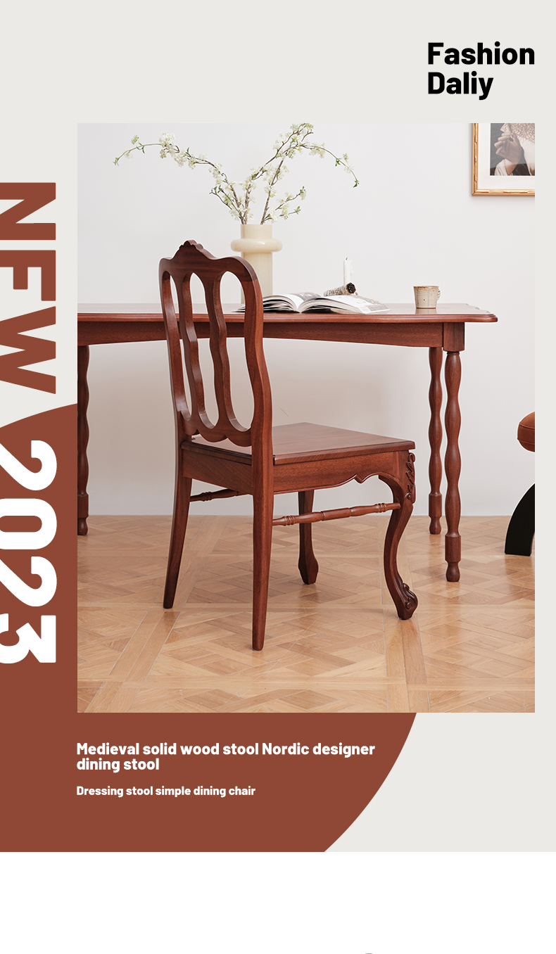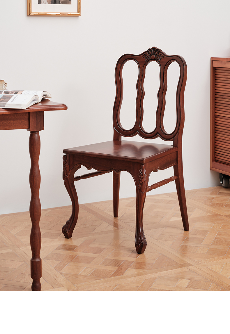 Französischer Esszimmerstuhl, hoher künstlerischer Retro-Stuhl, Stuhl mit Rückenlehne aus massivem Holz, Stuhl für Wohnzimmer, Zuhause, Café