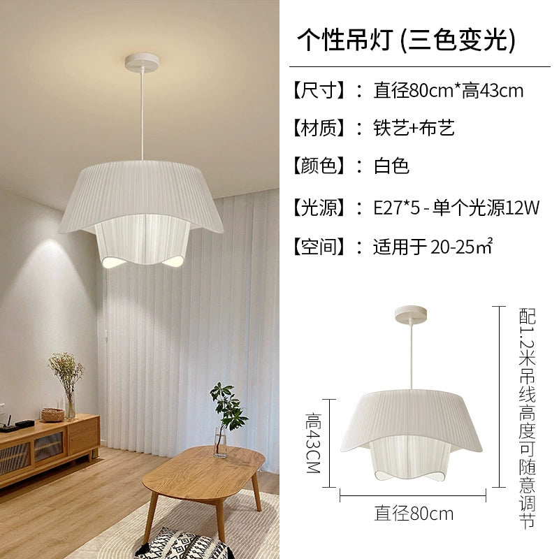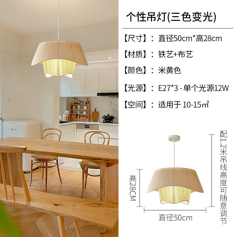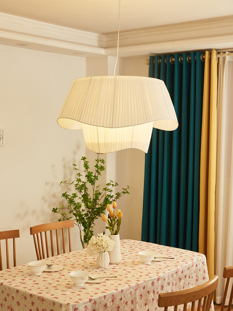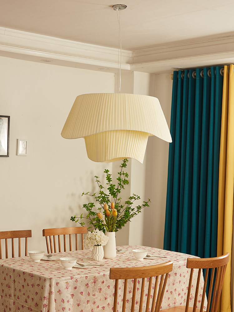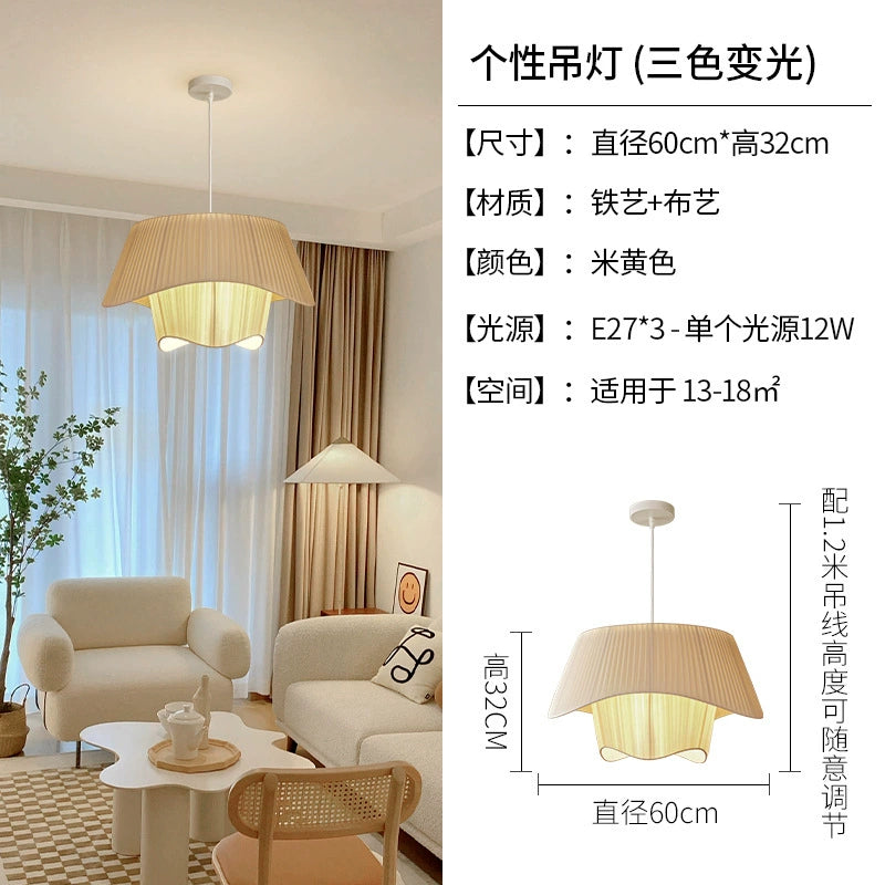 Französischer mittelalterlicher Kronleuchter Stoffoberfläche Champagnerfarbe Wohnzimmer Hauptlicht stromlinienförmiges einfaches Schlafzimmer Atmosphärenlicht