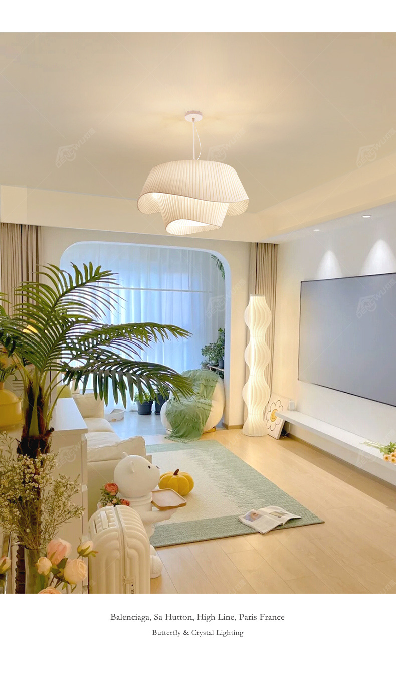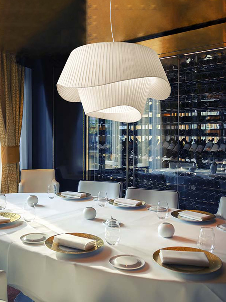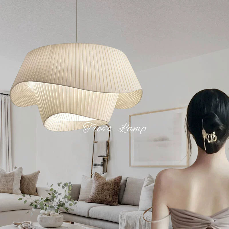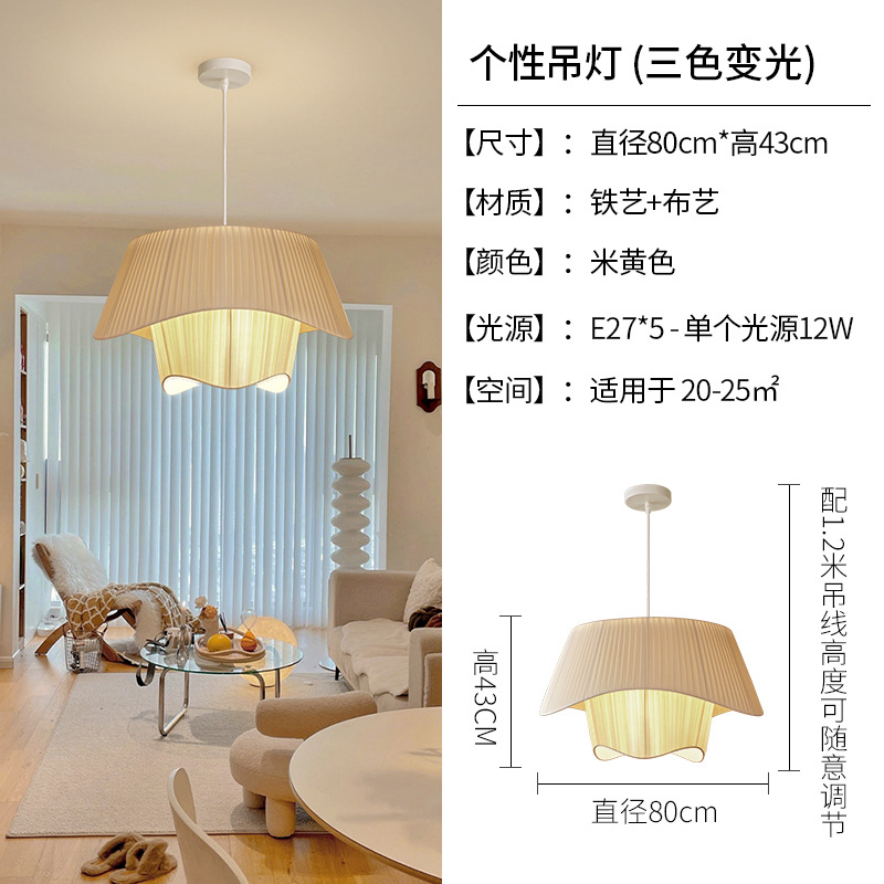 Französischer mittelalterlicher Kronleuchter Stoffoberfläche Champagnerfarbe Wohnzimmer Hauptlicht stromlinienförmiges einfaches Schlafzimmer Atmosphärenlicht