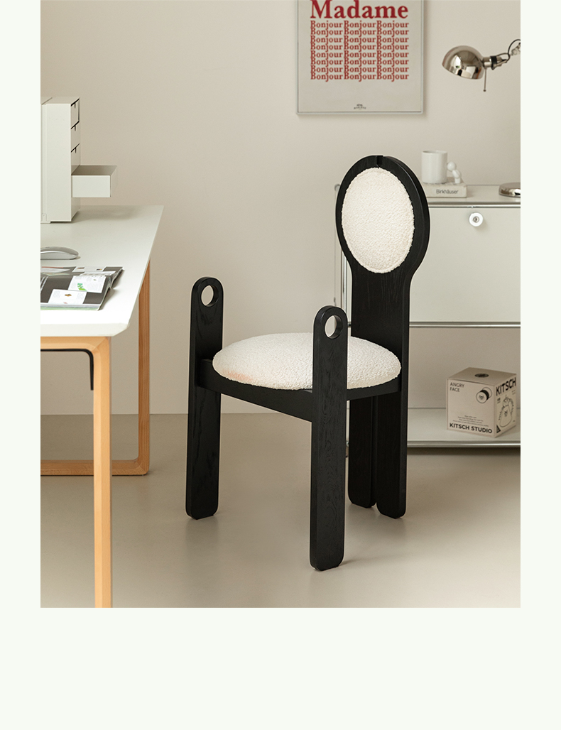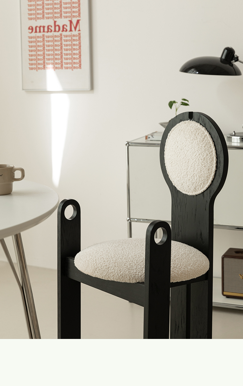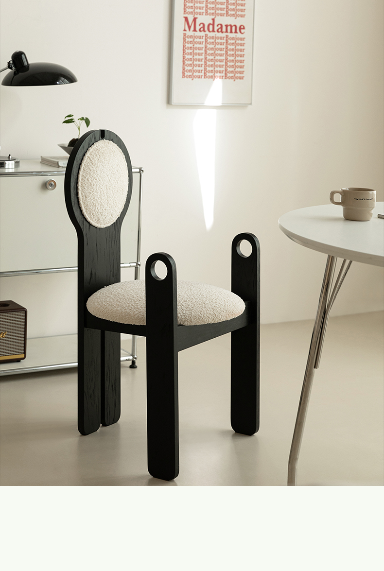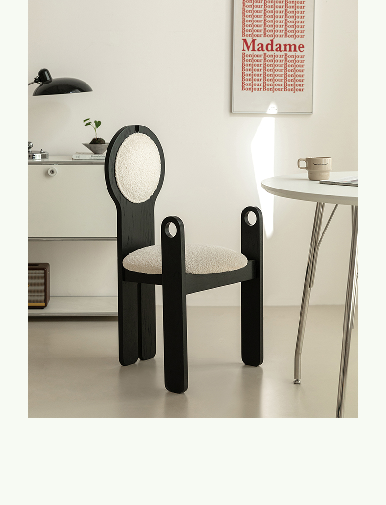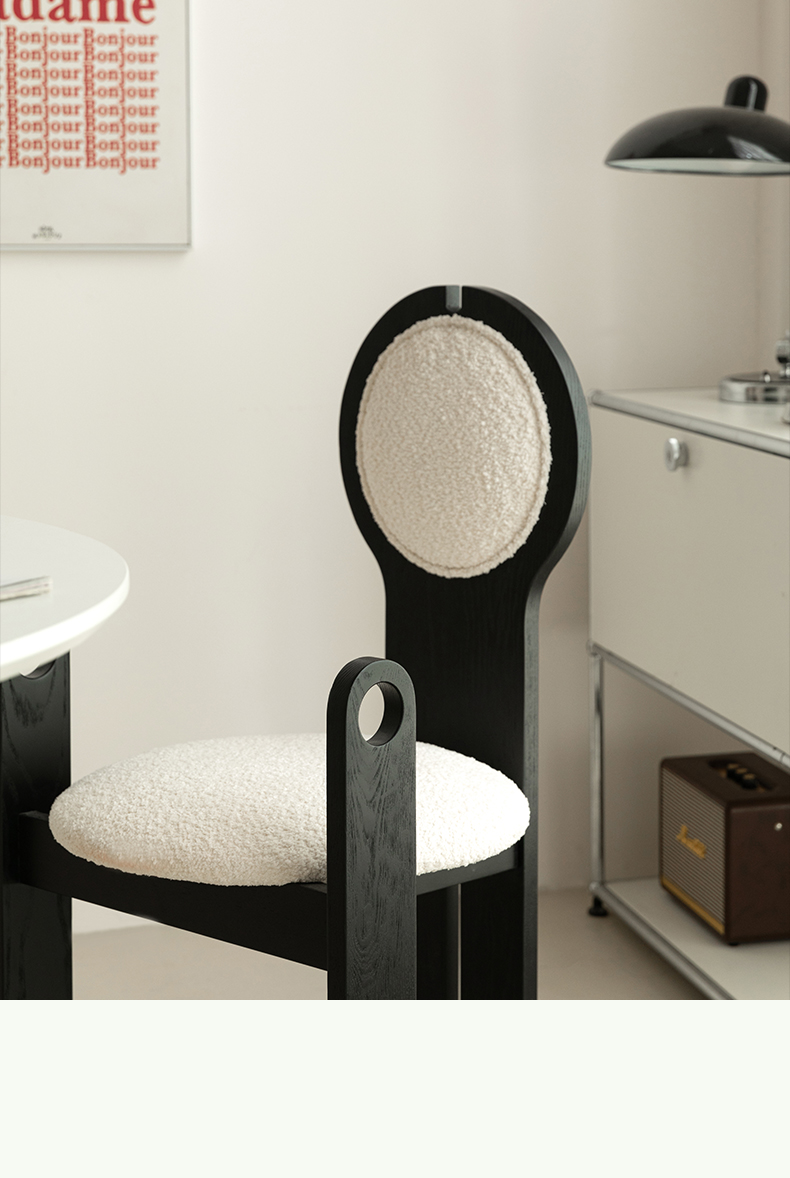Französischer mittelalterlicher Esszimmerstuhl, Lammwolle, weicher Stuhl, Ankleidestuhl, Stuhl mit Rückenlehne aus massivem Holz, leichter Luxus, hohes Gefühl