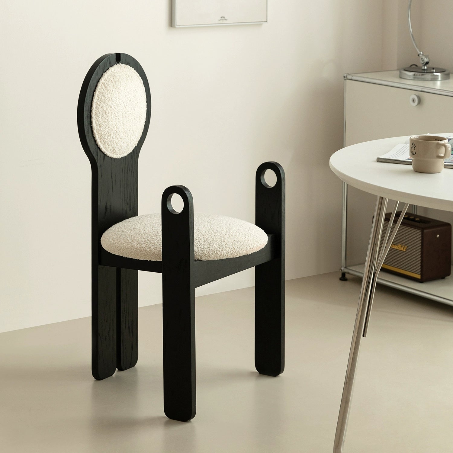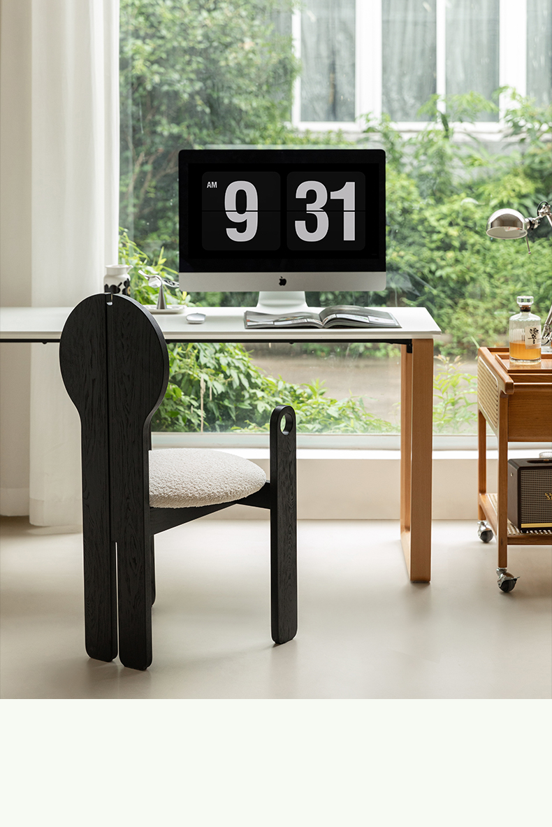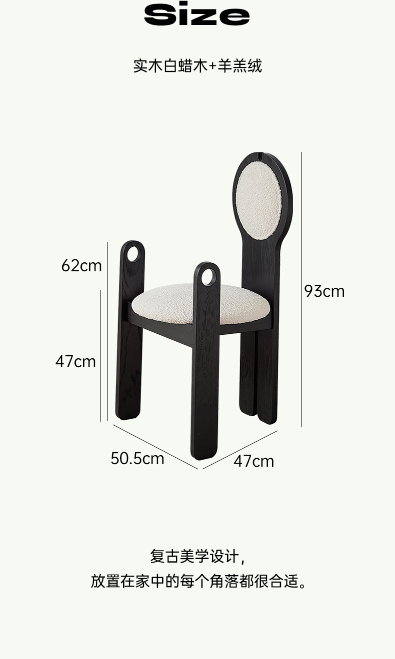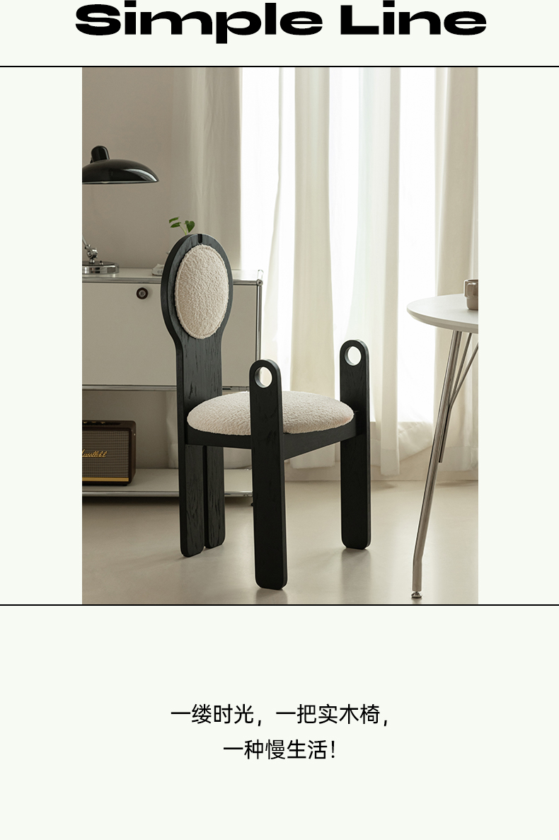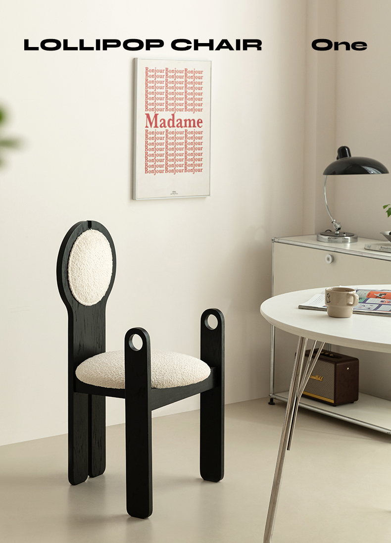 Französischer mittelalterlicher Esszimmerstuhl, Lammwolle, weicher Stuhl, Ankleidestuhl, Stuhl mit Rückenlehne aus massivem Holz, leichter Luxus, hohes Gefühl