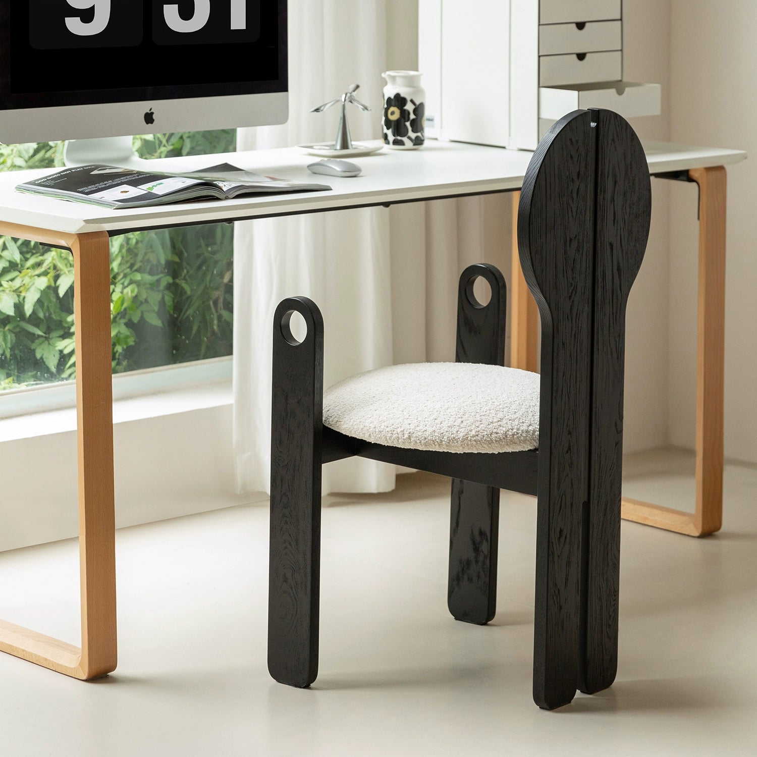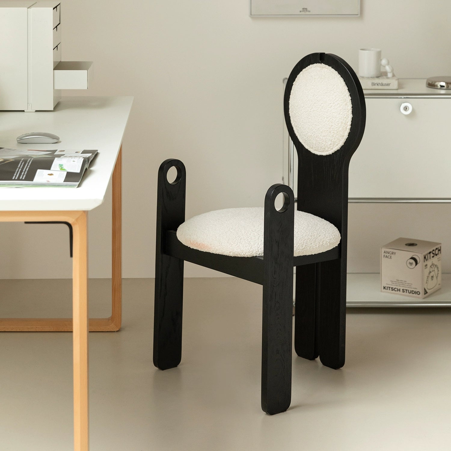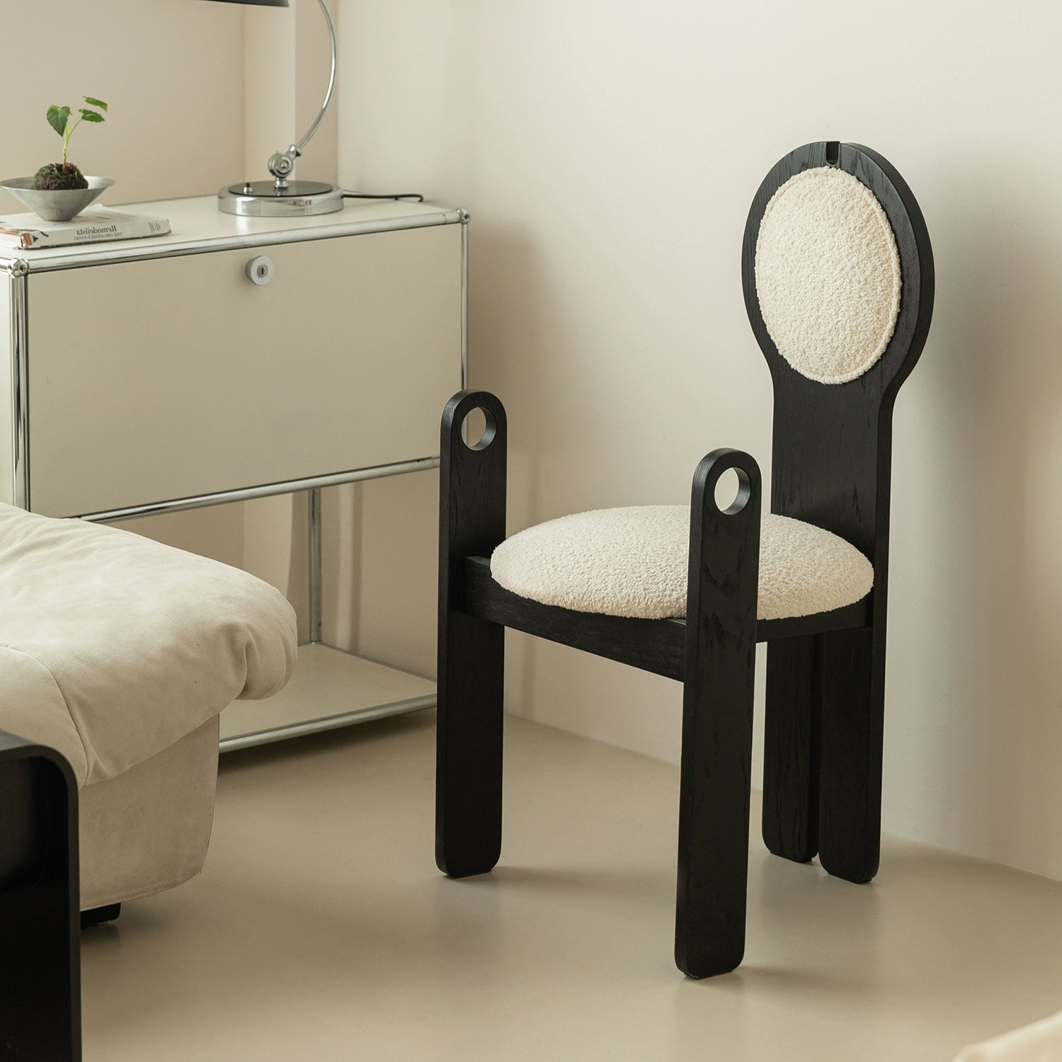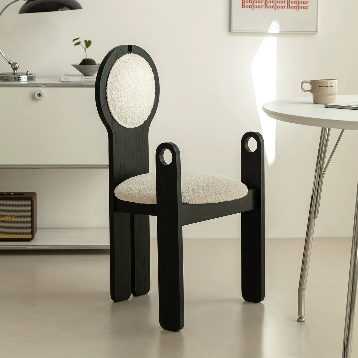 Französischer mittelalterlicher Esszimmerstuhl, Lammwolle, weicher Stuhl, Ankleidestuhl, Stuhl mit Rückenlehne aus massivem Holz, leichter Luxus, hohes Gefühl