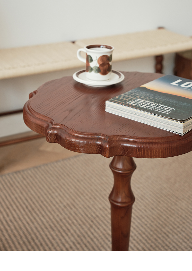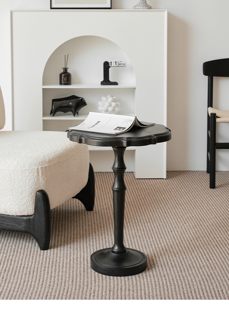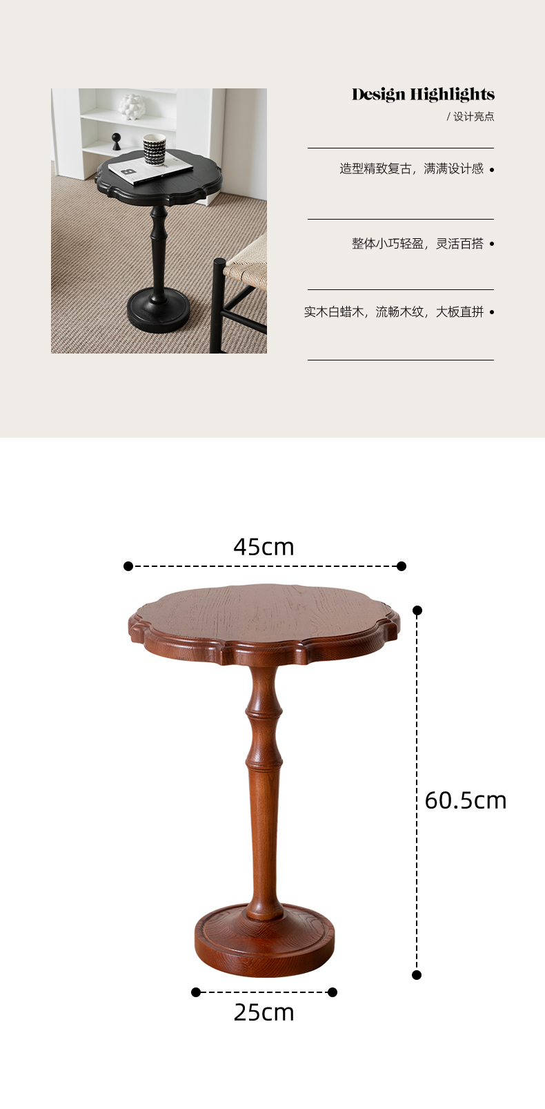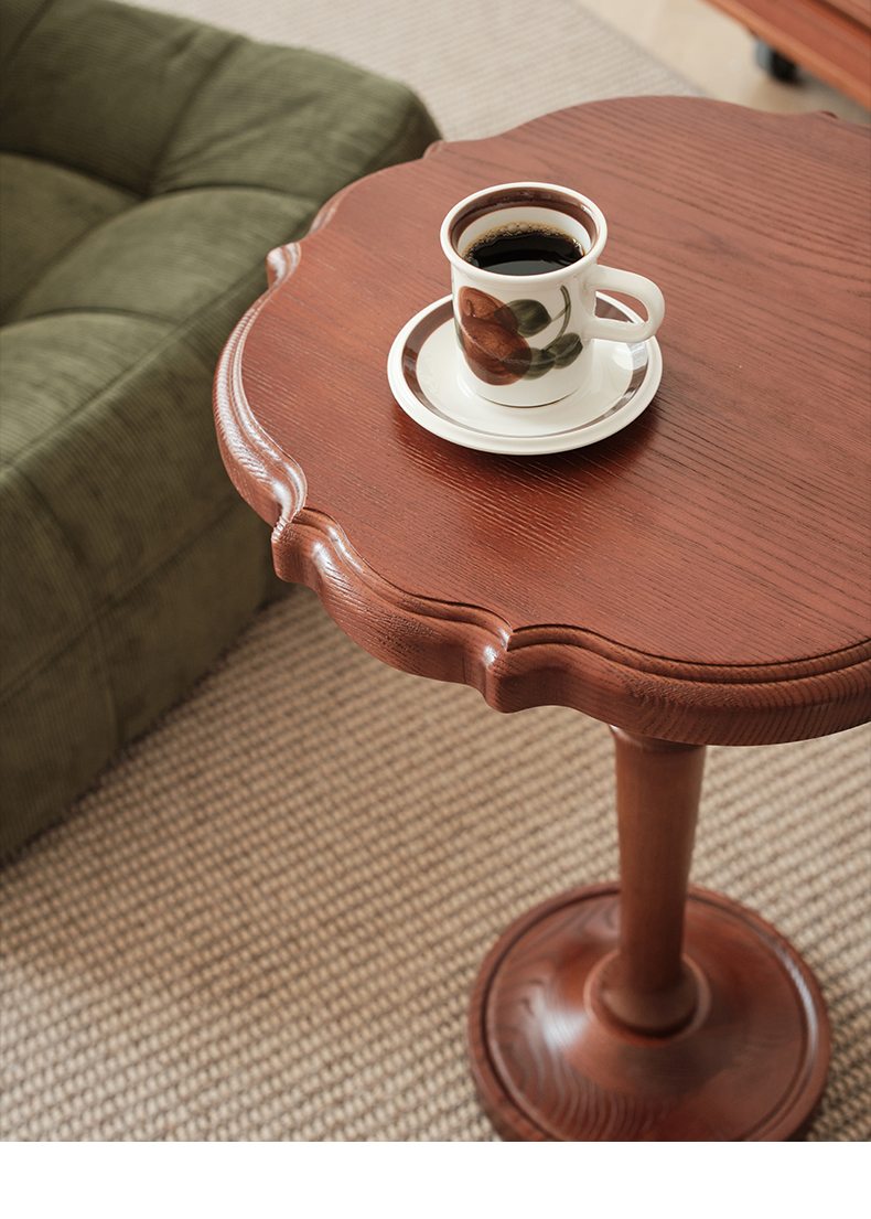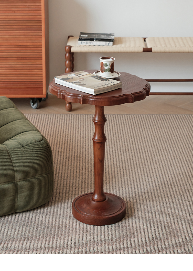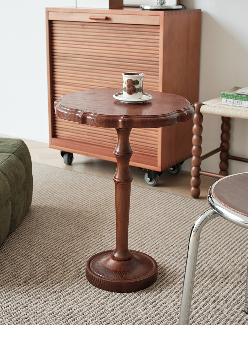 Französischer Retro-Beistelltisch, Couchtisch aus Massivholz, leichter Luxus, High Sense, Ins Popular, kleiner runder Tisch, Ecktisch für Zuhause, Sofa