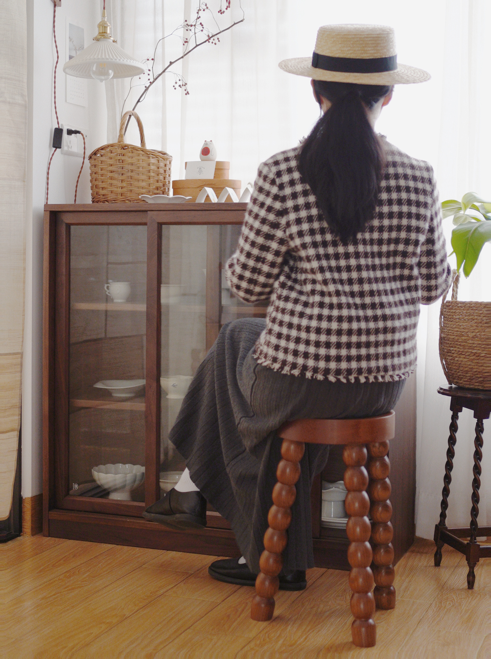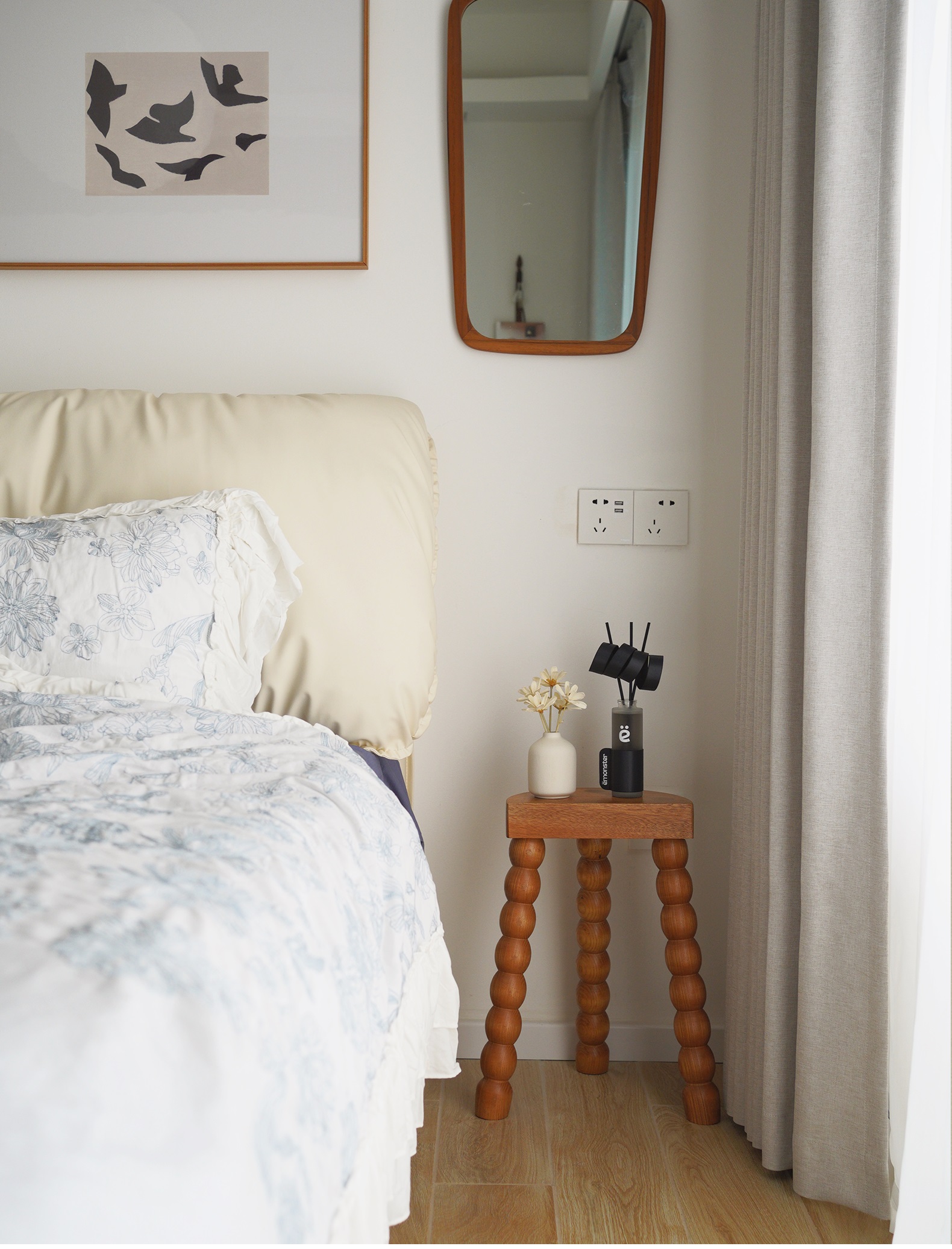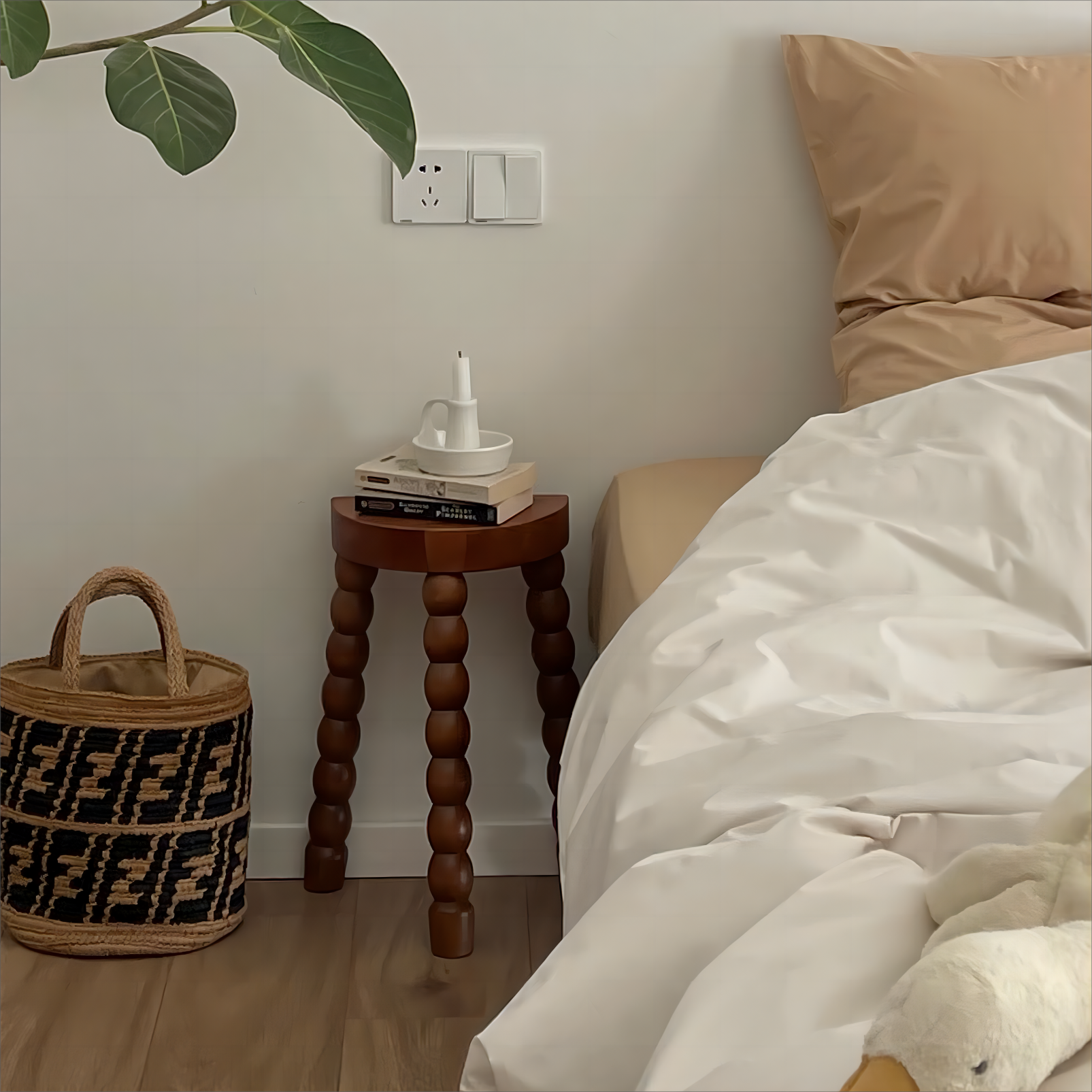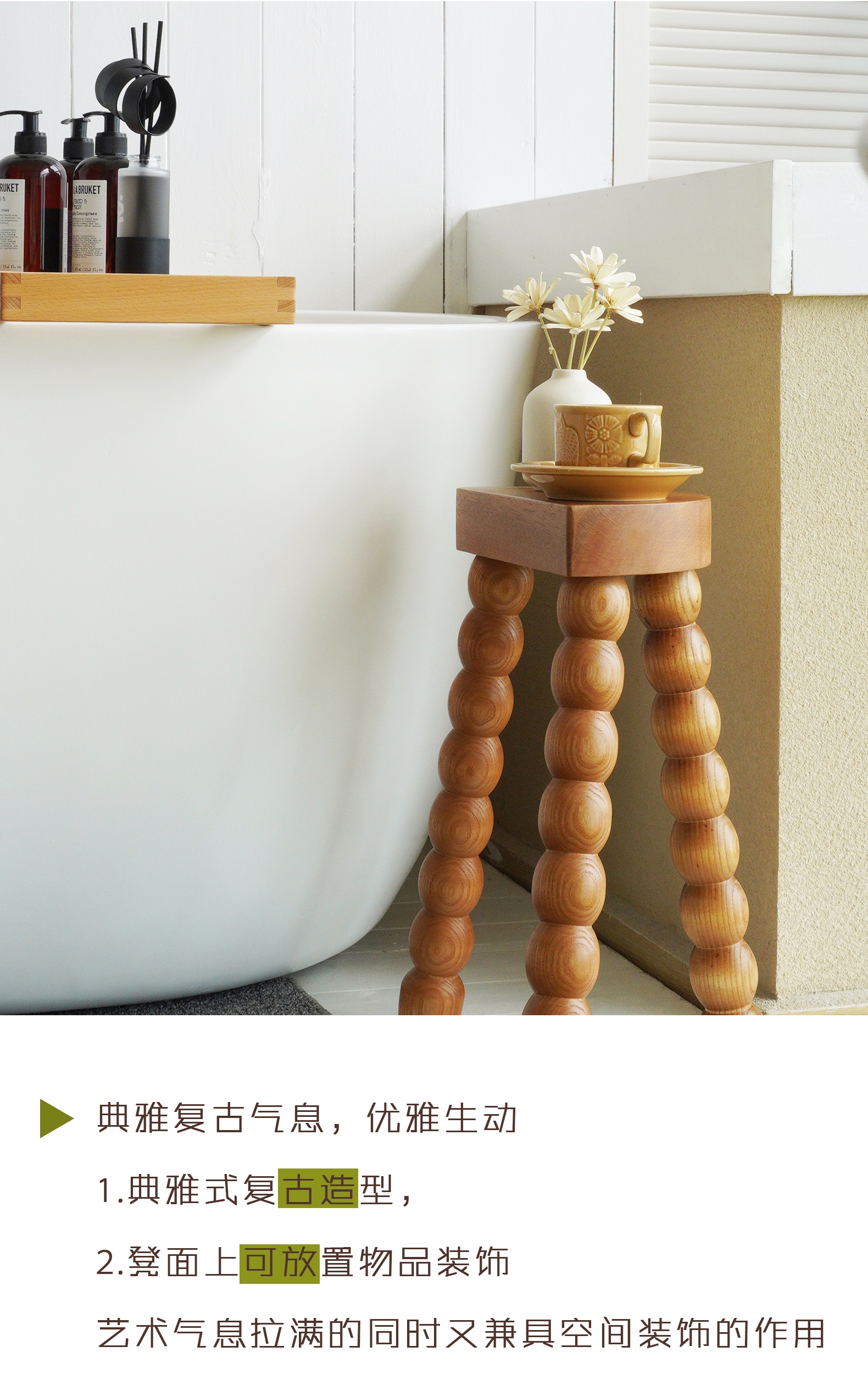 Niedriger Hocker aus französischem Retro-Massivholz, für kleine Wohnungen, Zuhause, Wohnzimmer, Schuhwechselhocker, Designer, einfacher Ankleidehocker