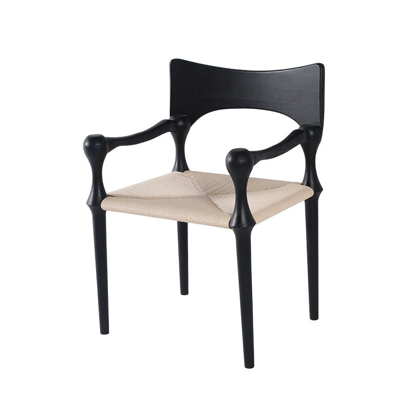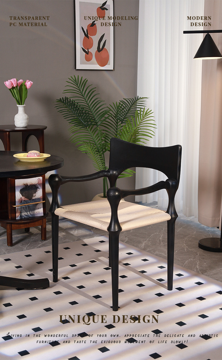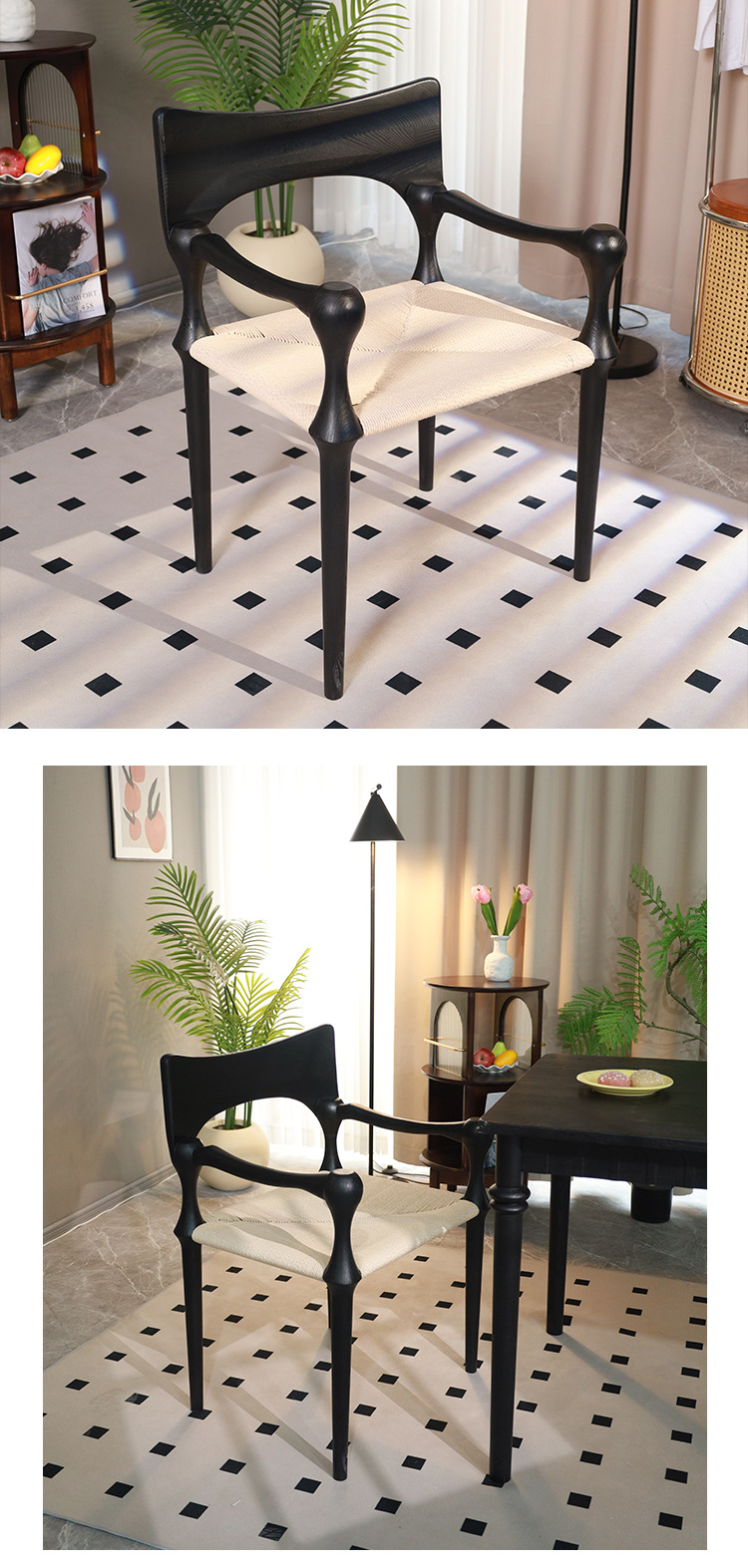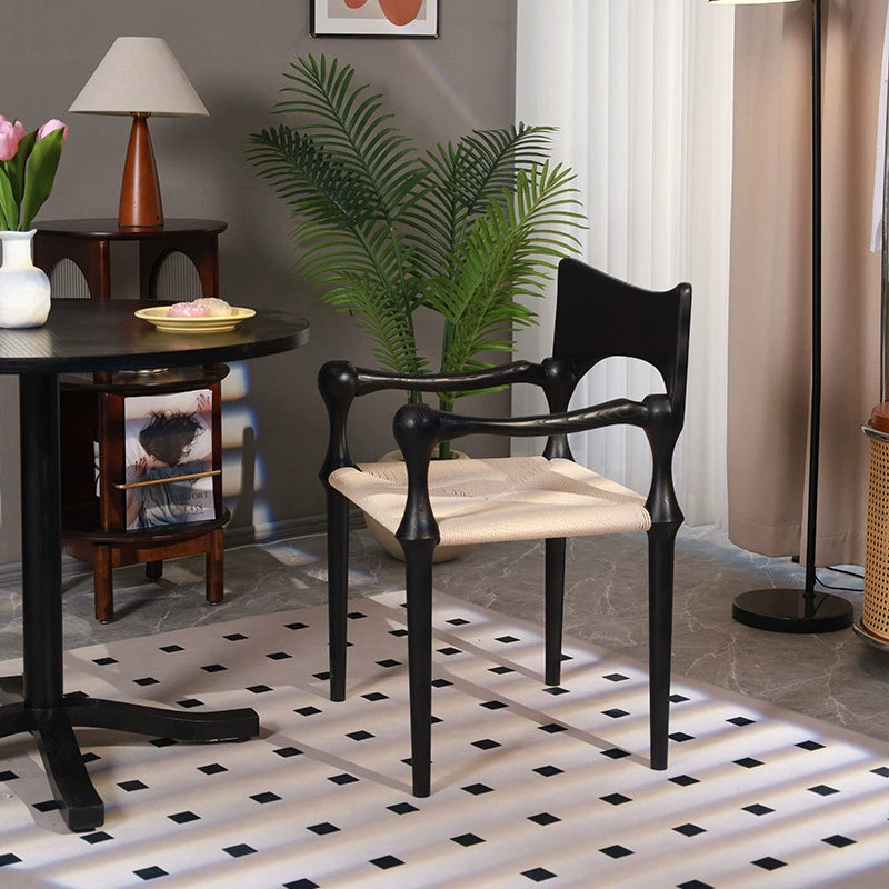Französischer gewebter Esszimmerstuhl, mittelalterlicher Designer-Künstlerstuhl, kreativer Master-Stuhl mit Armlehne