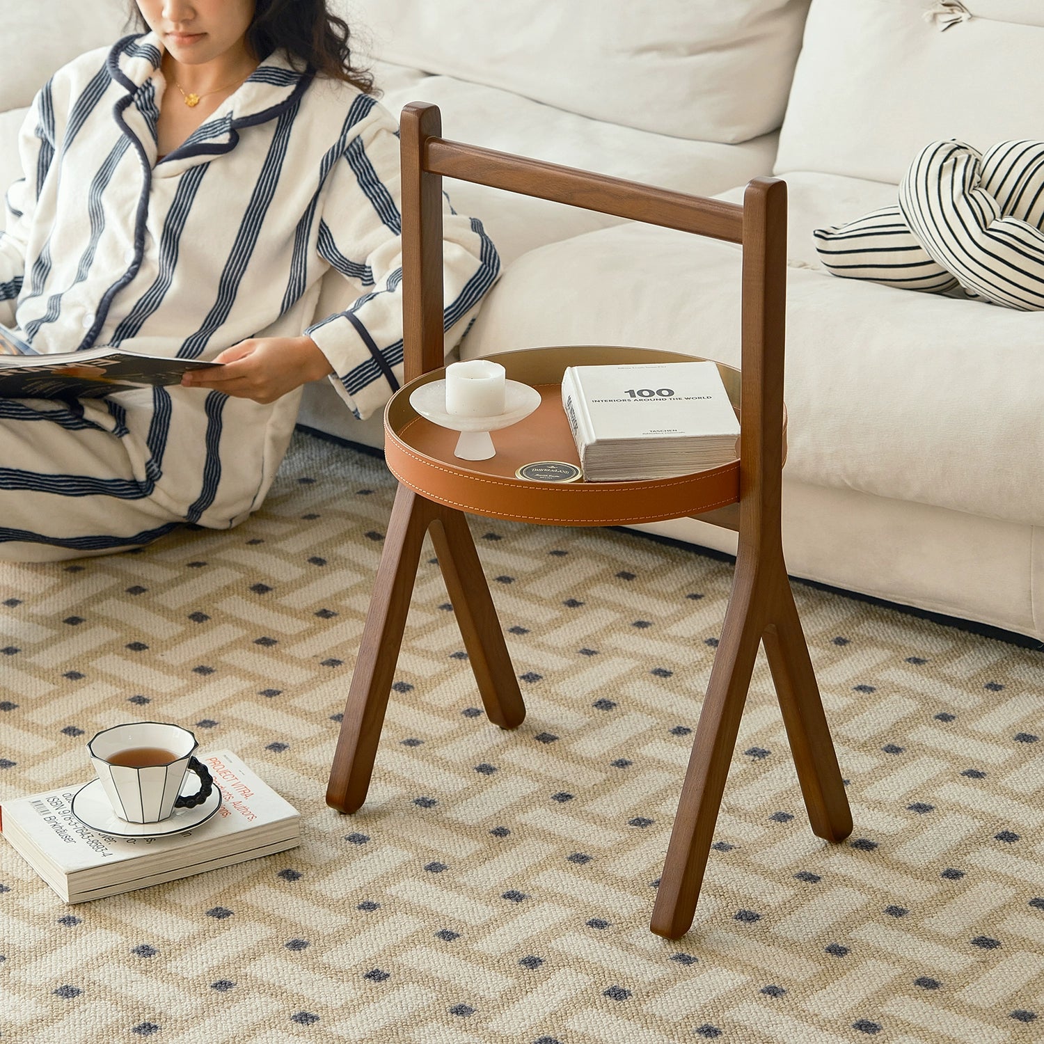 Fischgrätenkante Wenige leichte Luxus-High-End-Kleiner Couchtisch Nachttischregal Italienische kreative Ecke Wenige Sattelleder