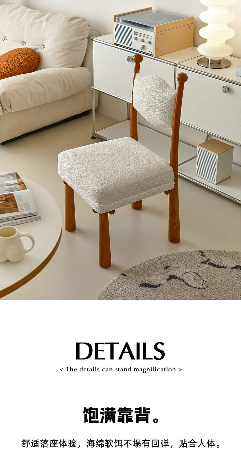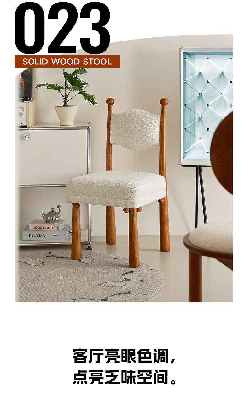 Lammwolle Massivholz Esszimmerstuhl Designer Internet Promi Stuhl mittelalterliche Rückenlehne Ankleidehocker einfacher Schreibtischstuhl
