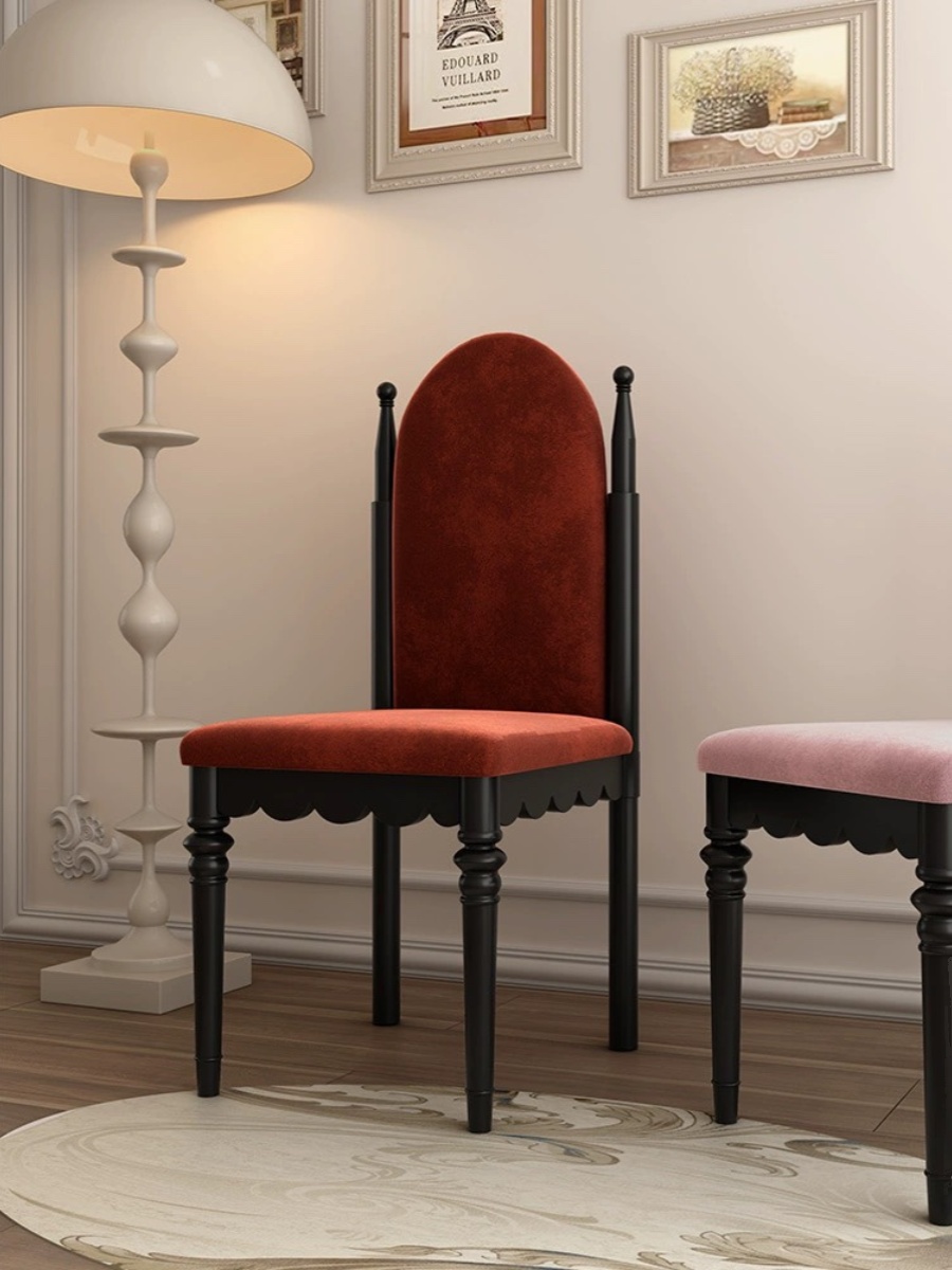 Mittelalterlicher Esszimmerstuhl, leichter Luxus-High-End-Designerstuhl aus Massivholz, französischer Retro-Café-Stuhl