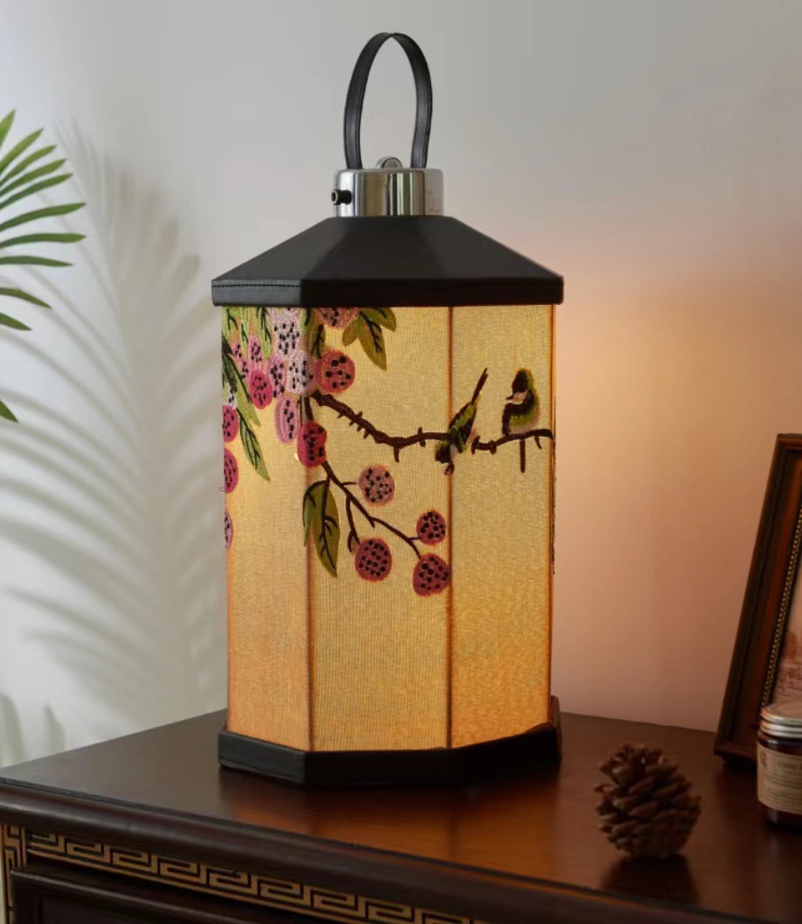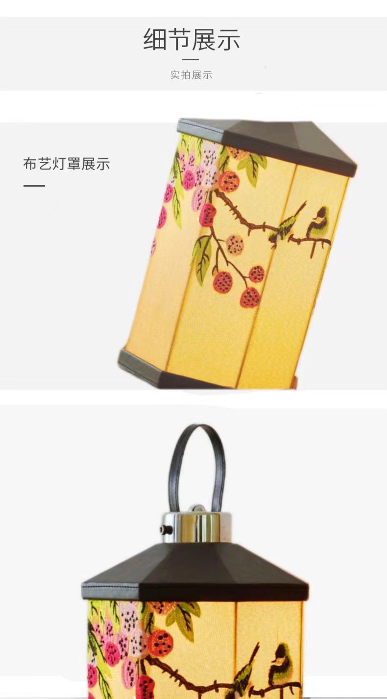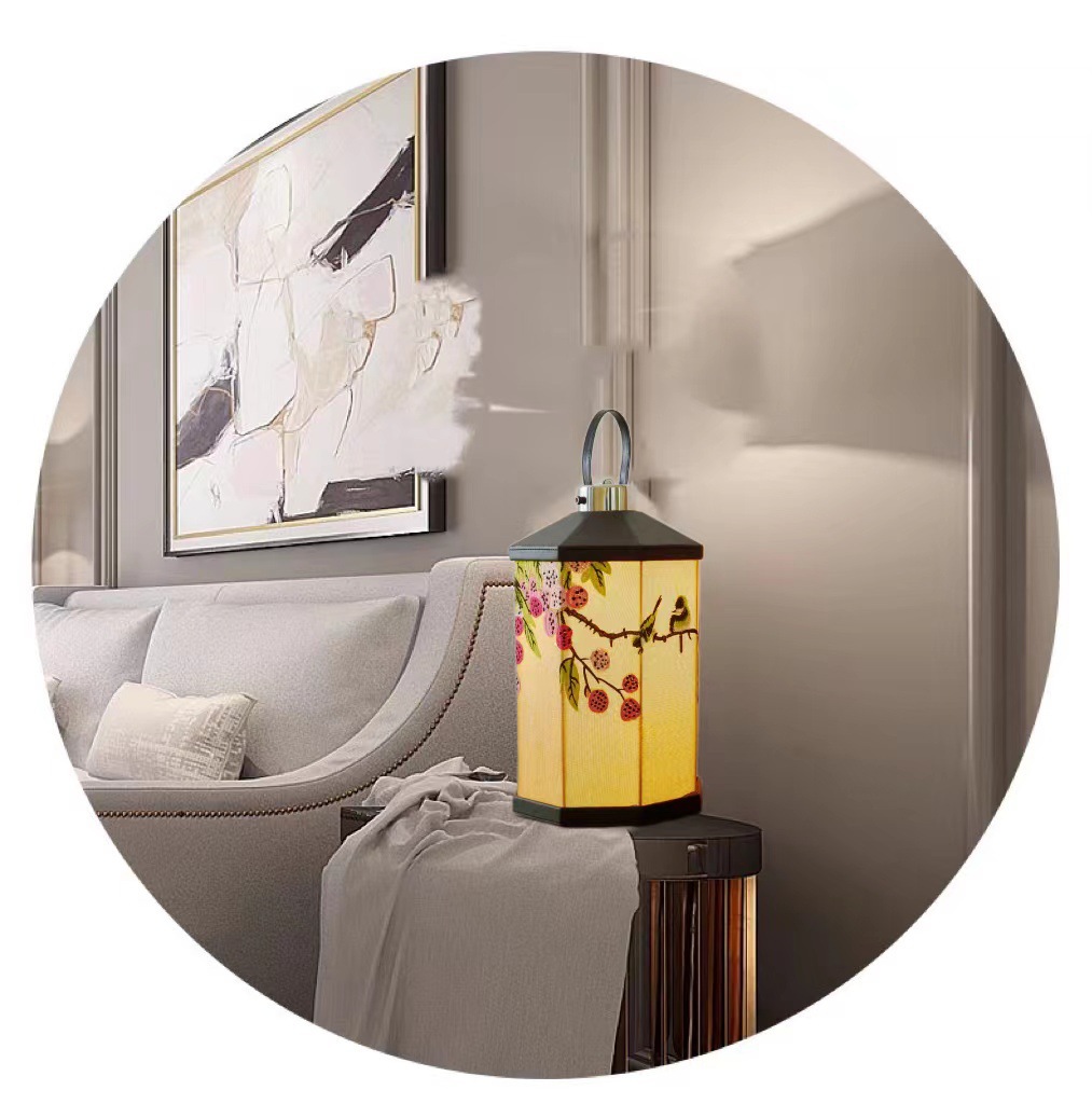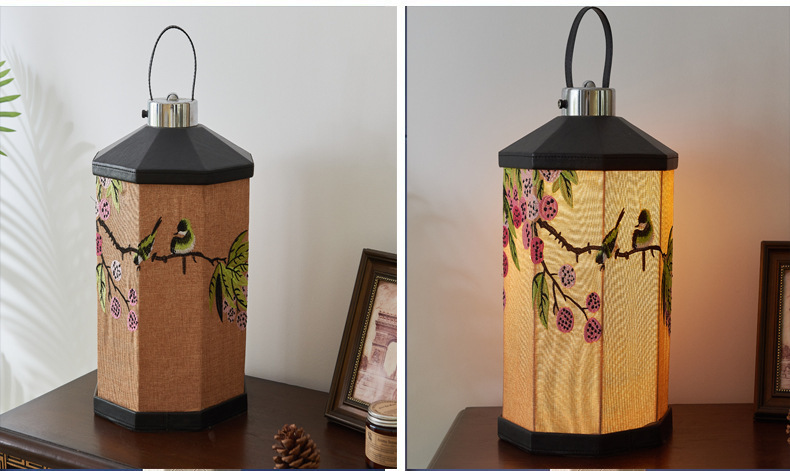 Mittelalterliche Stickerei Nachttischlampe Schlafzimmer Wohnzimmer Neue chinesische Atmosphäre Licht Kreative tragbare tragbare Lampe Aufladen