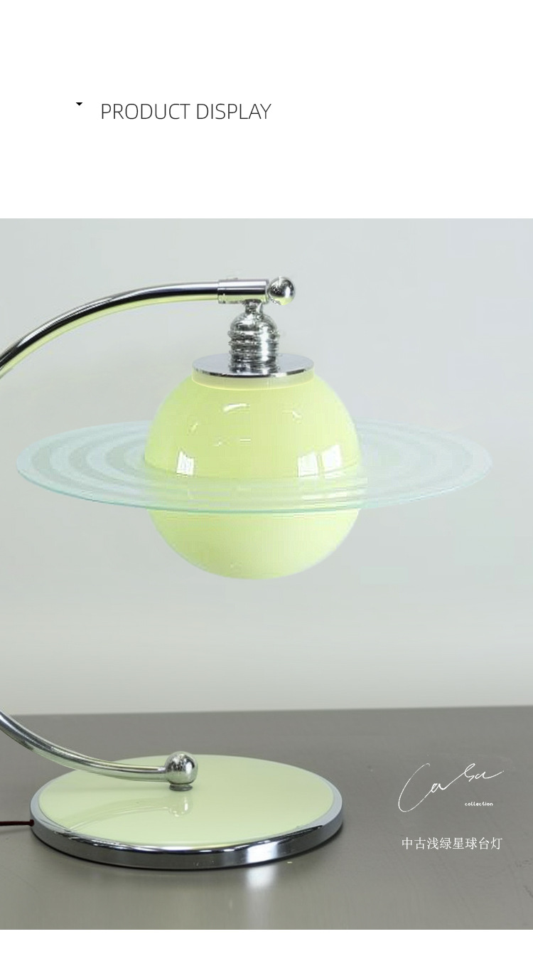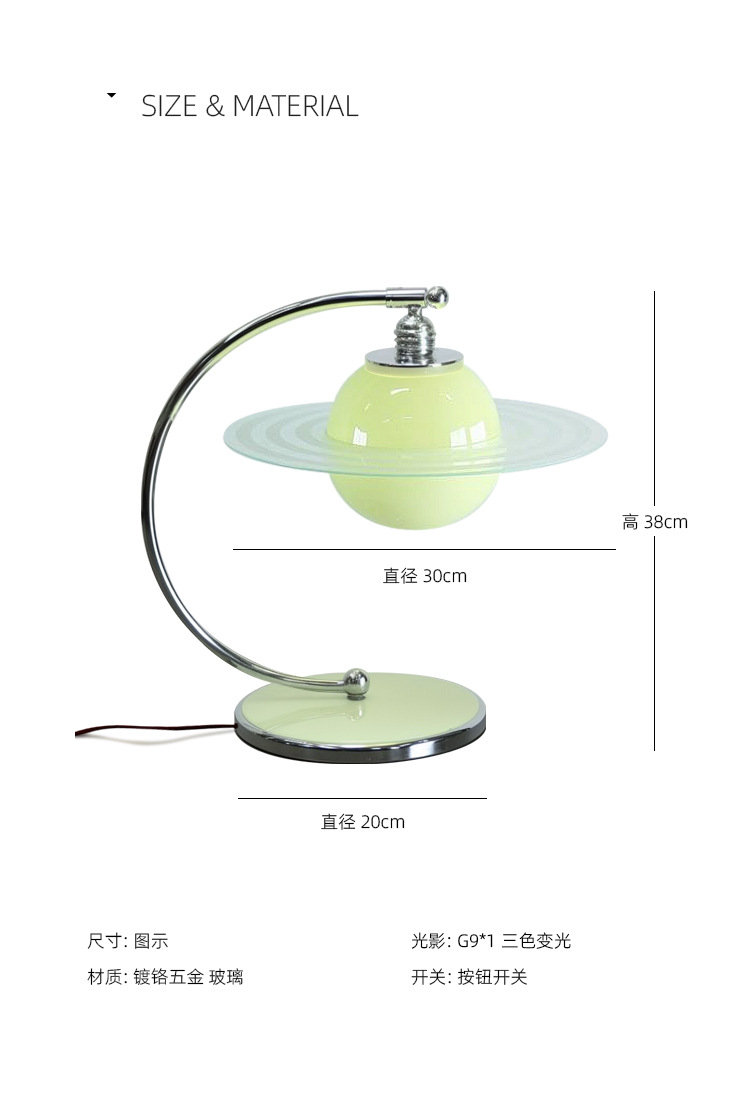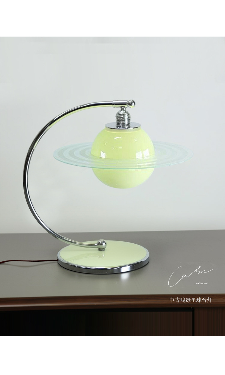 Mittelalterliche Lichtgrüne Planeten-Tischlampe Nordische Dänemark-Schlafzimmer-Nachttischlampe Kreative Retro-dekorative Umgebungslampe