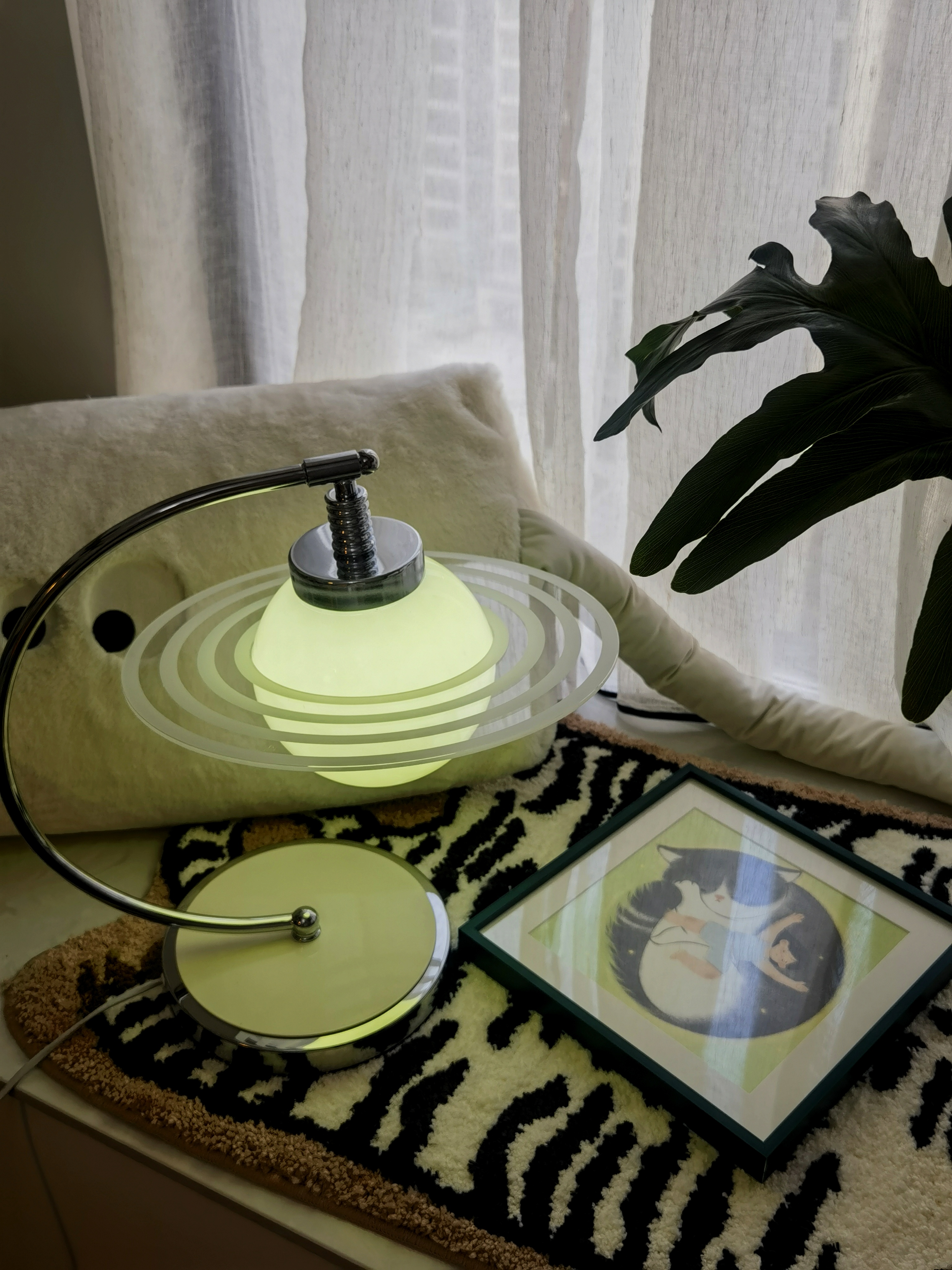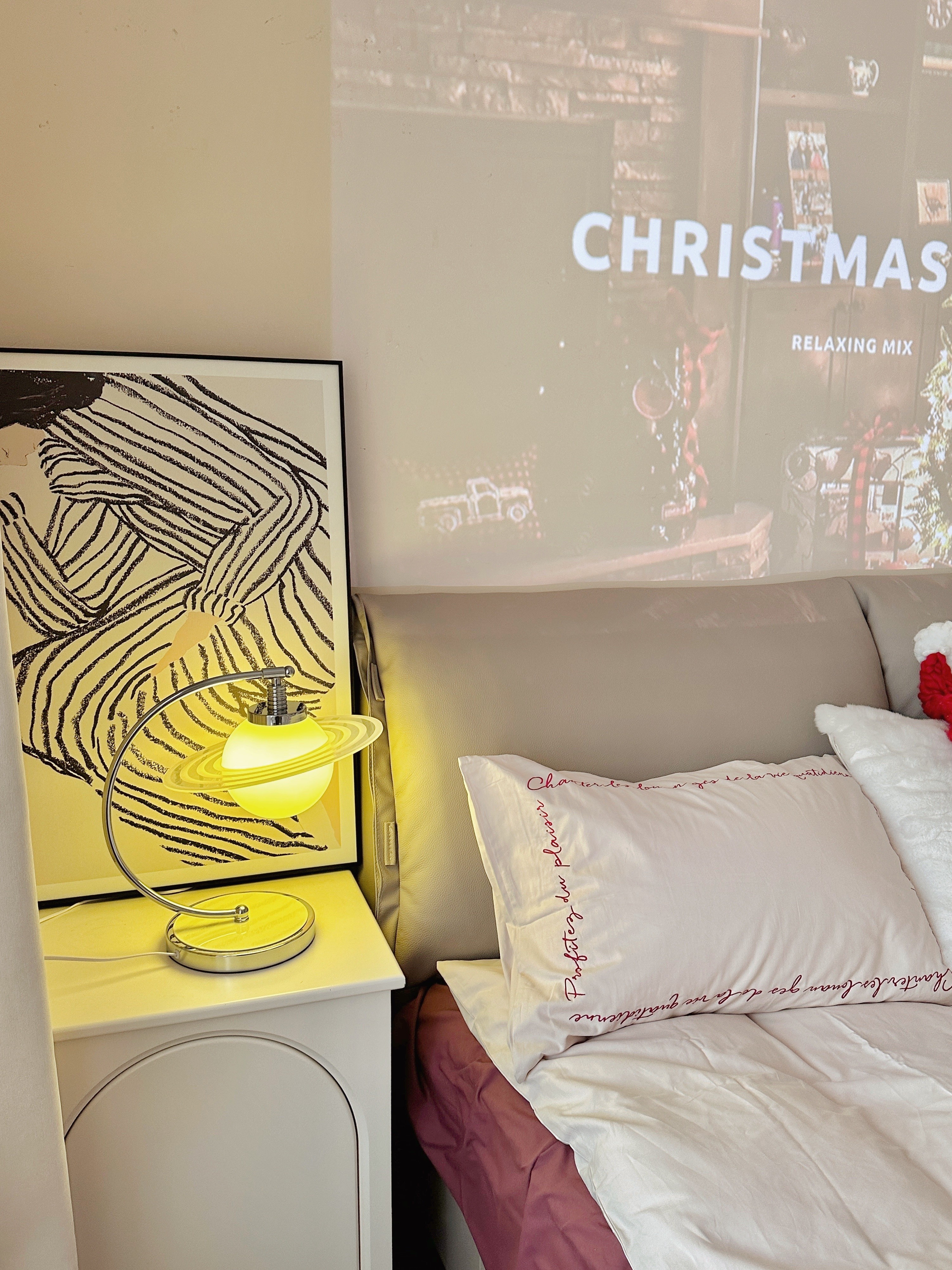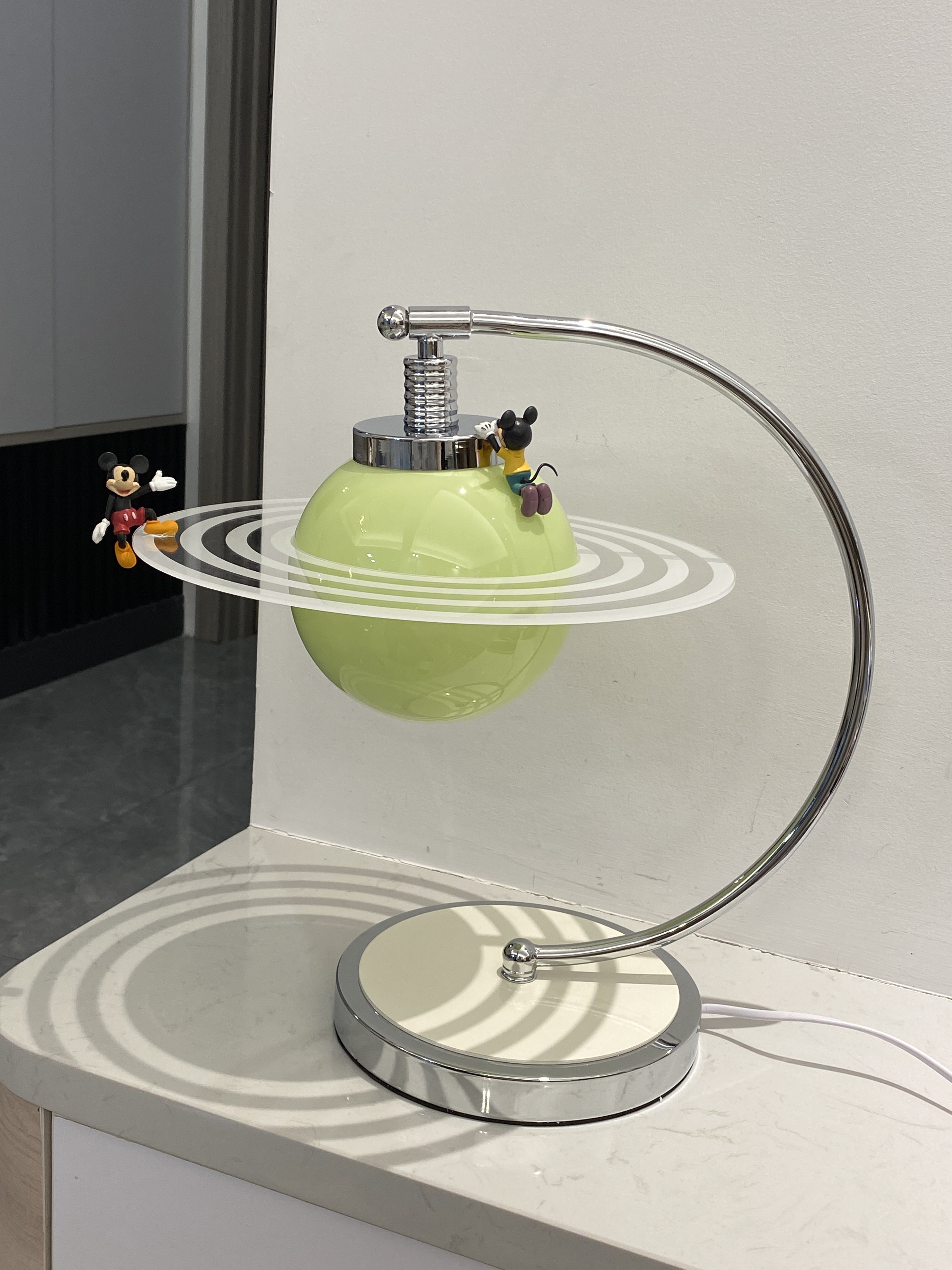 Mittelalterliche Lichtgrüne Planeten-Tischlampe Nordische Dänemark-Schlafzimmer-Nachttischlampe Kreative Retro-dekorative Umgebungslampe