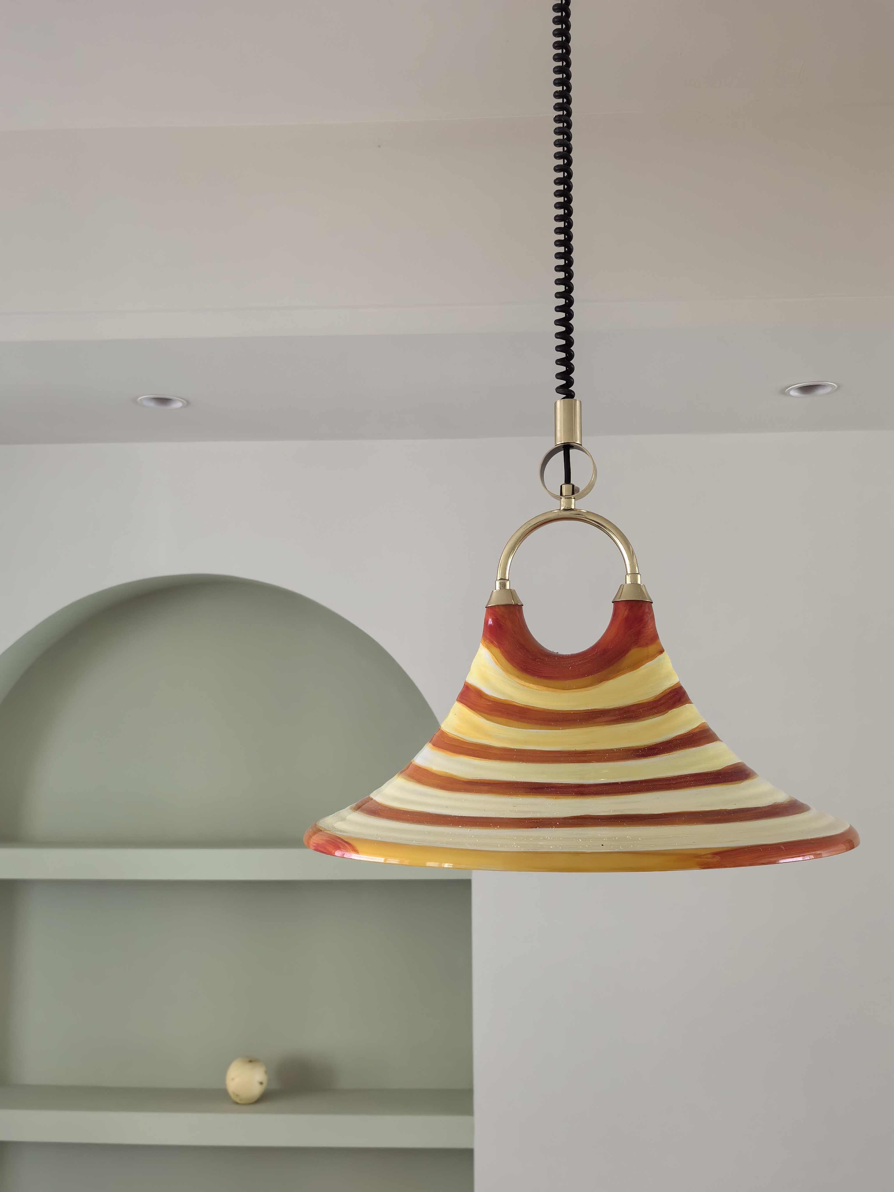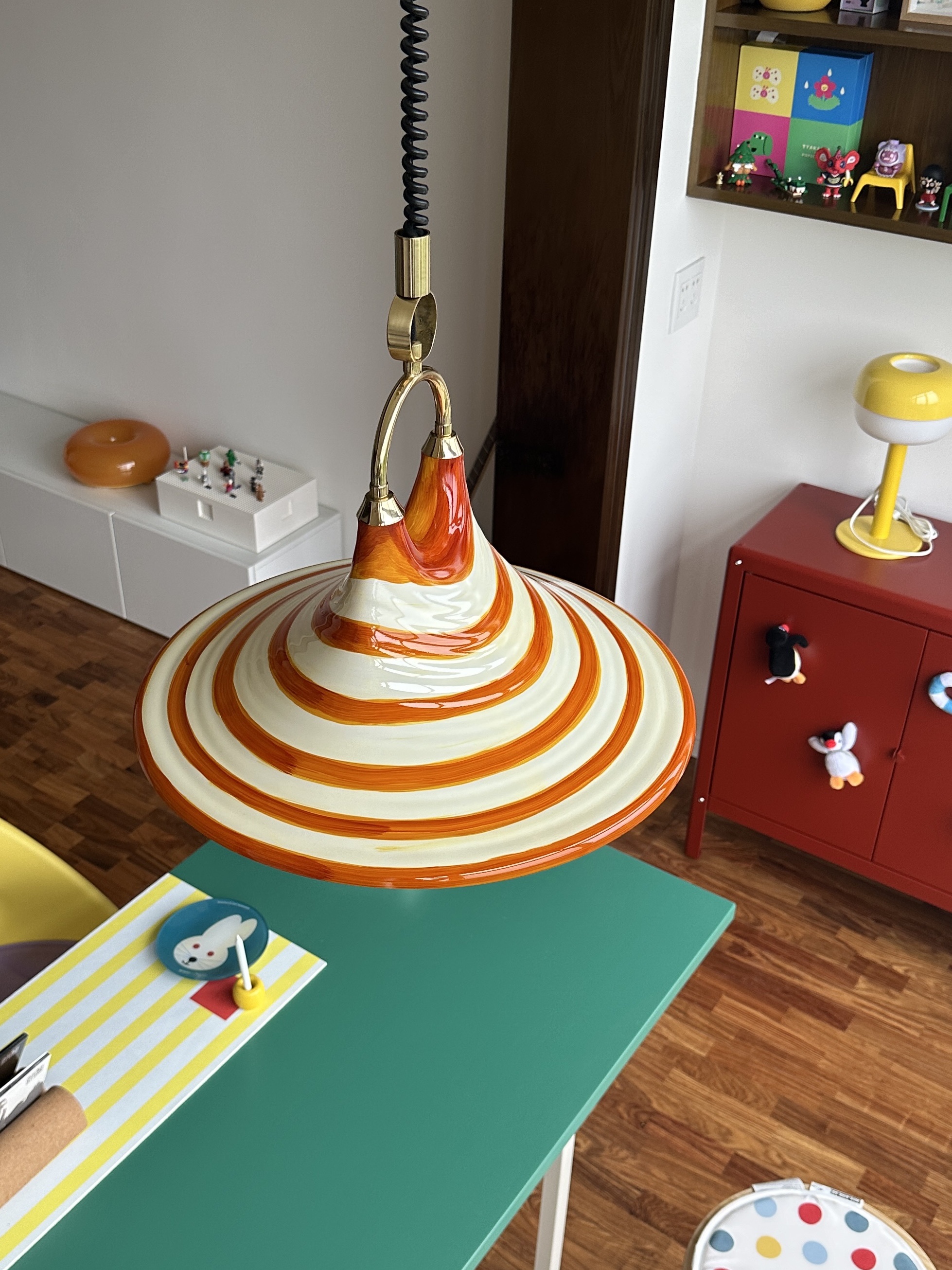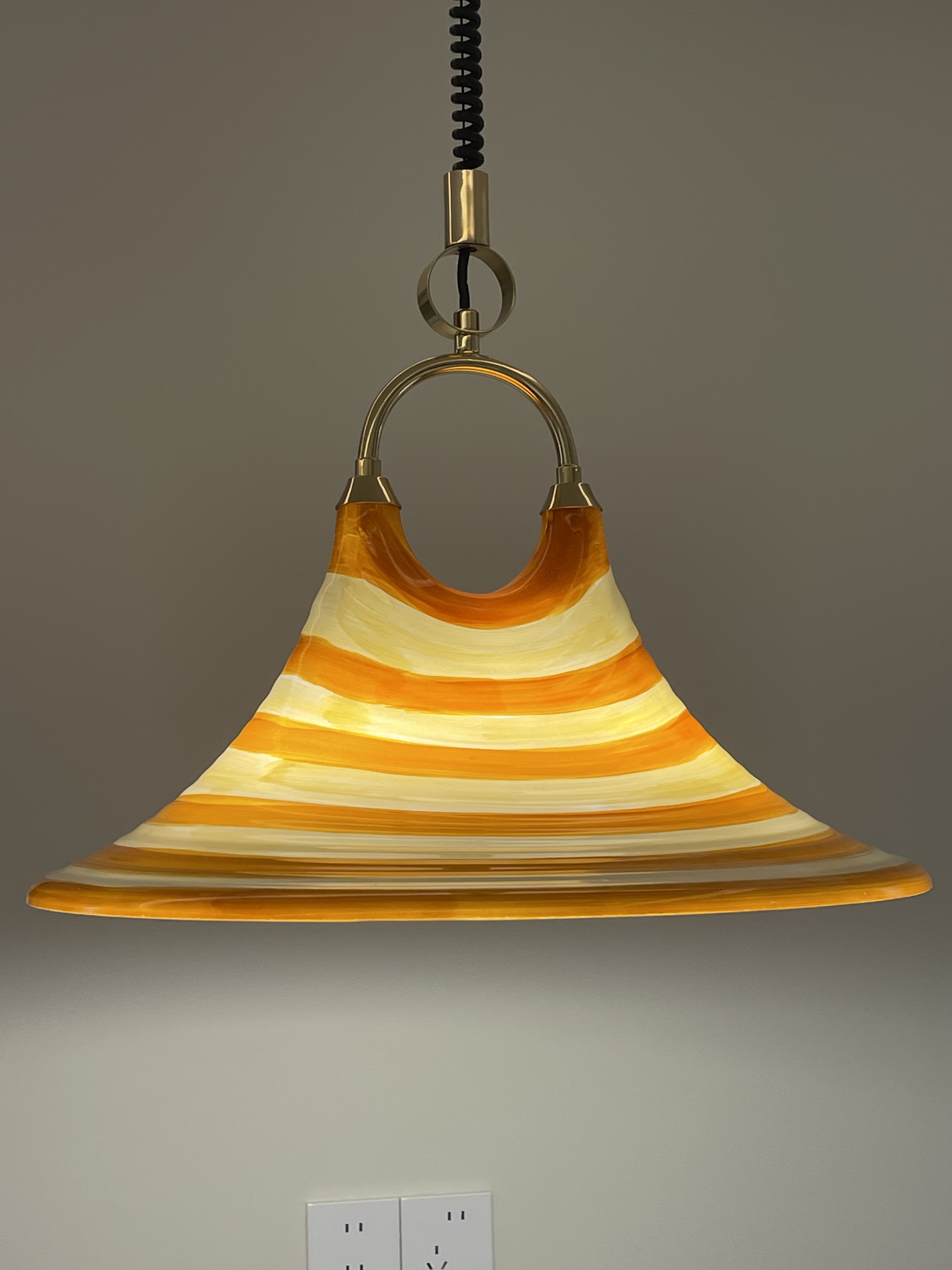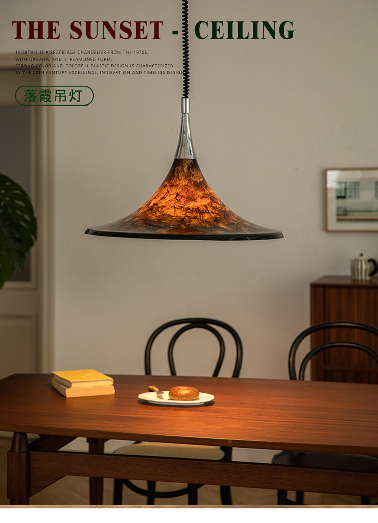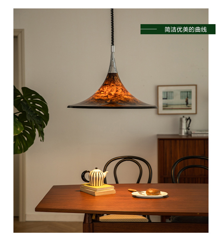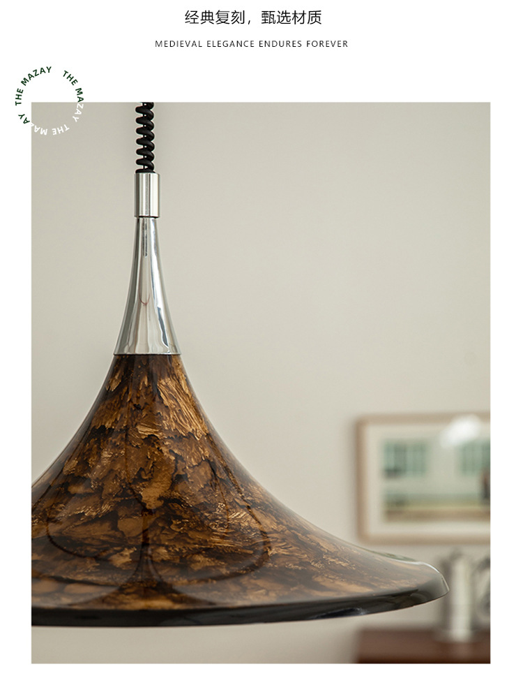 Mittelalterlicher bemalter Kronleuchter für Esszimmer, Wohnzimmer, Nachttischlampe, Hornleuchte, einziehbarer Kronleuchter mit gestreifter Kunst, Strohhut