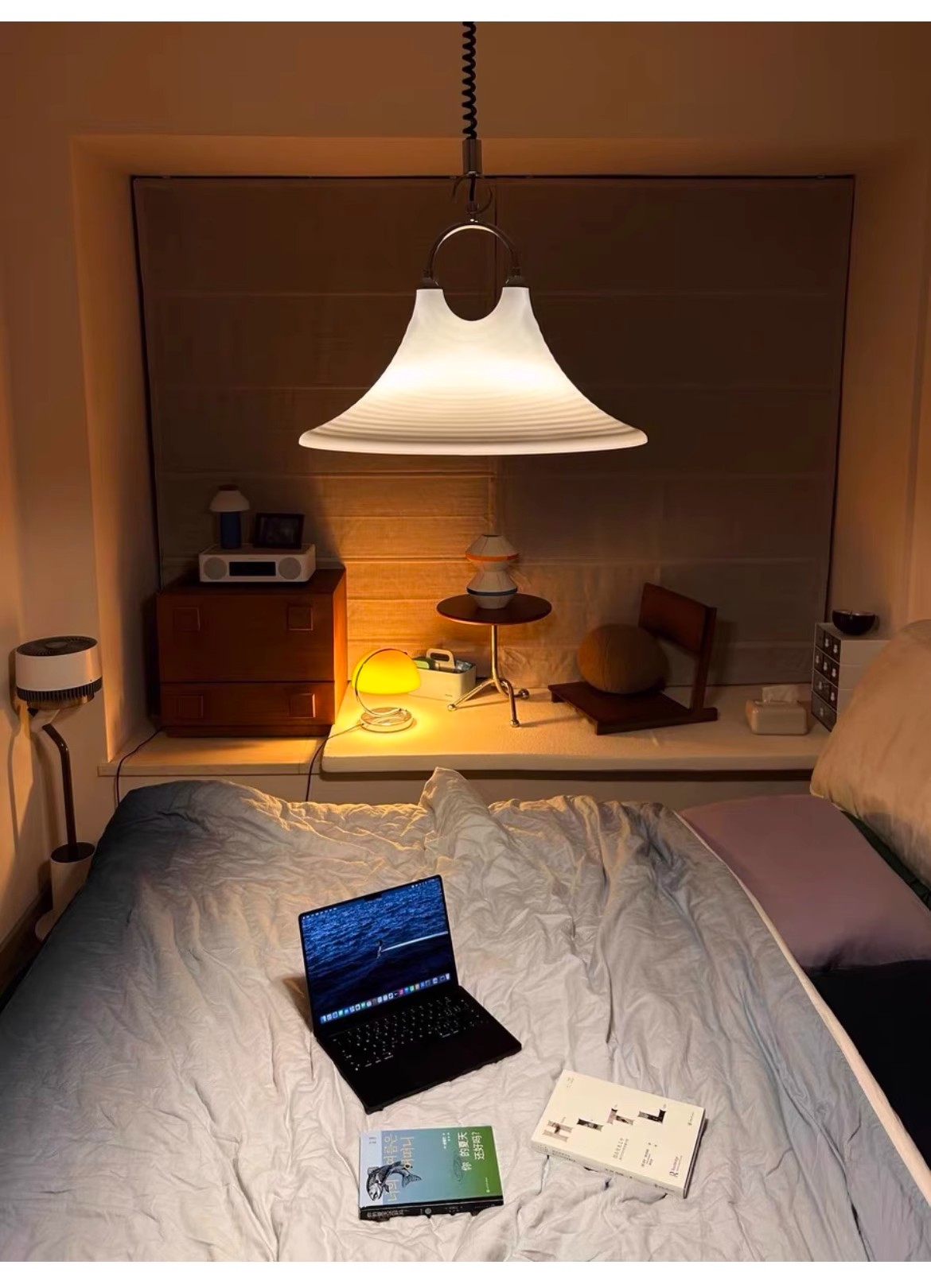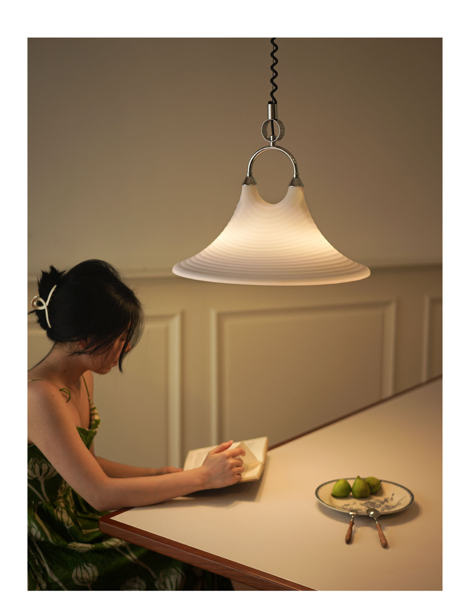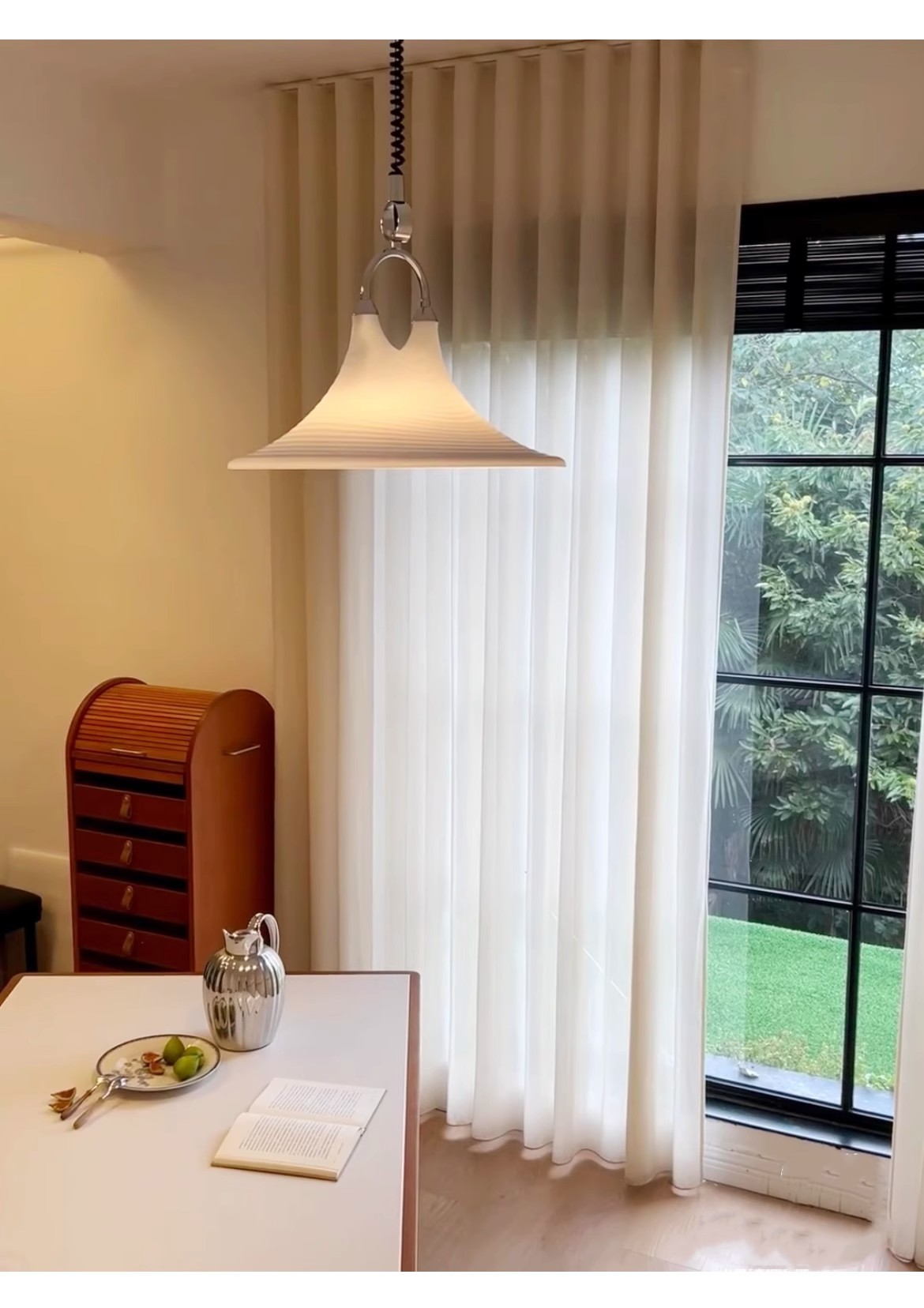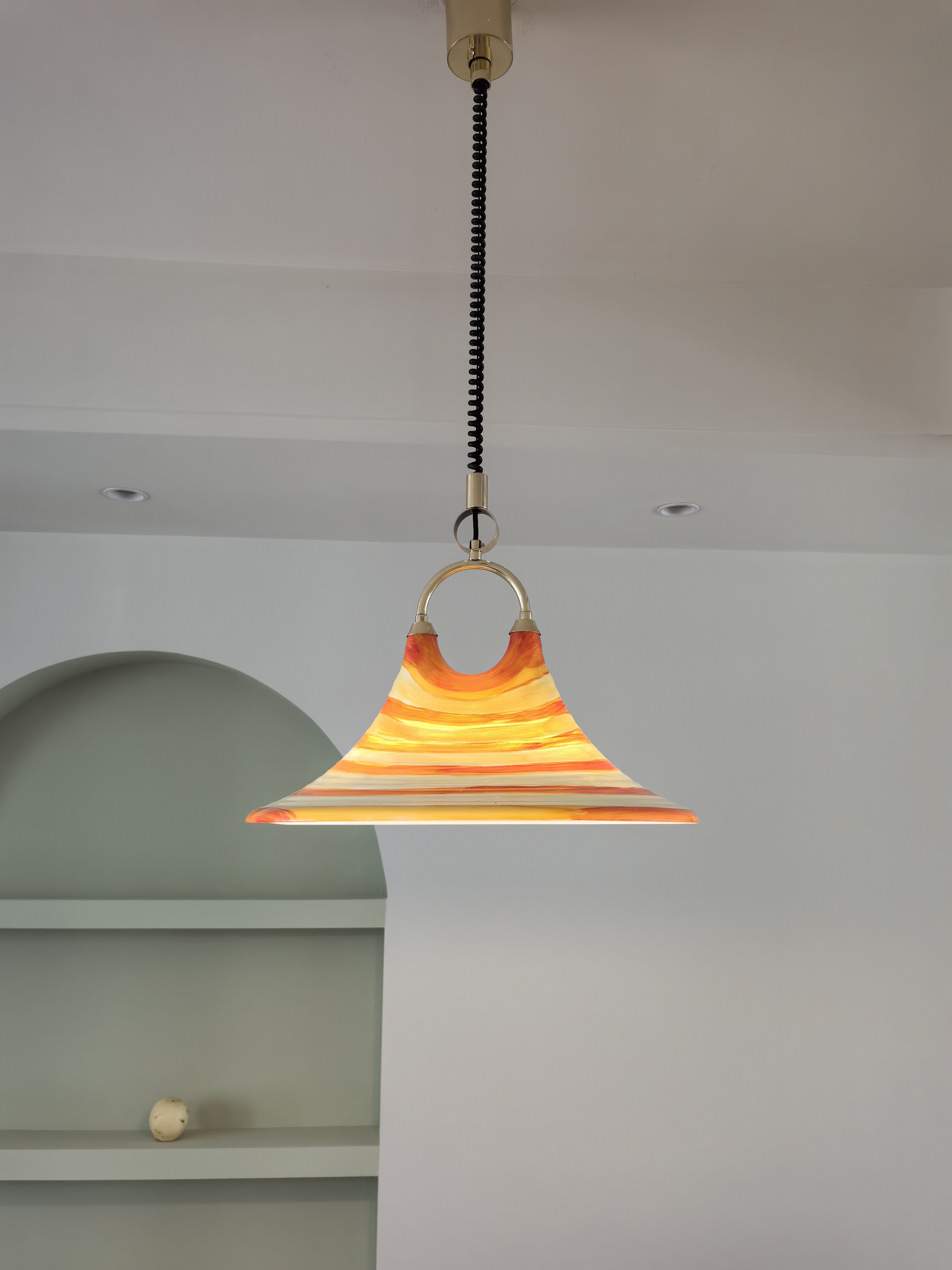 Mittelalterlicher bemalter Kronleuchter für Esszimmer, Wohnzimmer, Nachttischlampe, Hornleuchte, einziehbarer Kronleuchter mit gestreifter Kunst, Strohhut