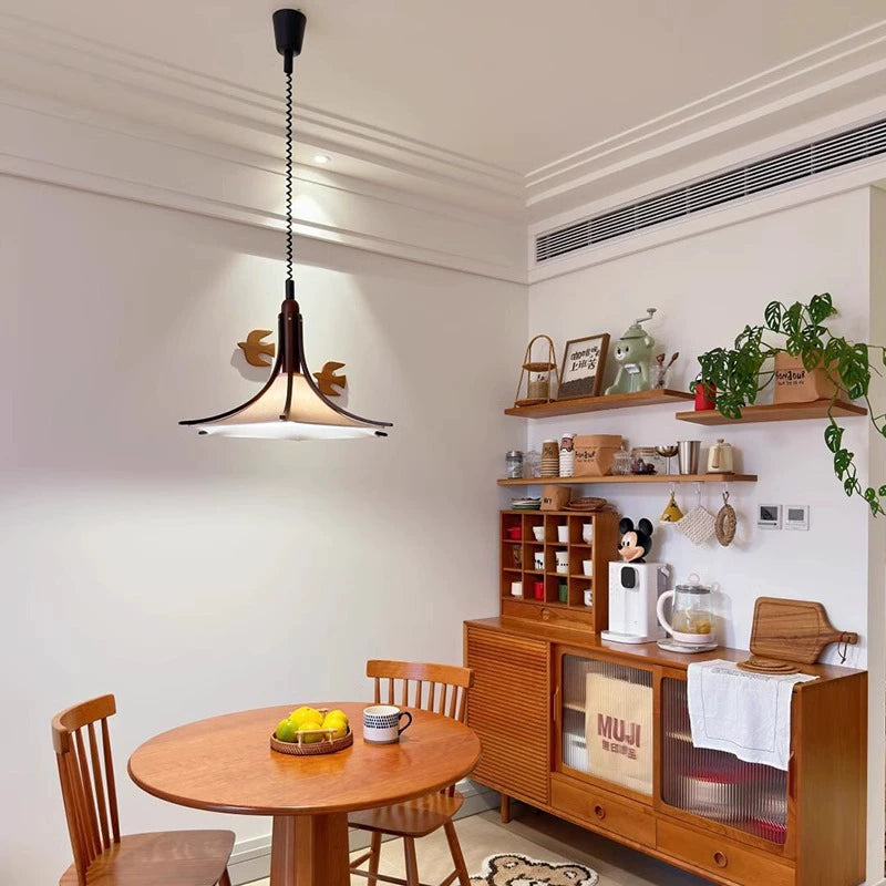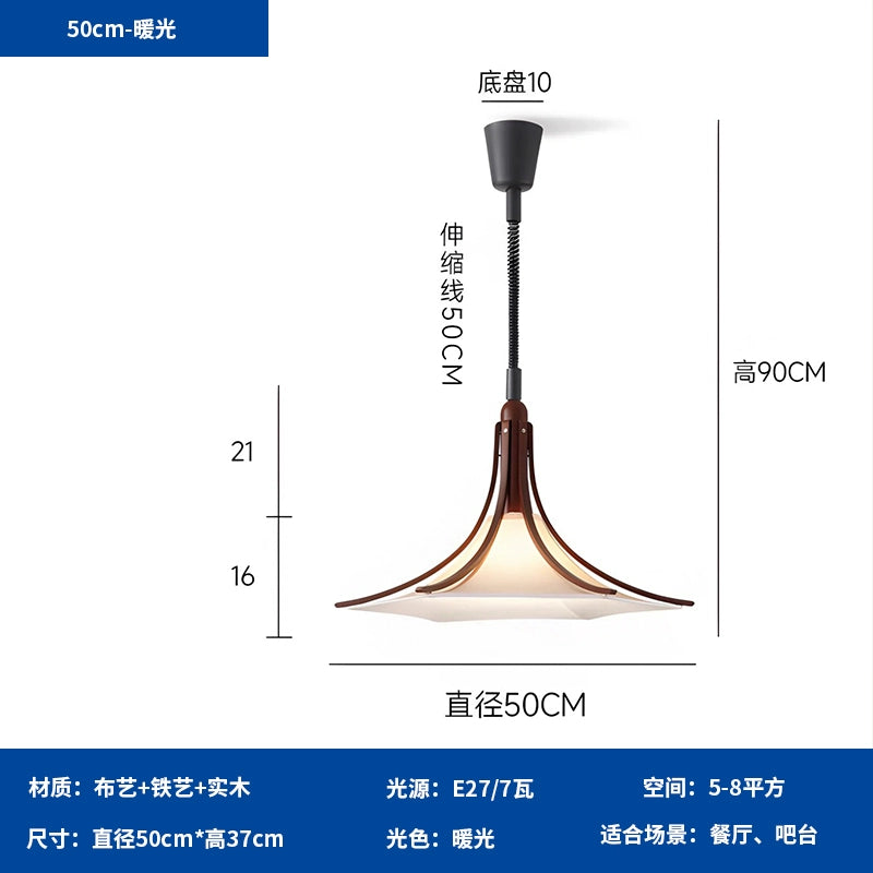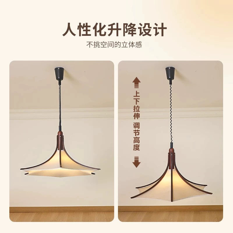 Mittelalterlicher Restaurant-Kronleuchter Wabi Sandy Wind Massivholz Stoff Bar Licht Kreatives fortschrittliches Design Atmosphäre Licht