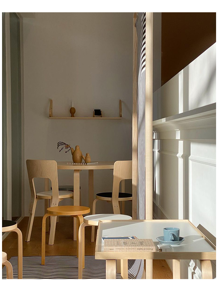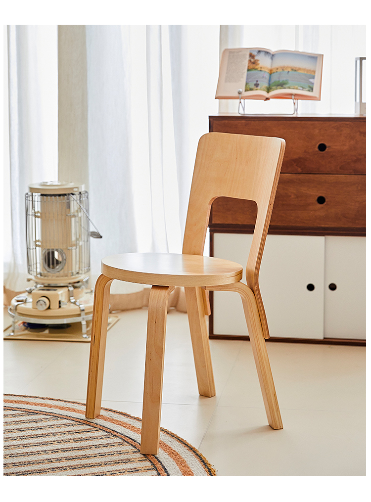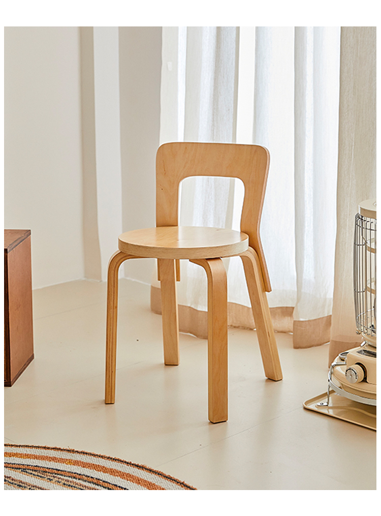 Mittelalterlicher Esszimmerstuhl aus Massivholz von Artek, einfacher kleiner Apartmentstuhl, klassischer Hocker mit Rückenlehne