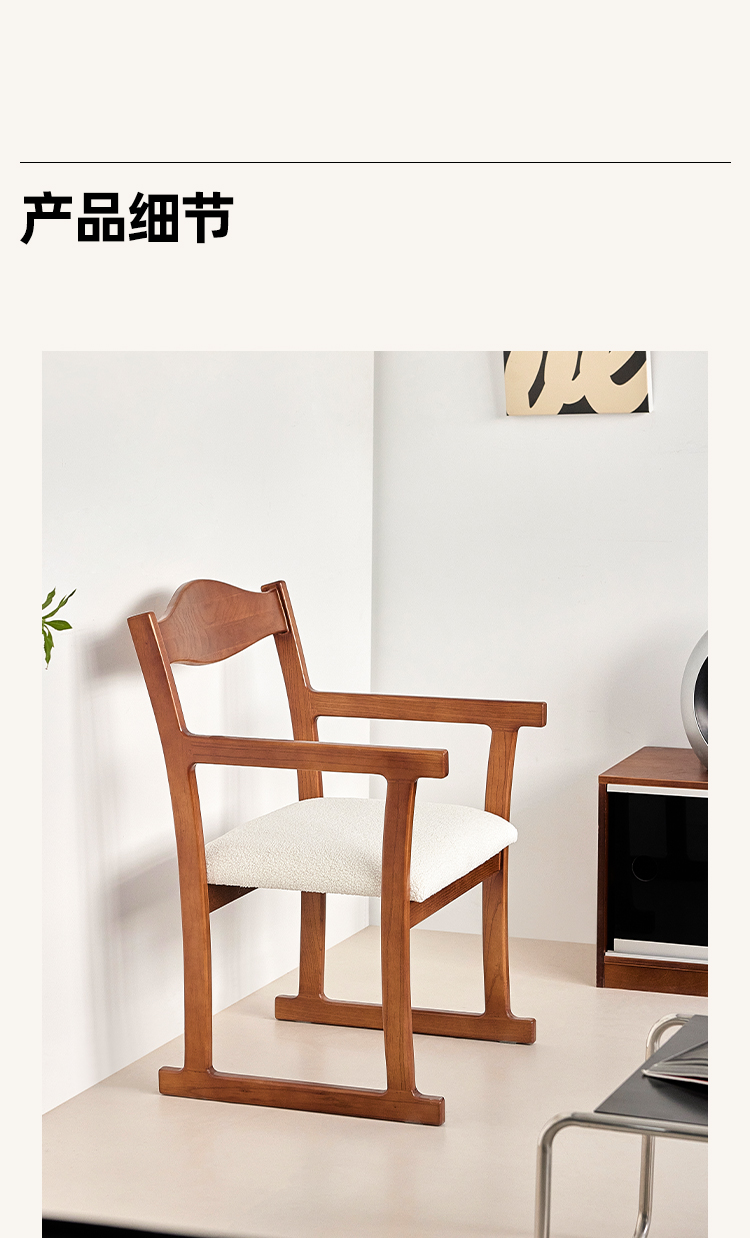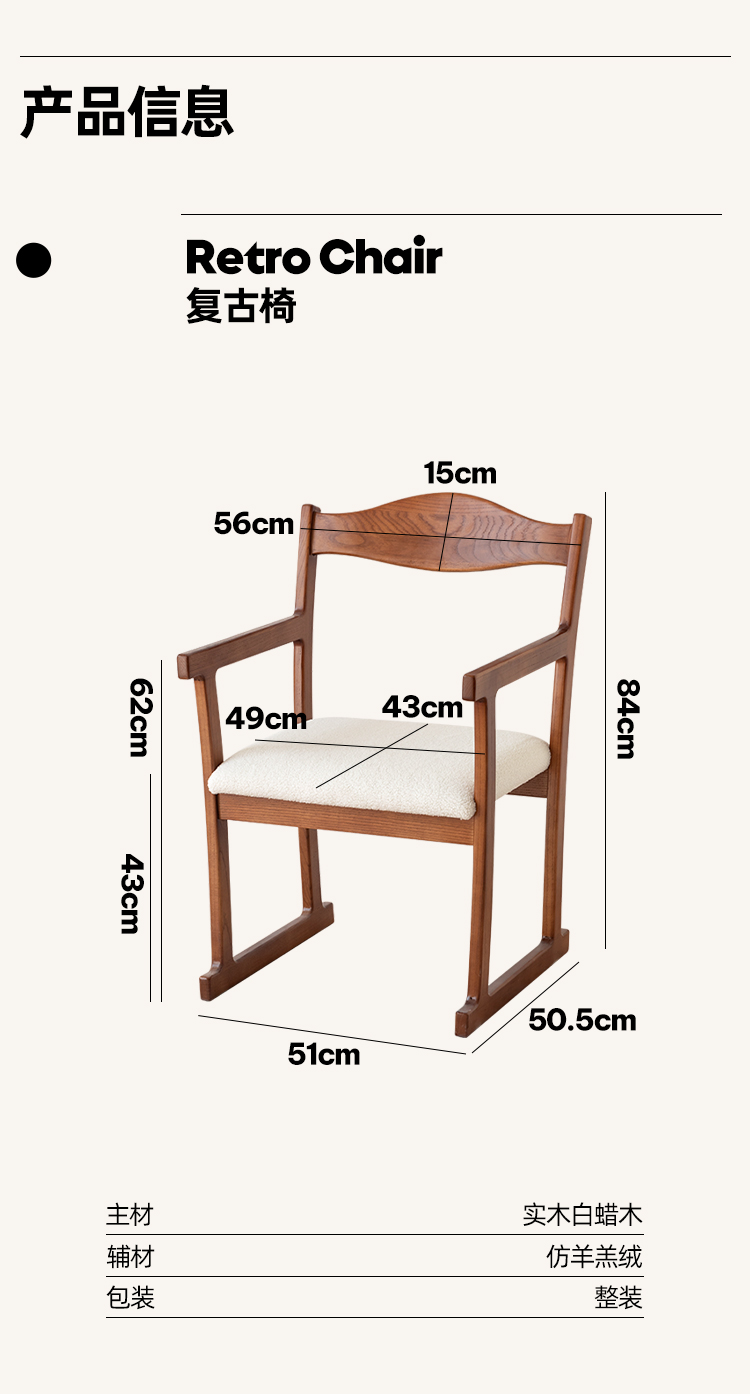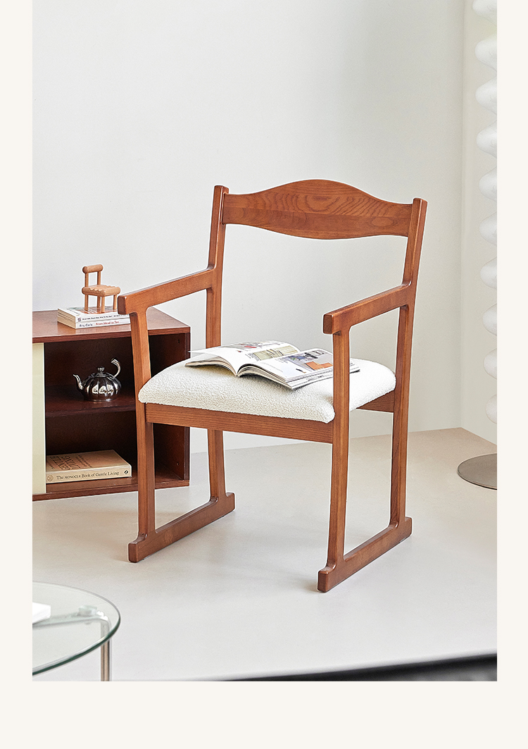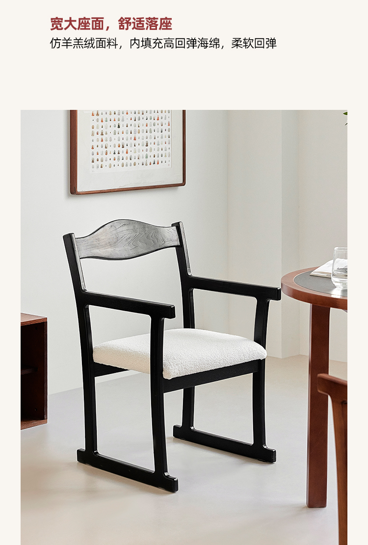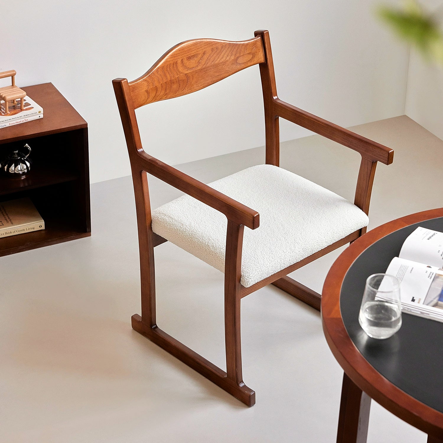 Mittelalterlicher Esszimmerstuhl aus massivem Holz, Rückenlehne, Armlehne, Stuhl, Haushalt, japanischer einfacher weicher Beutel, Buch, Schreibtisch und Stuhl, Designer