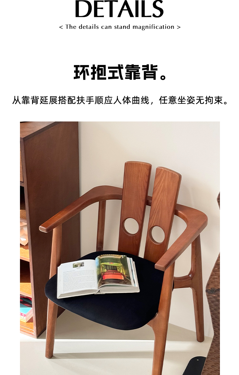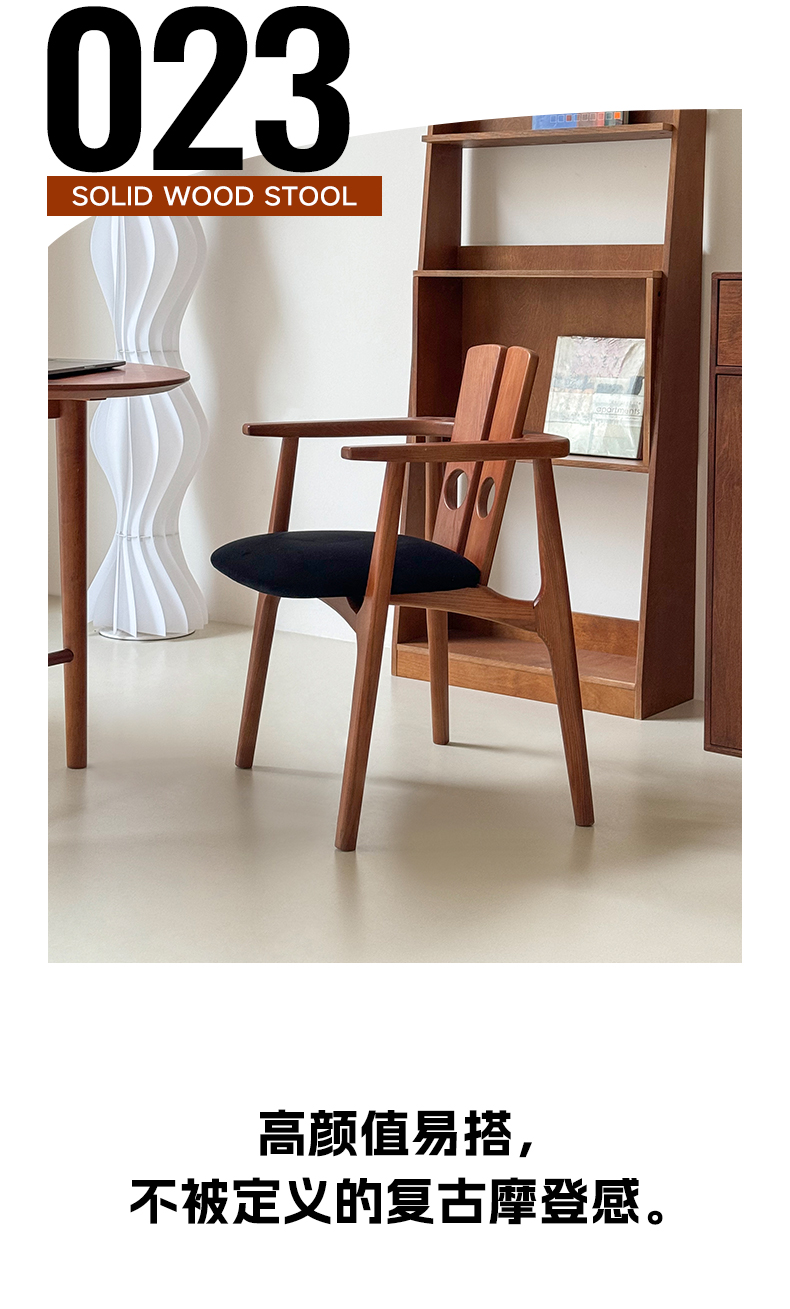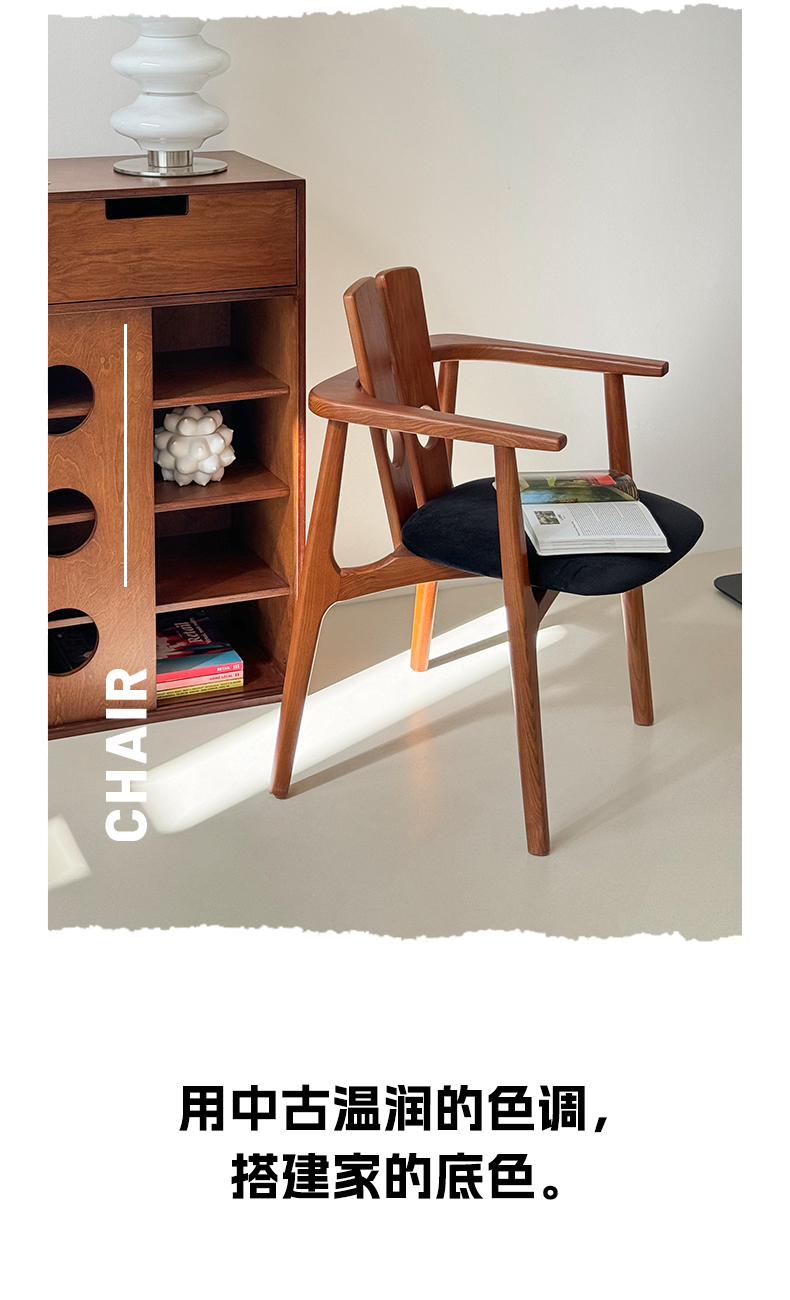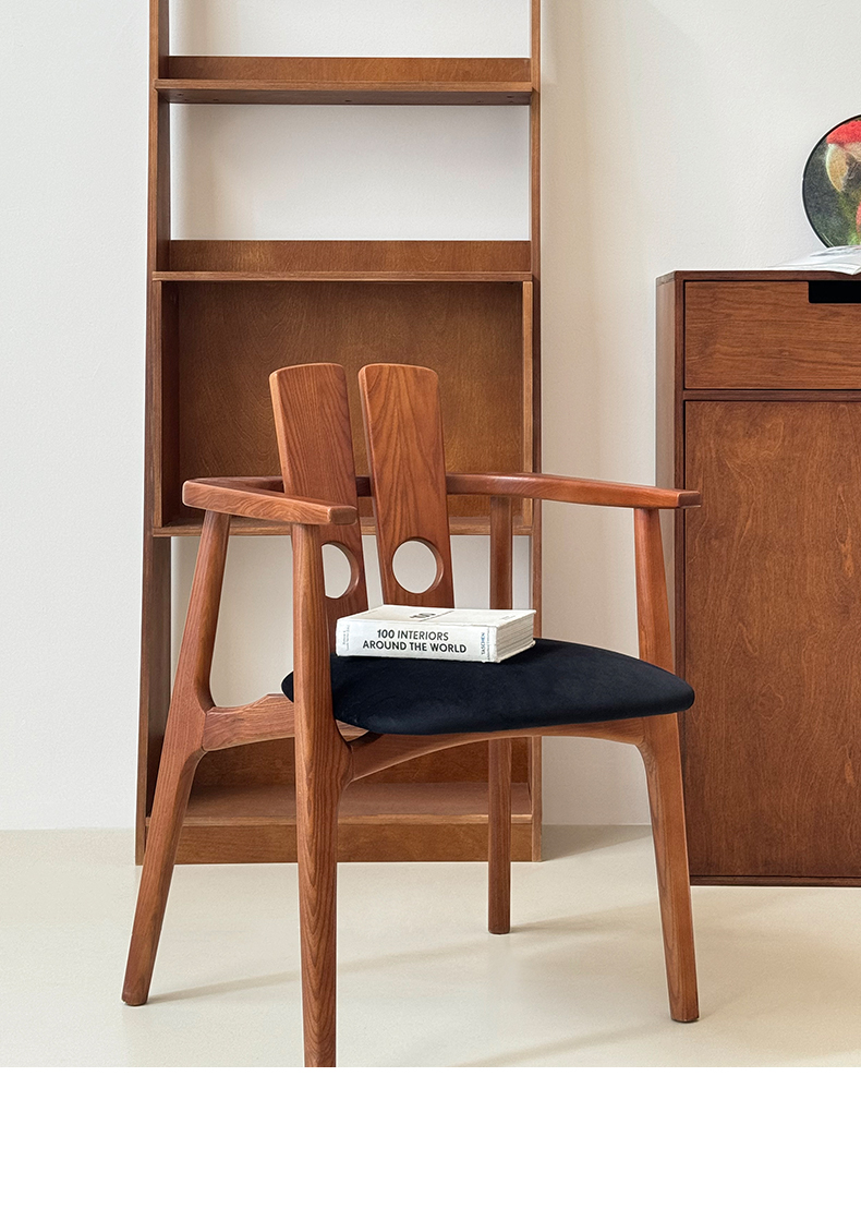 Mittelalterlicher Wabi Sabi Esszimmerstuhl aus Massivholz, japanische Rückenlehne, Designerstuhl, Haushaltsarmlehne, Buchschreibtischstuhl, weiche Tasche