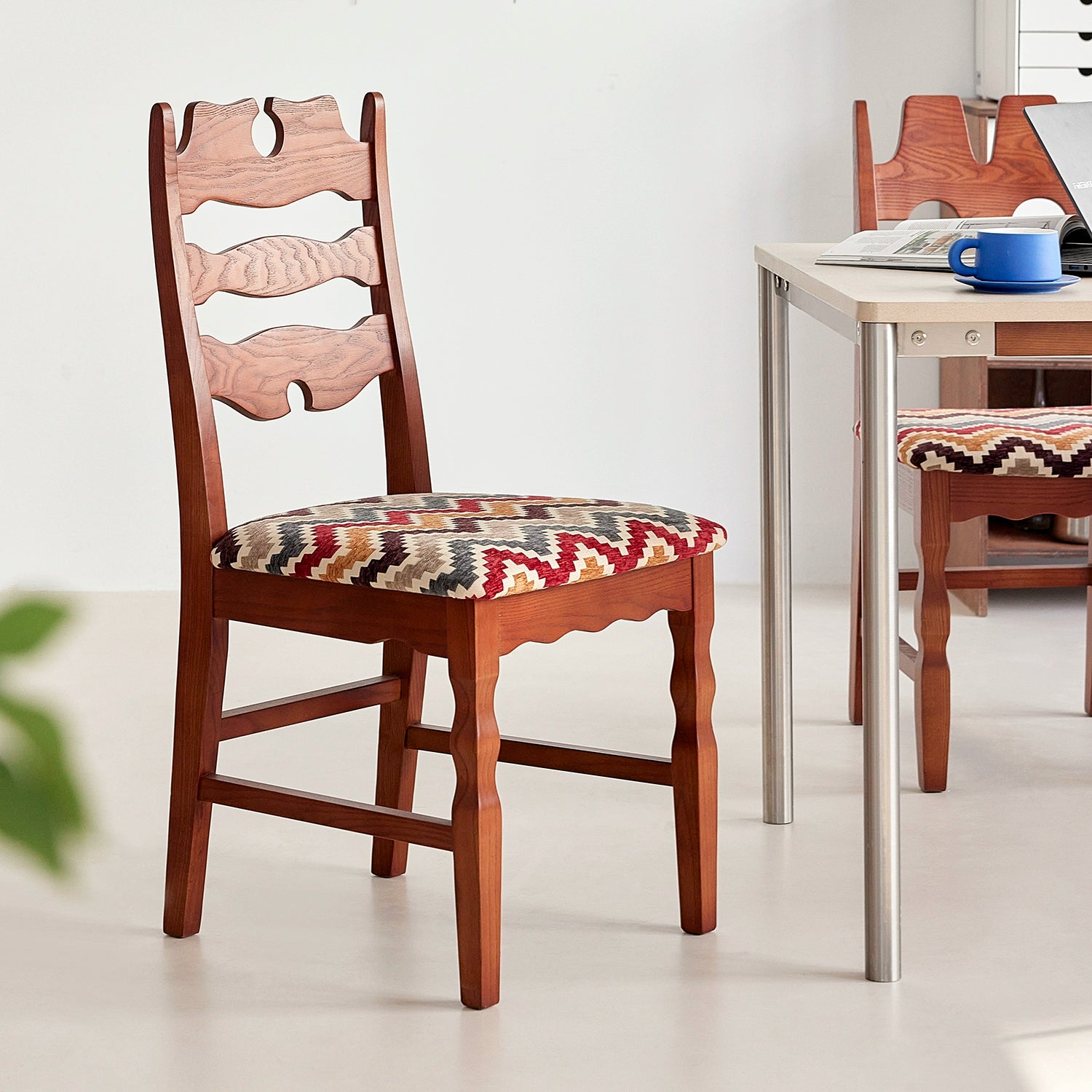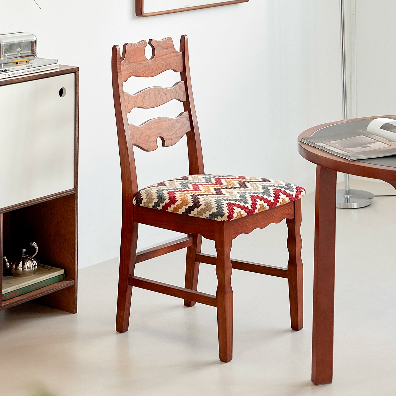 Mittelalterlicher Wabi-Sabi-Wind-Esszimmerstuhl, kreativer Designerstuhl, Haushalts-Massivholz-Rückenlehne, Meisterstuhl, künstlerischer Sinn