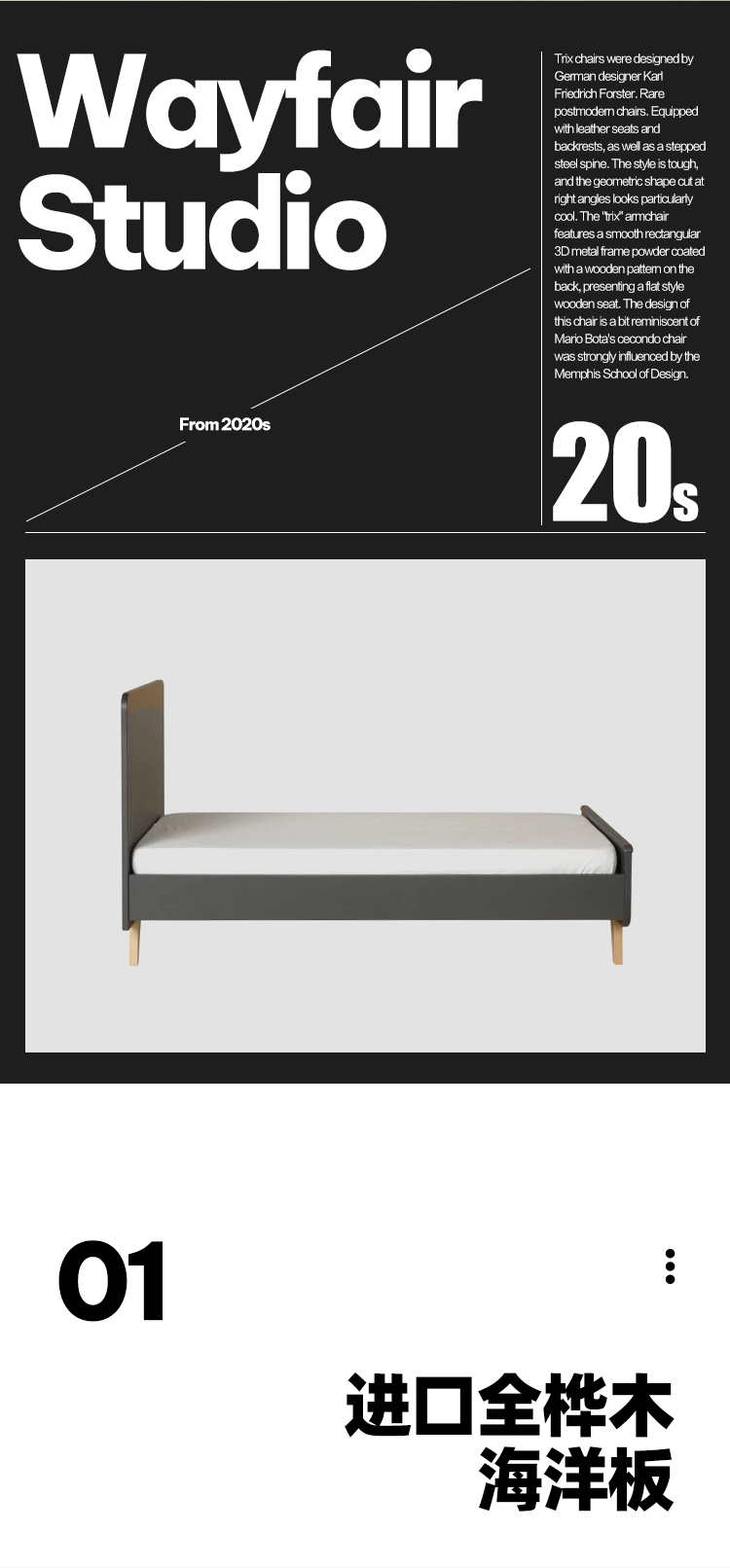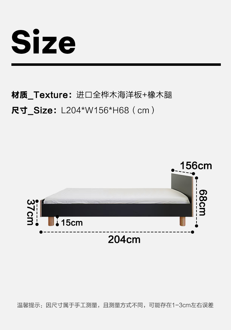 Ocean Board Bettbrett, Massivholz, Designer 1,5 m Einzelbettrahmen, Japanisches minimalistisches 1,8 m Doppelbettkopfteil