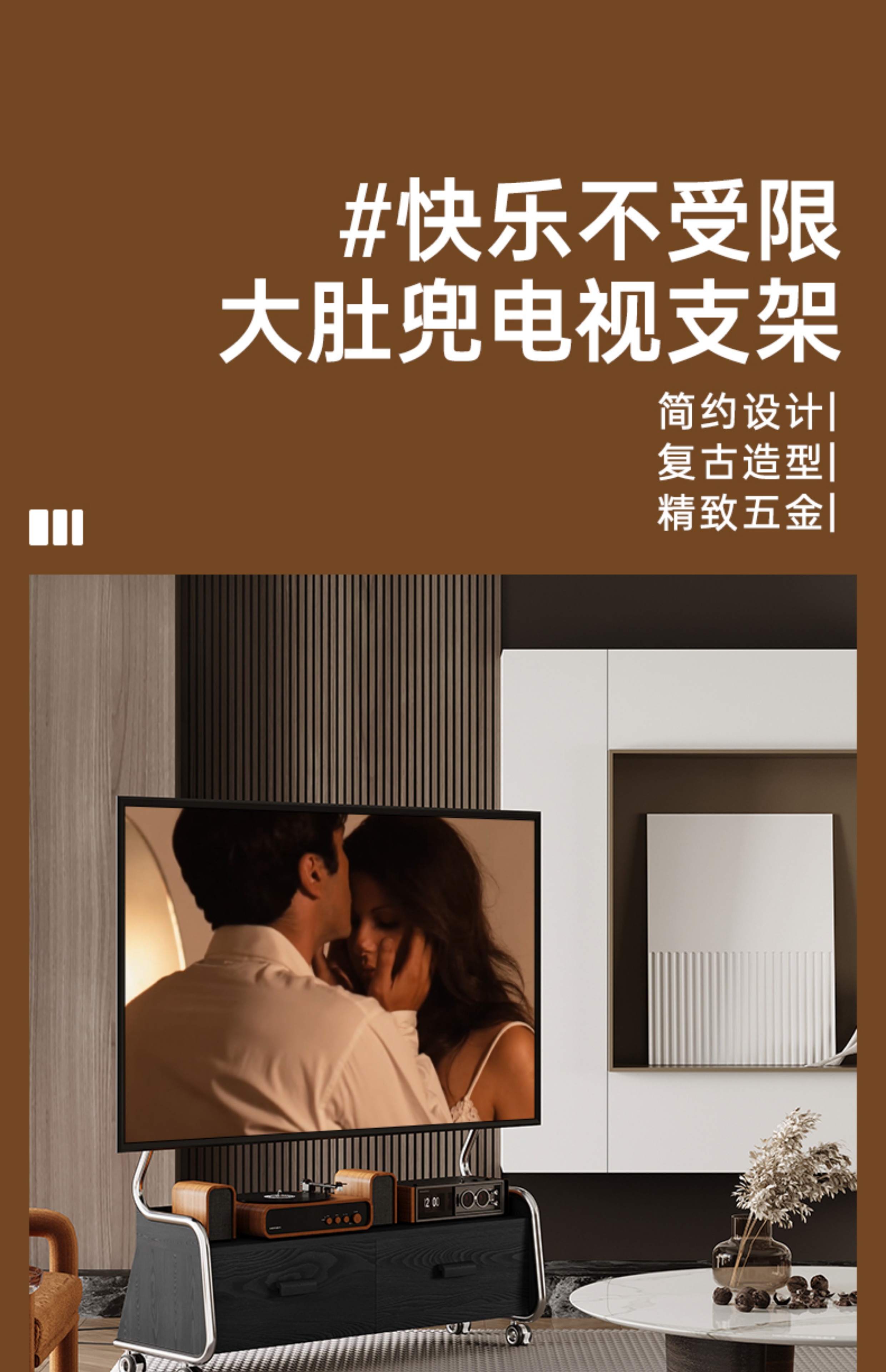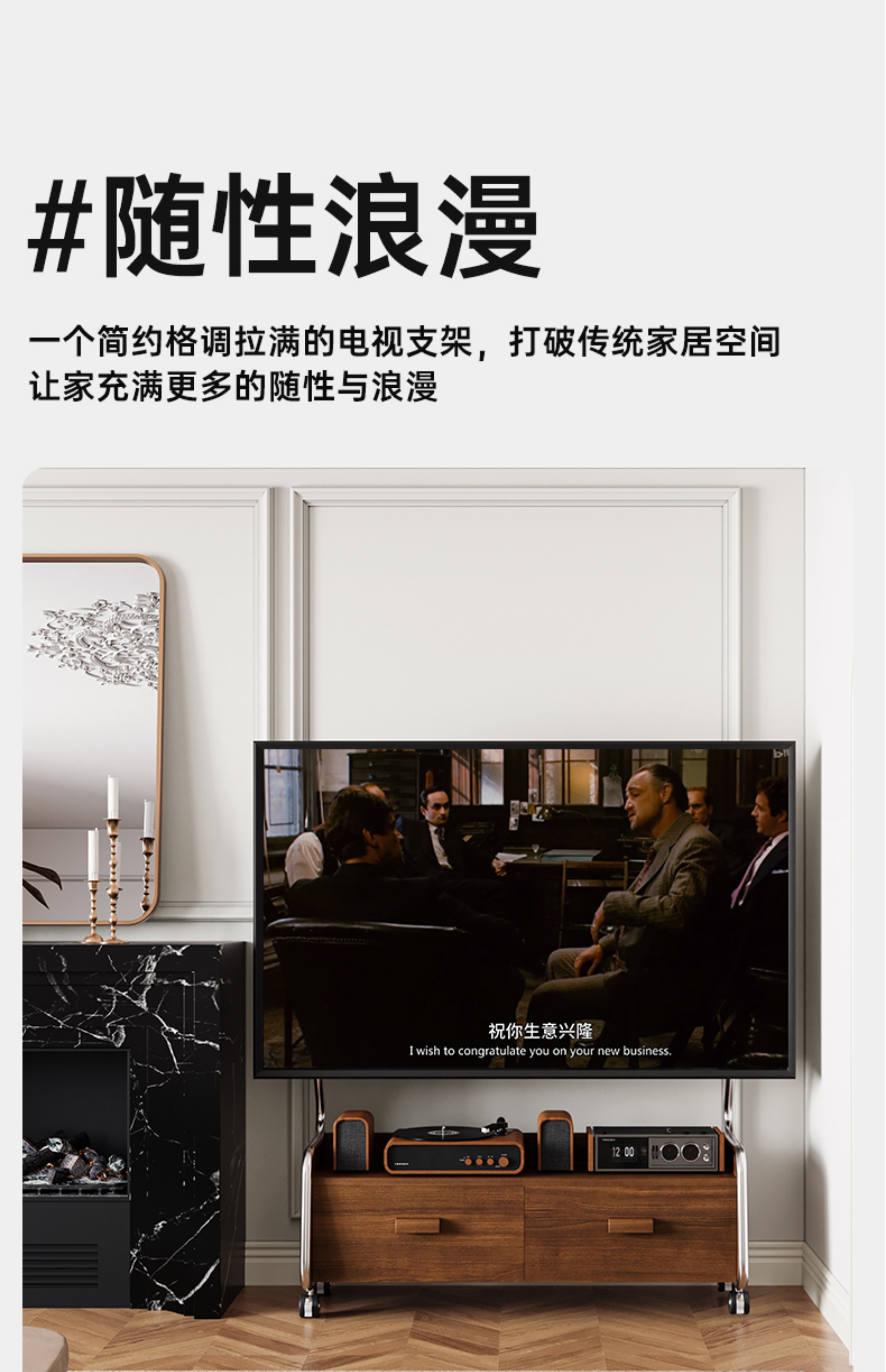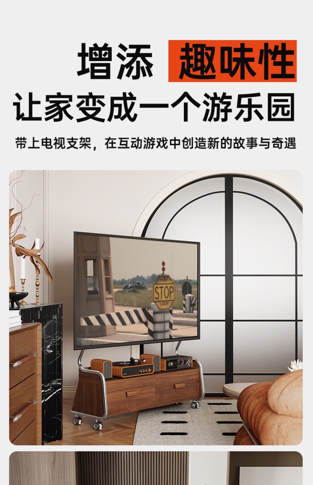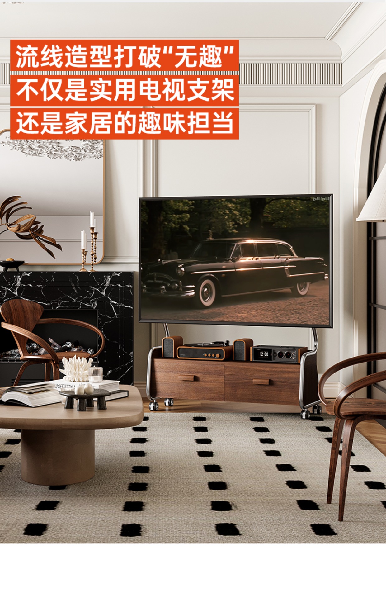 Abnehmbarer TV-Ständer, vom Boden bis zur Decke, nordischer mittelalterlicher Monitor-Universalaufhänger mit Radschloss