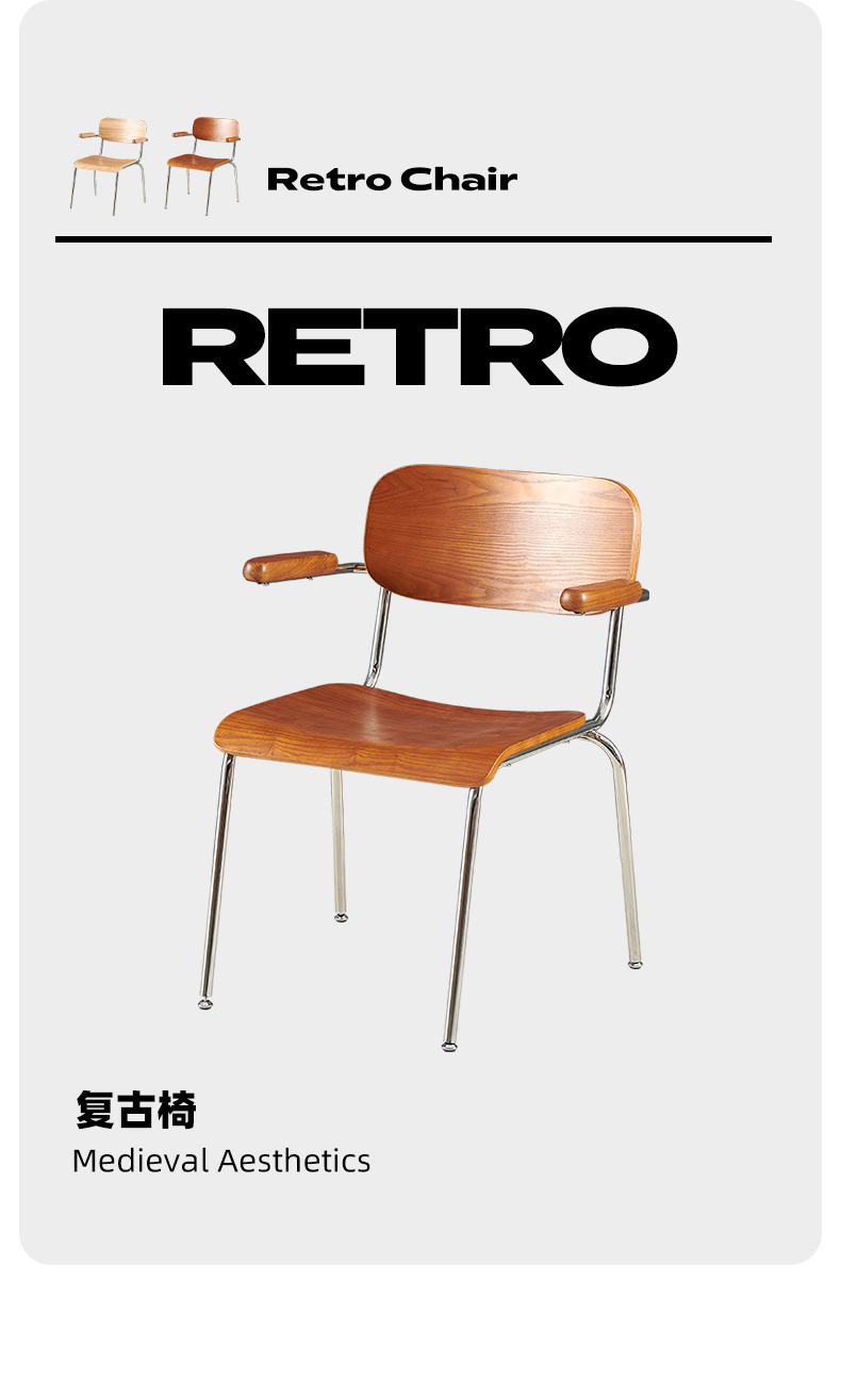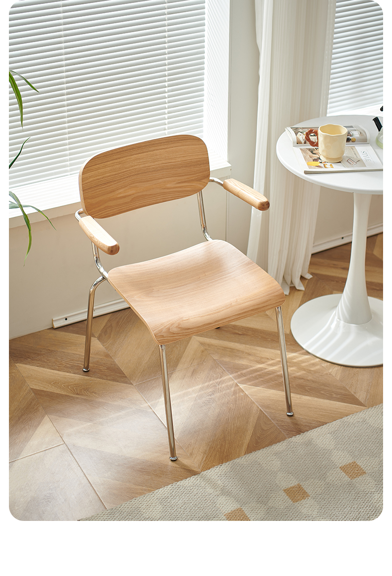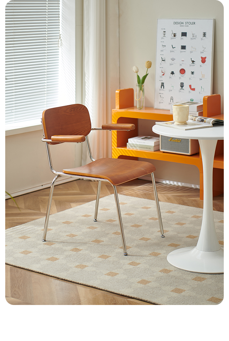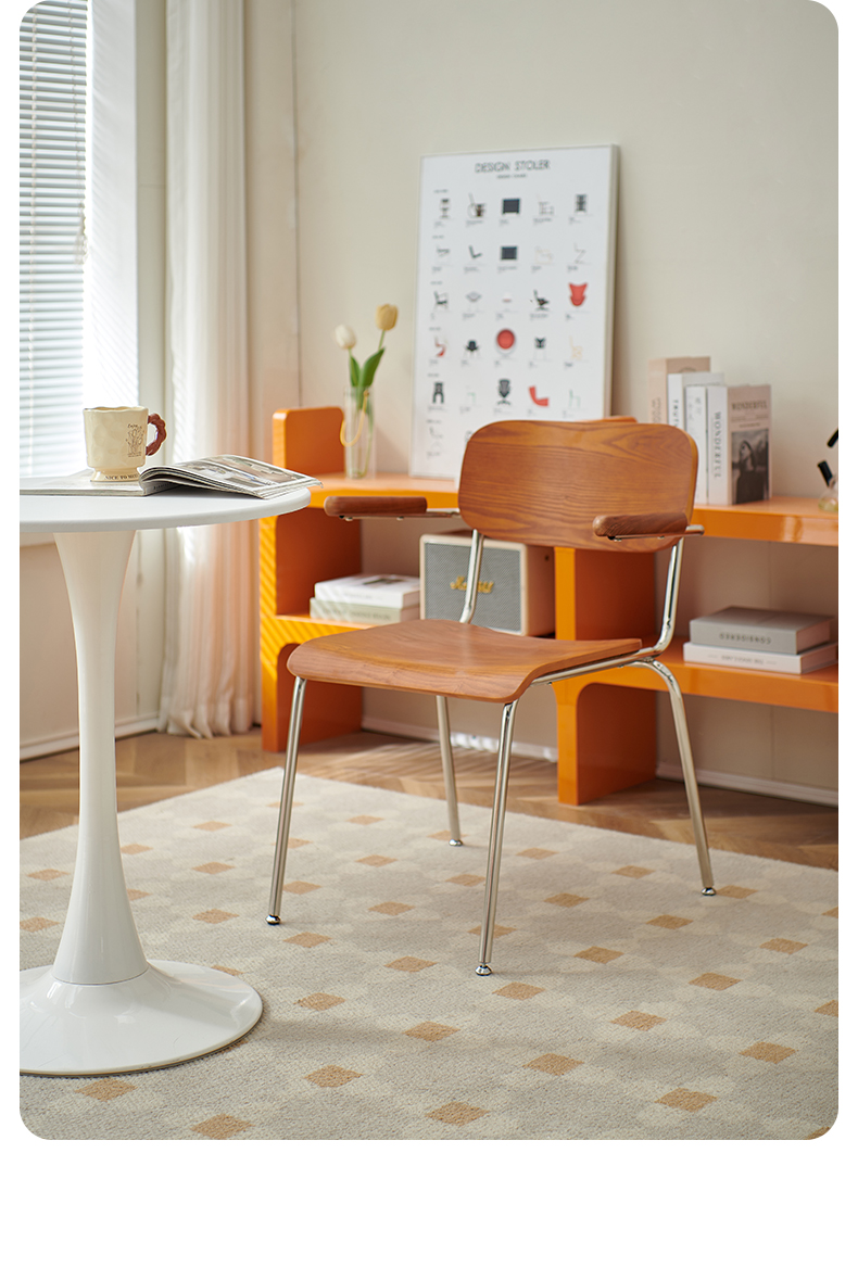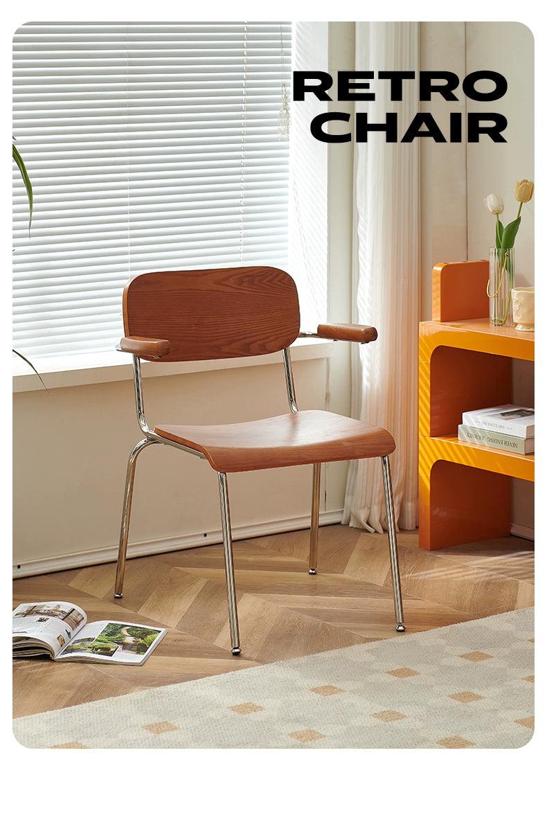 Retro Esszimmerstuhl mit Armlehne, Stuhl aus massivem Holz, Rückenlehne, moderner, einfacher, lässiger Schreibtischstuhl, Café