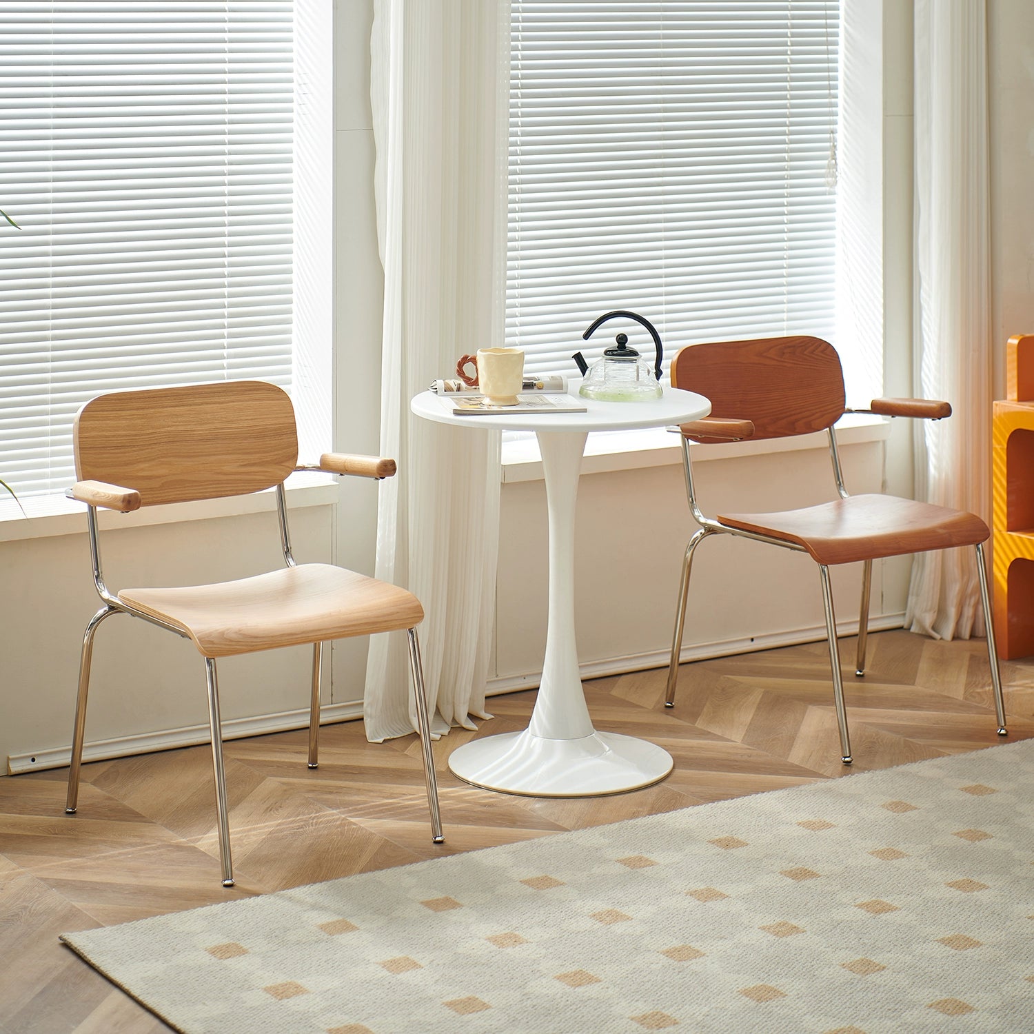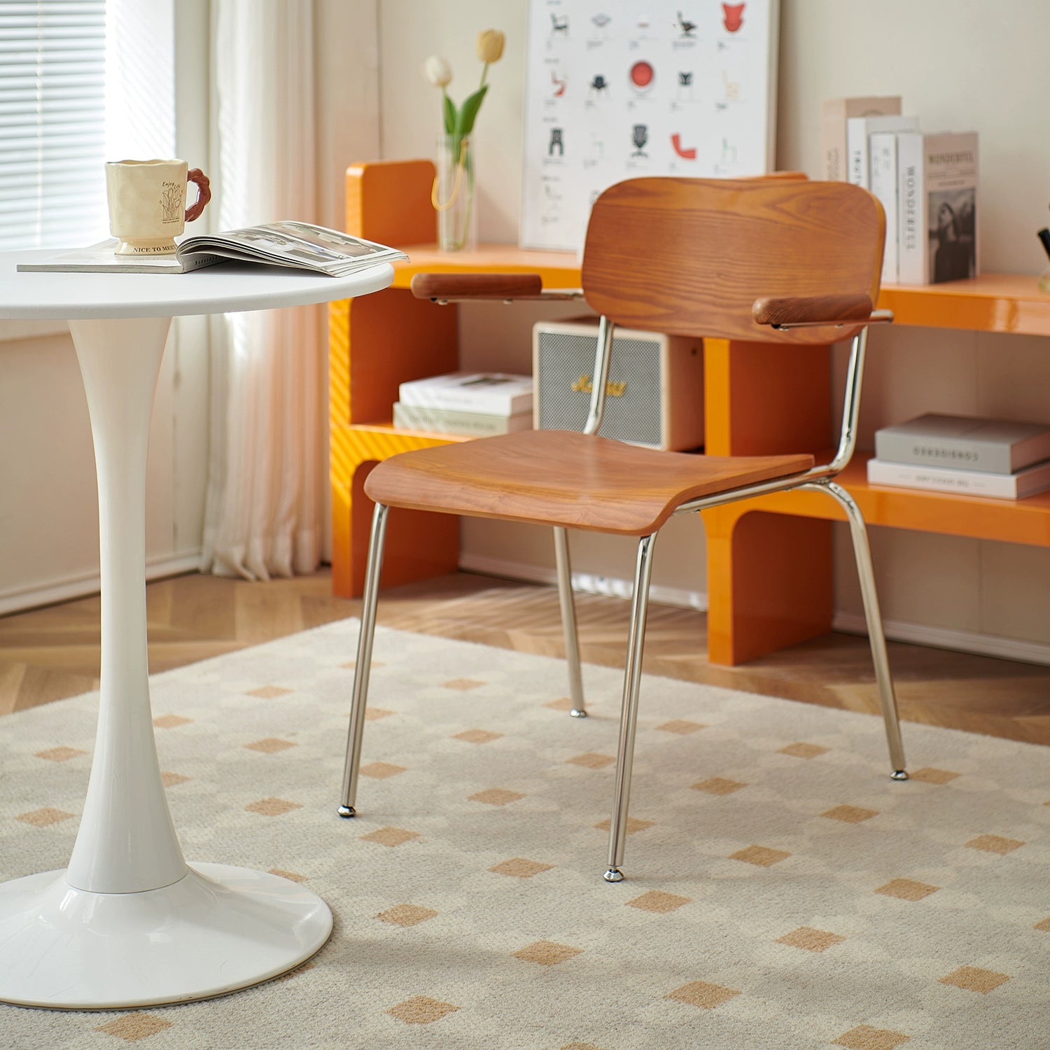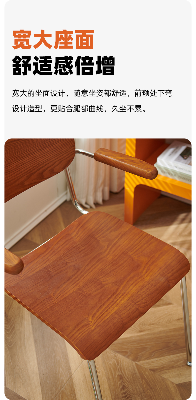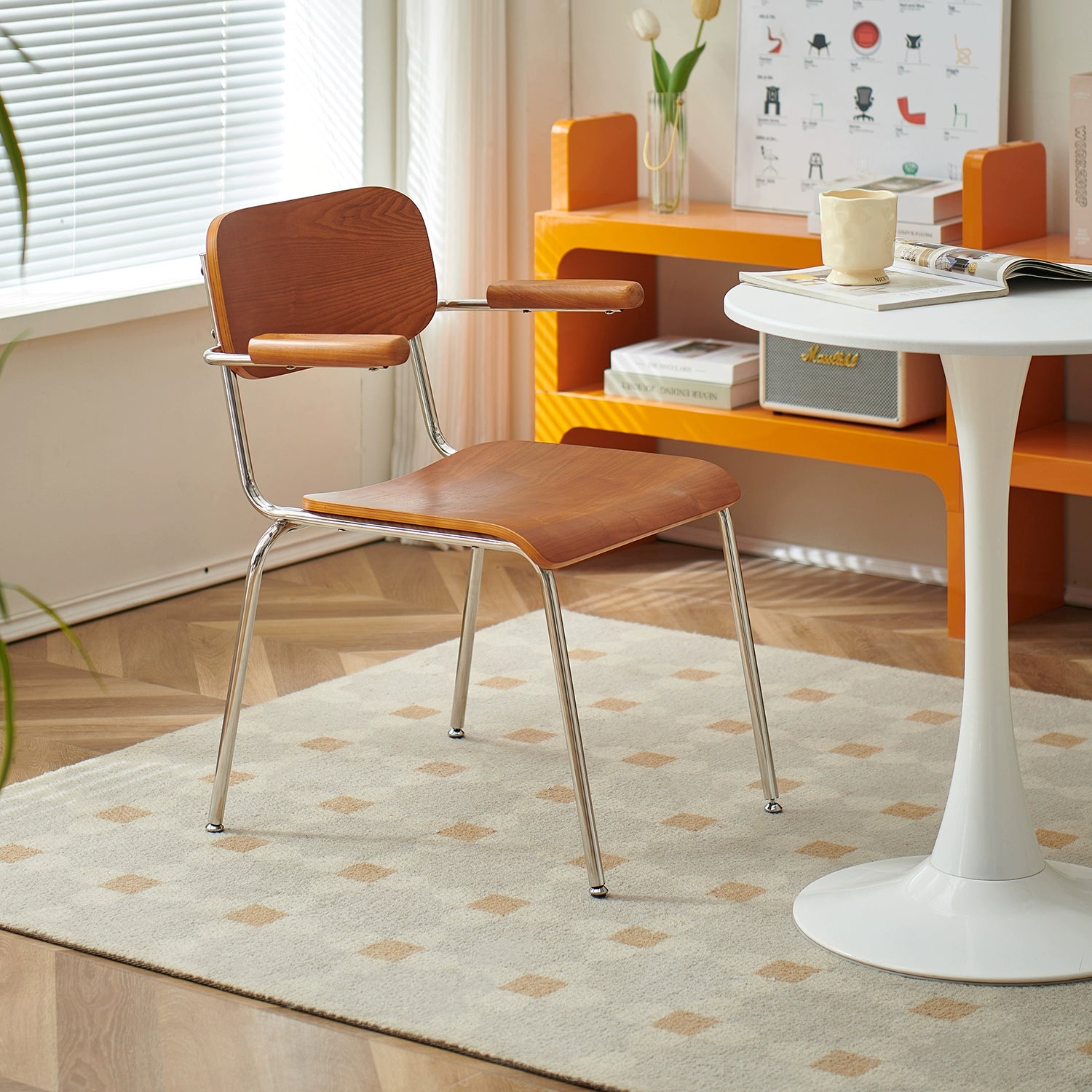 Retro Esszimmerstuhl mit Armlehne, Stuhl aus massivem Holz, Rückenlehne, moderner, einfacher, lässiger Schreibtischstuhl, Café