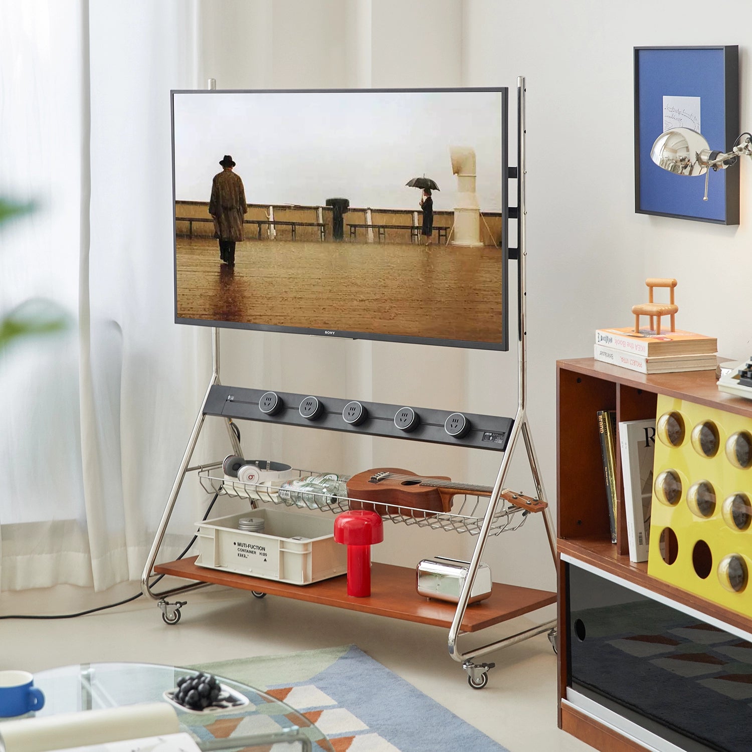 Retro-Designer-TV-Ständer, abnehmbarer nordischer Boden-TV-Ständer, kleine Wohnung mit Strom