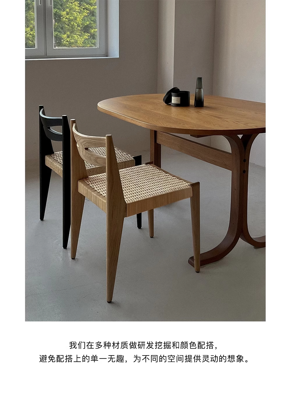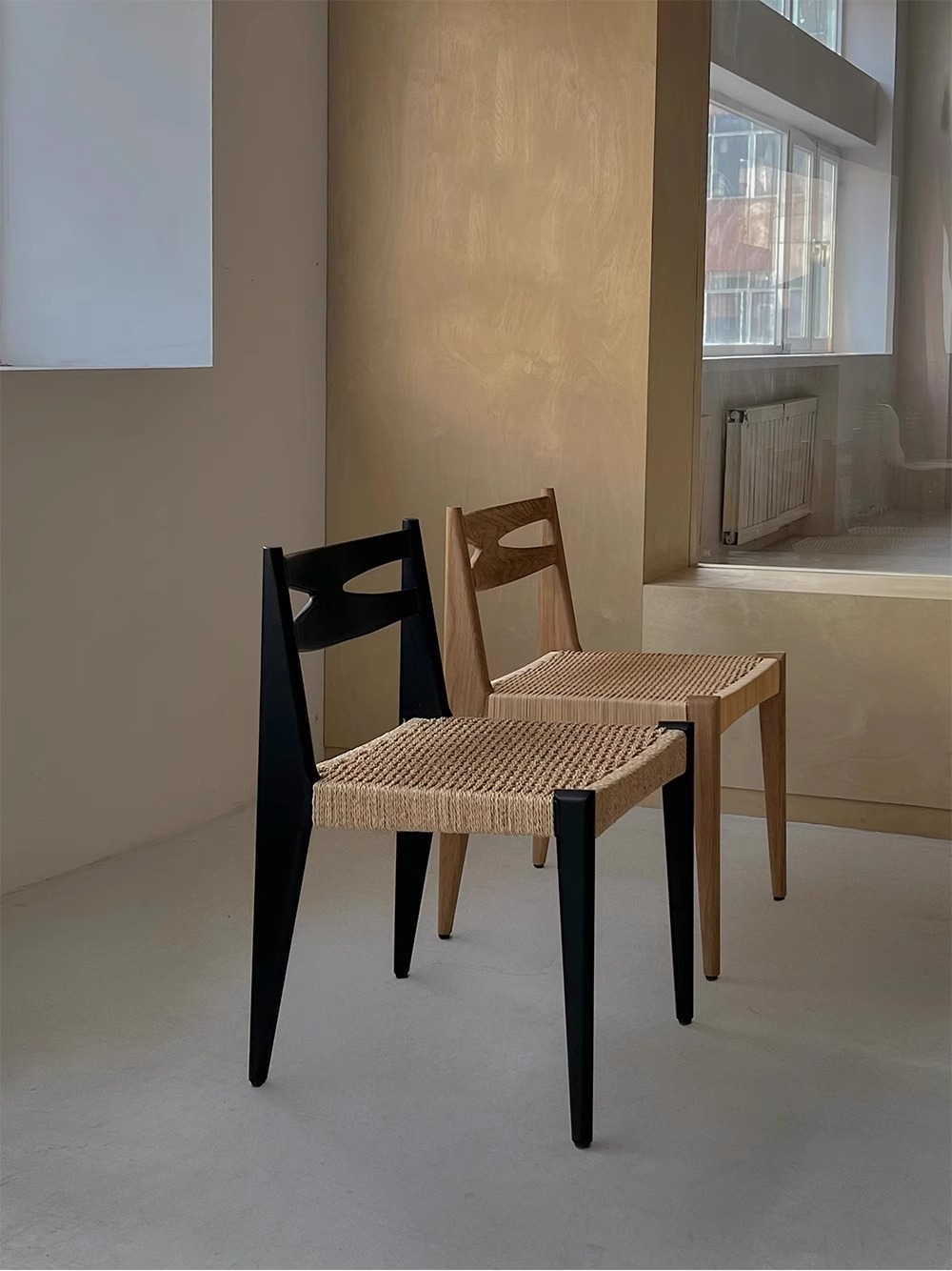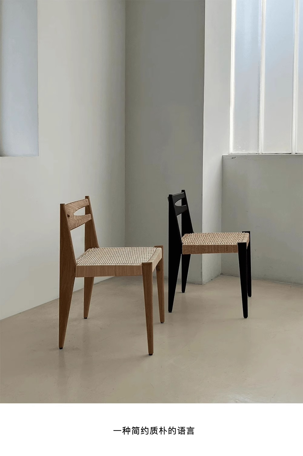 Massivholz Rattan Esszimmerstuhl Mittelalterlicher Wabi-Sabi Stuhl Designer Mittelalterliche Rückenlehne Freizeitstuhl High Sense